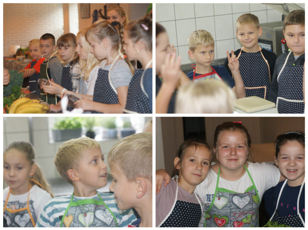 Klasy 4c i 4a na początku października wybrały się na warsztaty kulinarne do restauracji „Patio Con Gusto” w Pszczynie. Szef kuchni oprowadził uczniów po całej restauracji, również po zapleczu kuchennym, następnie uczniowie zostali podzieleni na dwie grupy, otrzymali fartuszki, deski do krojenia i nożyki. Jedna grupa zaczęła od przygotowywania muffinek, a druga grupa wyrabiała chleb. Następnie zamieniliśmy się rolami, jedna grupa wykonywała sałatki owocowe i warzywne, a druga grupa przekładała ciasto chlebowe do foremek. Uczniowie podczas warsztatów mogli zobaczyć jak wygląda organizacja pracy w dużej restauracji, oraz spróbowali swoich sił w krojeniu, dekorowaniu, ozdabianiu, wyrabianiu ciasta.