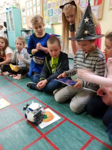 W tym roku oprócz świetnej zabawy,pyszności w bufecie uczniowie klas młodszych brali udział w zajęciach z projektu realizowanego w naszej szkole pt:”Zaprogramuj przyszłość”. Czekały na nich ciekawe zadania do zrealizowania. Każda klasa miała do pokonania 5 sal, w których czekały na nich rożne aktywności. Uczniowie uczyli się m.in.kodować na macie, programowali robota, kodowali na dywanie, grali w Cody Roby. Więcej nauczą się podczas zajęć, które są aktualnie realizowane.