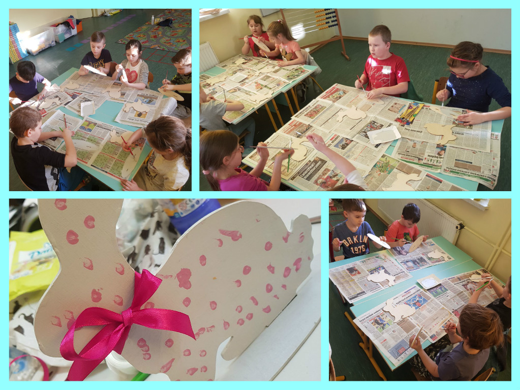 21 marca odbyły się popołudniowe Warsztaty Wielkanocne, którego uczestnikami byli uczniowie klas pierwszych i drugiej.  W trakcie spotkania dzieci miały okazję poznać tradycję związane ze Świętami Wielkanocnymi. Zajęcia rozpoczęły się od pieczenia wielkanocnej babki. Kiedy ciasto rosło w piekarniku zaczęliśmy część plastyczną. Każdy uczestnik otrzymał wykonanego zajączka ze sklejki. Zadanie polegało na pomalowaniu go farbą akrylową i przyozdobienie.  Ostatnim etapem  było wykonanie pracy plastycznej – jajka wielkanocnego. Zajęcia upłynęły w bardzo miłej atmosferze.