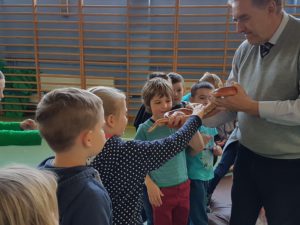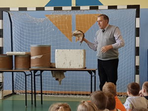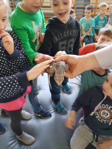 18 kwietnia uczniowie klas I-III wzięli udział w żywej lekcji przyrody. W trakcie trwania pokazu mieliśmy okazję zobaczyć nie tylko rodzime gatunki gadów, ale także okazy z różnych zakątków świata. Dzieci dowiedziały się czym jest gatunek inwazyjny i jak odpowiedzialnie zajmować się zwierzętami o specyficznych potrzebach. Z bliska mieliśmy okazję zobaczyć zarówno żółwie lądowe (żółw leśny) jak i żółwie wodne (żółw czerwonolicy) a także niebezpiecznego żółwia jaszczurowatego. Przyjrzeliśmy się też jaszczurkom. Uczniowie chętnie głaskali gekona orzęsionego i niewielkiego warana pustynnego. Na końcu poznaliśmy węże. Okazało się, ze skóra węży wbrew pozorom wcale nie jest śliska, a sucha i bardzo miłą w dotyku. Największa atrakcję wzbudził ogromny pyton, który wśród naszych uczniów wzbudził prawdziwy zachwyt. Organizatorem spotkania była p. mgr Bernadeta Ryś.