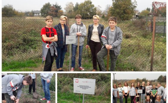 Z okazji 100 – lecia odzyskania przez Polskę niepodległości nasi uczniowie zasadzili drzewko na terenie szkolnym.