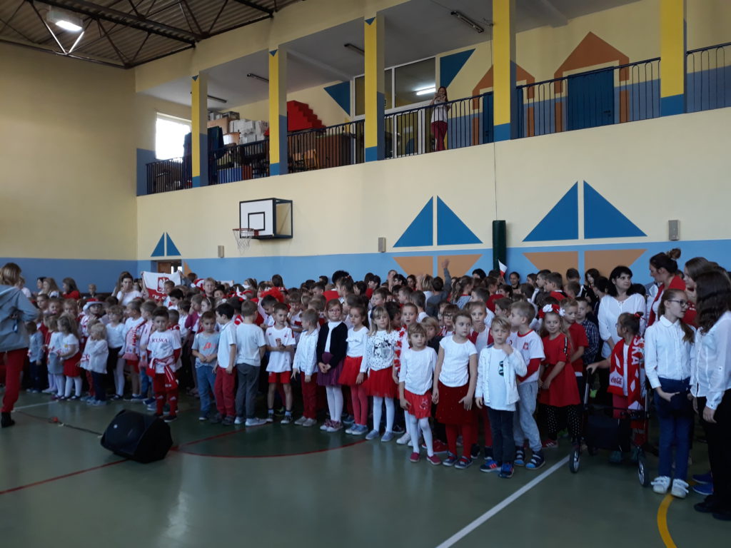 Nasza szkoła włączyła się w akcję „Rekord dla Niepodległej” i z okazji święta 11 Listopada, oraz 100 – lecia odzyskania przez Polskę niepodległości wspólnie odśpiewaliśmy nasz hymn. Wszyscy uczniowie oraz nauczyciele ubrani w barwy biało – czerwone zebrali się w sali gimnastycznej w piątek 9 listopada i wspólnie odśpiewaliśmy cztery zwrotki „Mazurka Dąbrowskiego”.