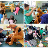 W grupach przeprowadzone zostały ćwiczenia: RKO na manekinach, pozycja bezpieczna oraz bandażowanie misia, Scoobiego i kolegi lub koleżanki.