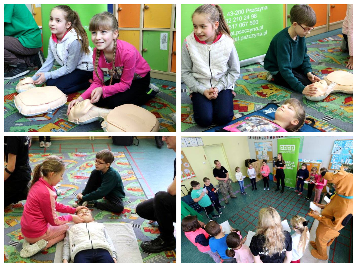 Początkiem lutego w klasie 2a odbyły się zajęcia z pierwszej pomocy, prowadzone przez uczniów klasy mundurowej PZS nr 2 w Pszczynie, w ramach zajęć z POPP w Pszczynie. Starali się przekazać najważniejsze informacje dotyczące ratowania ludzkiego życia. Utrwalone zostały numery alarmowe a szczególnie numer 112 o którym dzieci i młodzież śpiewali piosenkę.