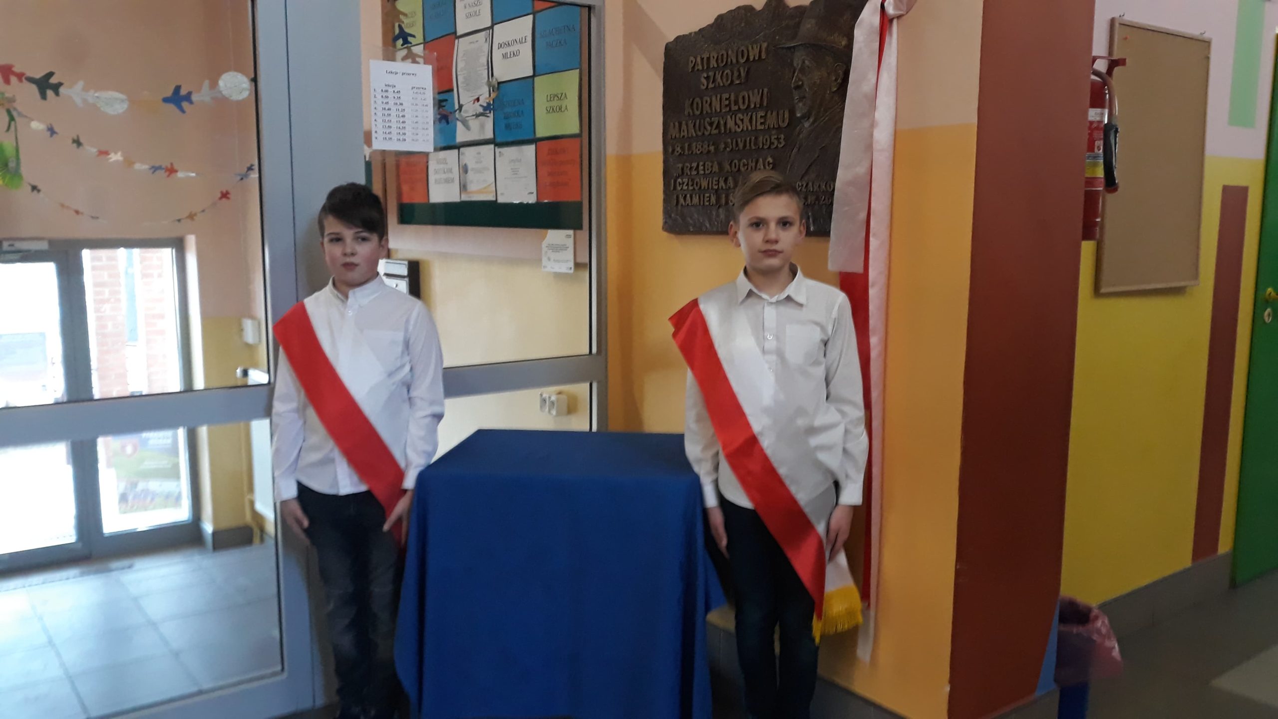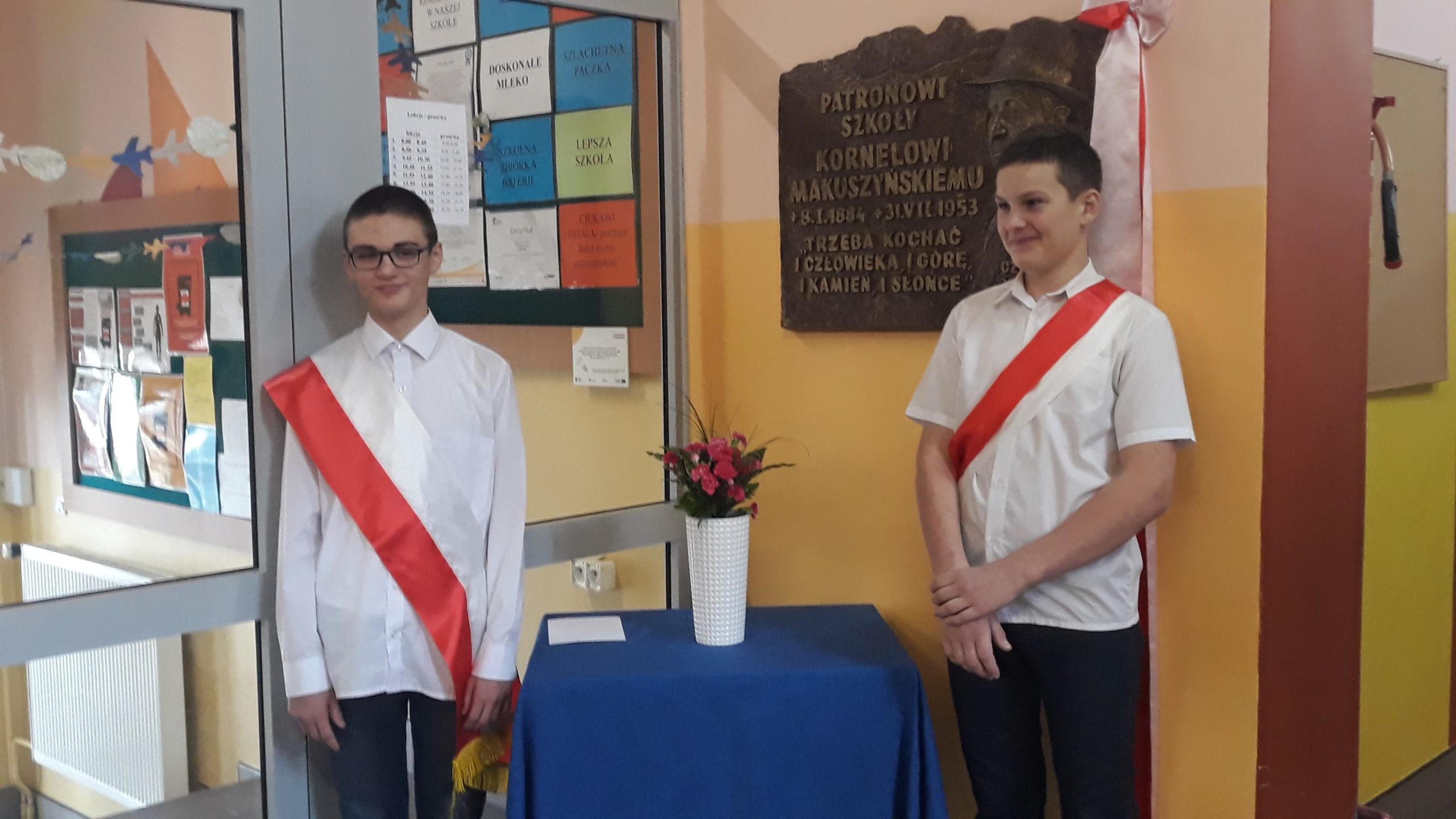 Aby uczcić jego pamięć uczniowie klasy 6a pełnili warty honorowe przy popiersiu naszego patrona, które znajduje się przy wejściu do szkoły.