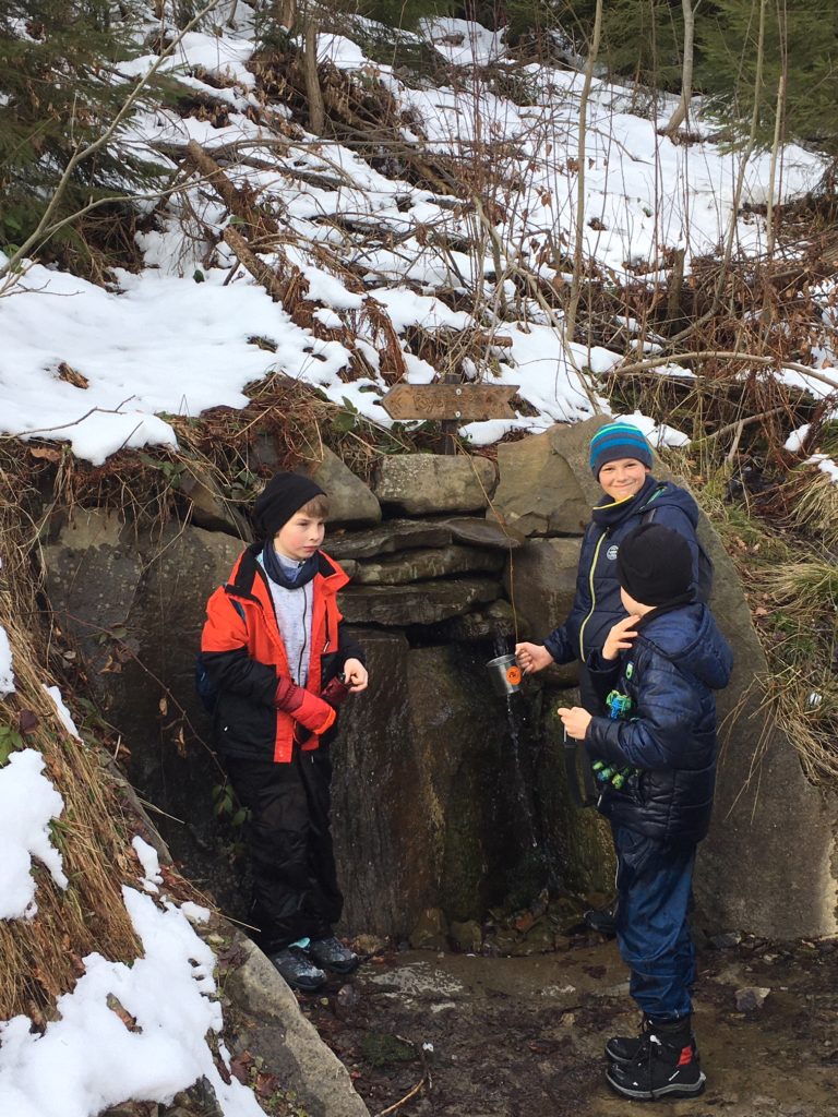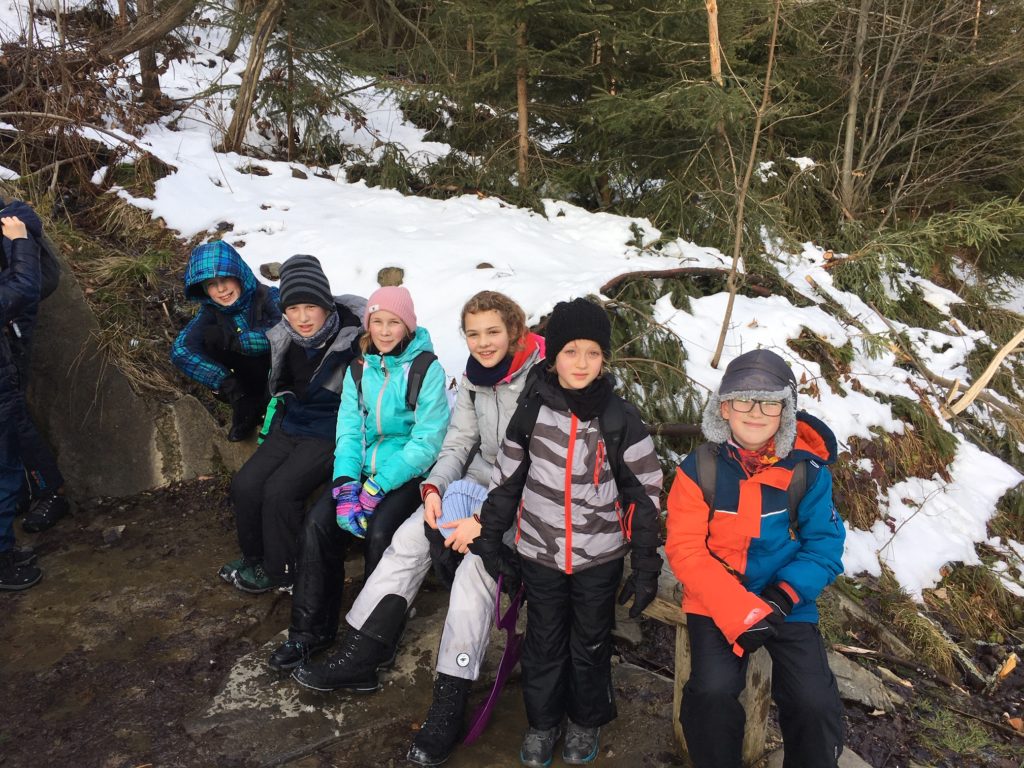 Niespodzianek tym razem było sporo. Wiadomo już, że śniegu jest pod dostatkiem- im wyżej, tym go więcej i więcej radości w dzieciach. Schronisko na nas czekało, przygotowując specjalnie na tą okazję pyszną pomidorową i herbatę. Trasa była ośnieżona, rakiety przygotowane. A o czym mowa??