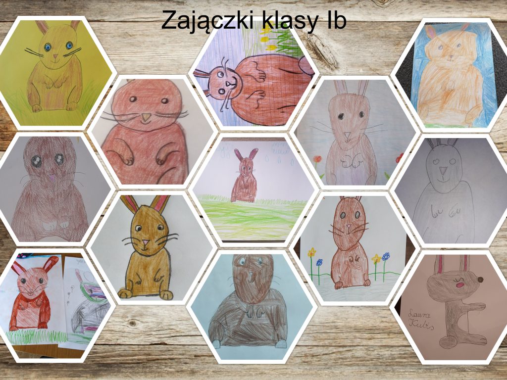 Uczniowie klasy Ib w oczekiwaniu na wizytę zajączka wielkanocnego postanowili go narysować.