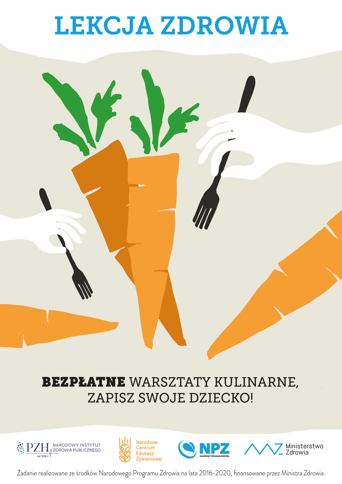 ℹ Warsztaty kulinarne prowadzone są przez Narodowe Centrum Edukacji Żywieniowej w ramach zadania realizowanego ze środków Narodowego Programu Zdrowia na lata 2016-2020, finansowanego przez Ministra Zdrowia
