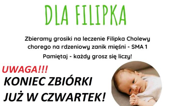 Prosimy o pełną mobilizację ! Kończy się czas zbierania wszystkich monet dla małego Filipka. Jeżeli zalegają jeszcze „gdzieś” drobne pieniążki, […]
