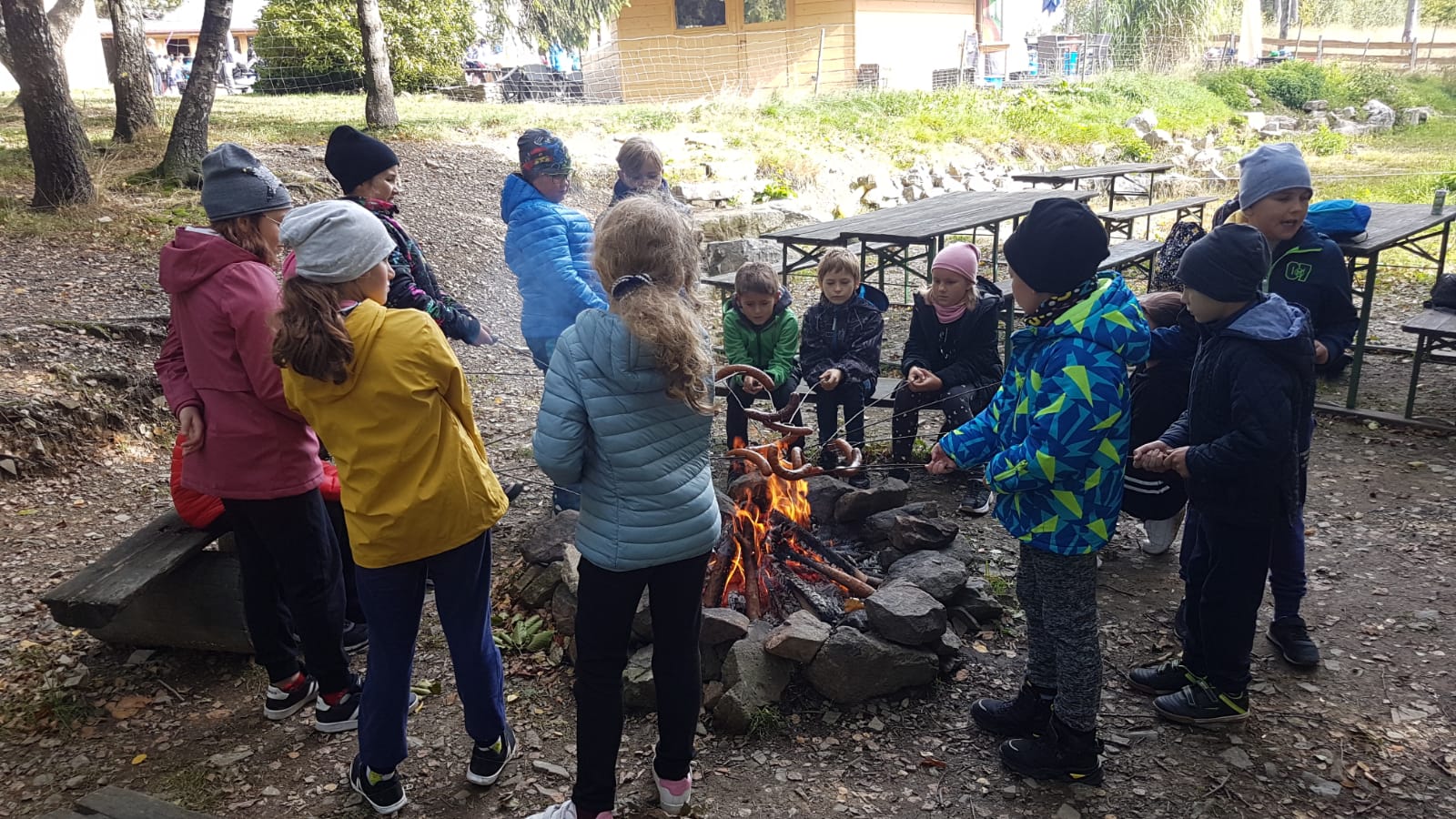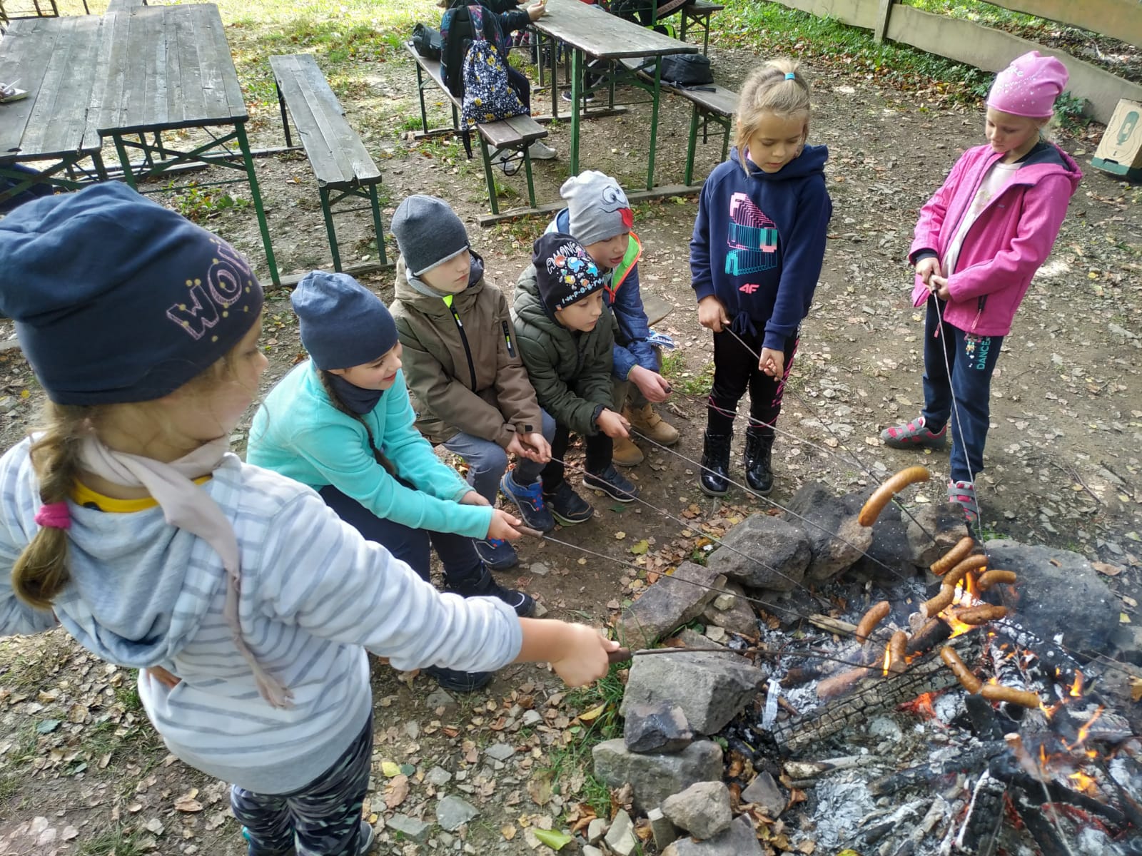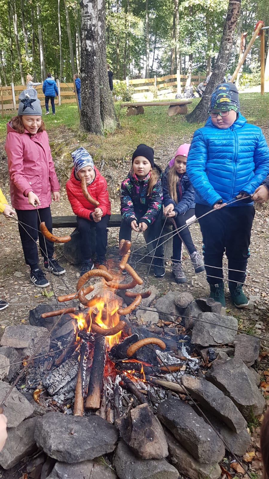 Wędrówkę rozpoczęliśmy u podnóża góry (Błonia). Atrakcją Koziej Góry był naturalny tor saneczkowy – obecnie jest nieczynny. Jego pozostałości oglądaliśmy idąc na szczyt zielonym szlakiem. Podczas wędrówki mieliśmy okazję obserwowania zmieniającej się przyrody oraz w ramach akcji Sprzątanie Świata zaangażowaliśmy się w sprzątanie szlaku. Gdy dotarliśmy do schroniska Stefanka przygotowane było dla nas ognisko. Kiełbaska i herbatka, do tego świetna zabawa na placu zabaw sprawiły, że długo będziemy wspominać tę wyprawę z uśmiechem 🙂