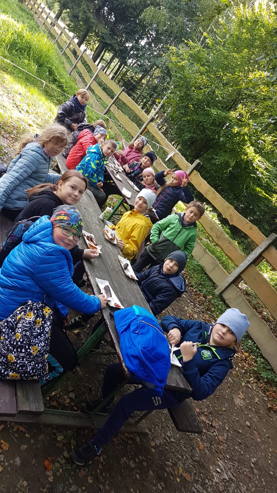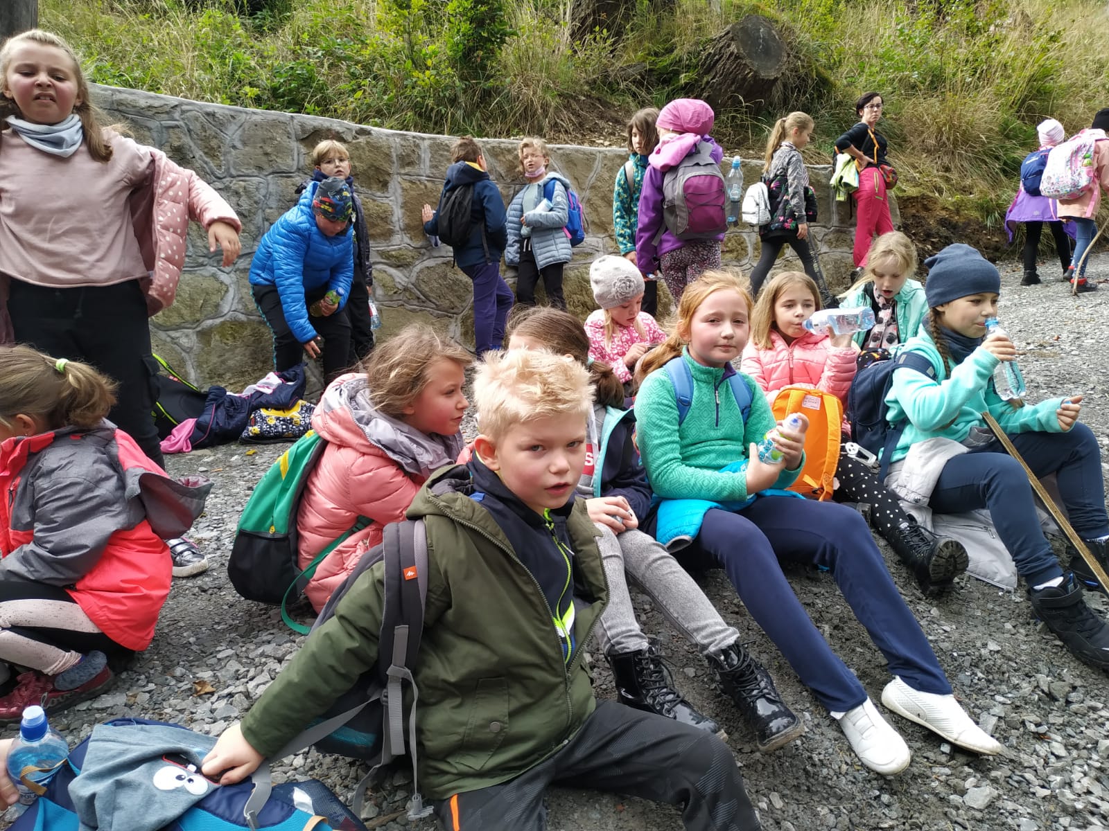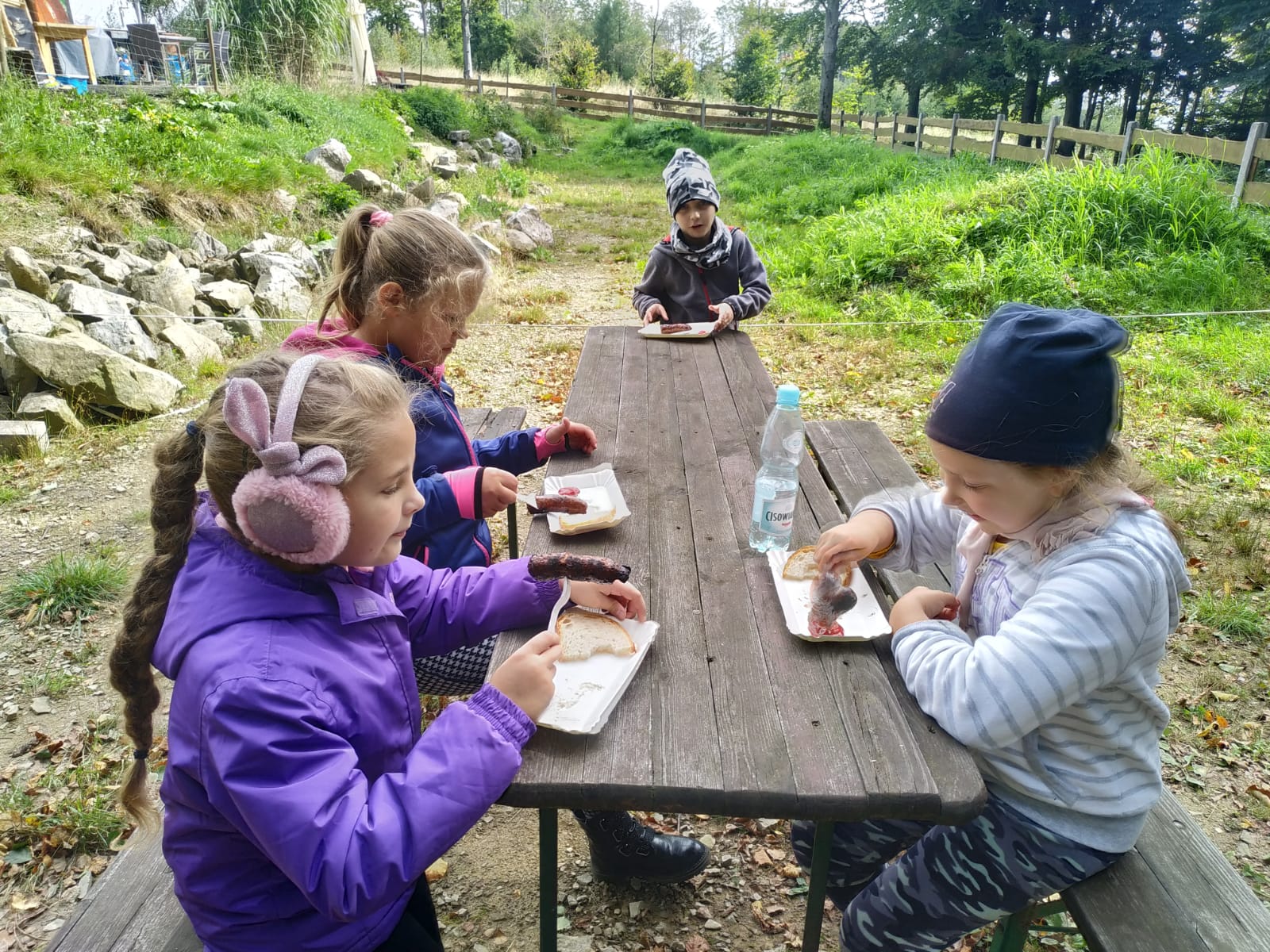 Wędrówkę rozpoczęliśmy u podnóża góry (Błonia). Atrakcją Koziej Góry był naturalny tor saneczkowy – obecnie jest nieczynny. Jego pozostałości oglądaliśmy idąc na szczyt zielonym szlakiem. Podczas wędrówki mieliśmy okazję obserwowania zmieniającej się przyrody oraz w ramach akcji Sprzątanie Świata zaangażowaliśmy się w sprzątanie szlaku. Gdy dotarliśmy do schroniska Stefanka przygotowane było dla nas ognisko. Kiełbaska i herbatka, do tego świetna zabawa na placu zabaw sprawiły, że długo będziemy wspominać tę wyprawę z uśmiechem 🙂
