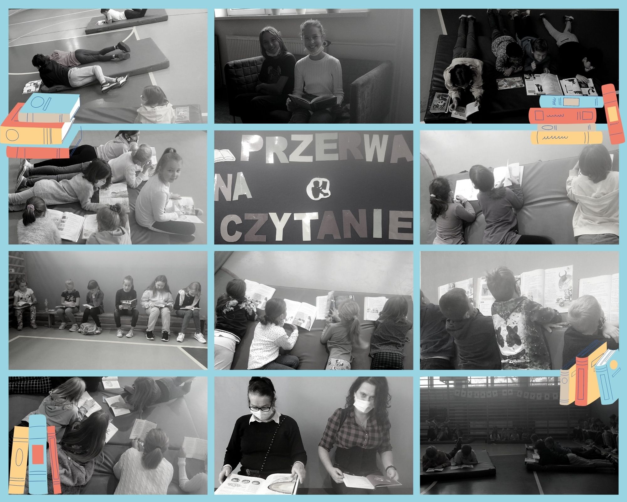 W sali gimnastycznej nauczyciel wychowania fizycznego rozłożył wygodne materace, na których położyli się z książkami uczniowie, którzy przyłączyli się do akcji „Przerwa na czytanie”. Był to pierwszy udział naszej społeczności szkolnej w tak dużym zakresie, ale warto zaznaczyć, że już rok wcześniej udział w tej akcji wzięli wychowankowie klas 1-3. Dwie długie przerwy minęły chyba za szybko, bo gdy przyszedł koniec przerwy w naszej szkole bez dzwonka, uczniowie niechętnie podnosili się z materacy. Ponieważ dwie klasy młodsze kończyły zajęcia przed długimi przerwami, w trakcie których przeprowadziliśmy akcję, wychowawcy spędzili ze swoimi uczniami przerwę w sali lekcyjnej i wszyscy oddali się lekturze przyniesionych z domu książek.