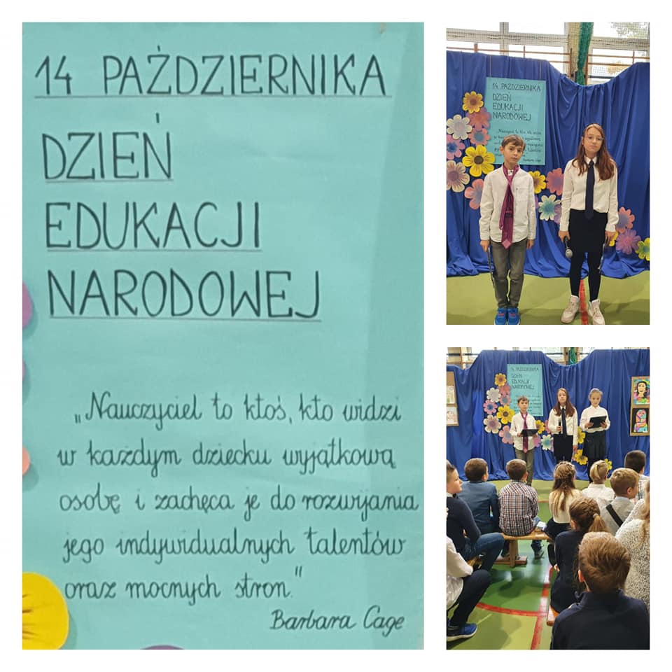 Dzień Edukacji Narodowej to święto uczniów i wszystkich pracowników oświaty. Uczciliśmy je piękną akademią, wzajemnymi życzeniami życzeniami i akcją charytatywną i „Skarbonka zamiast kwiatka”, w której zebrano 2043,50zł.