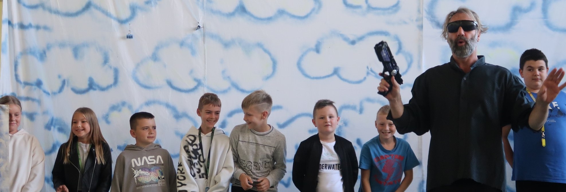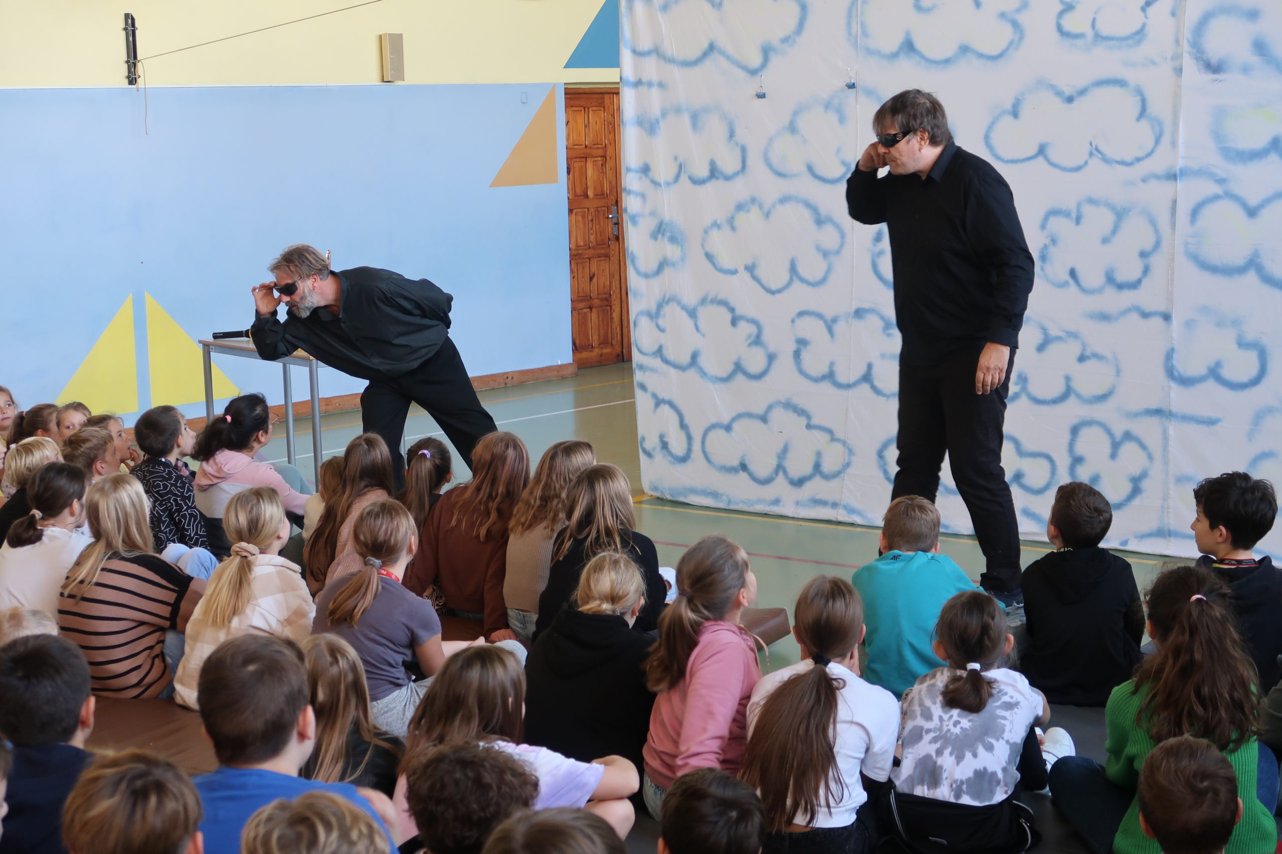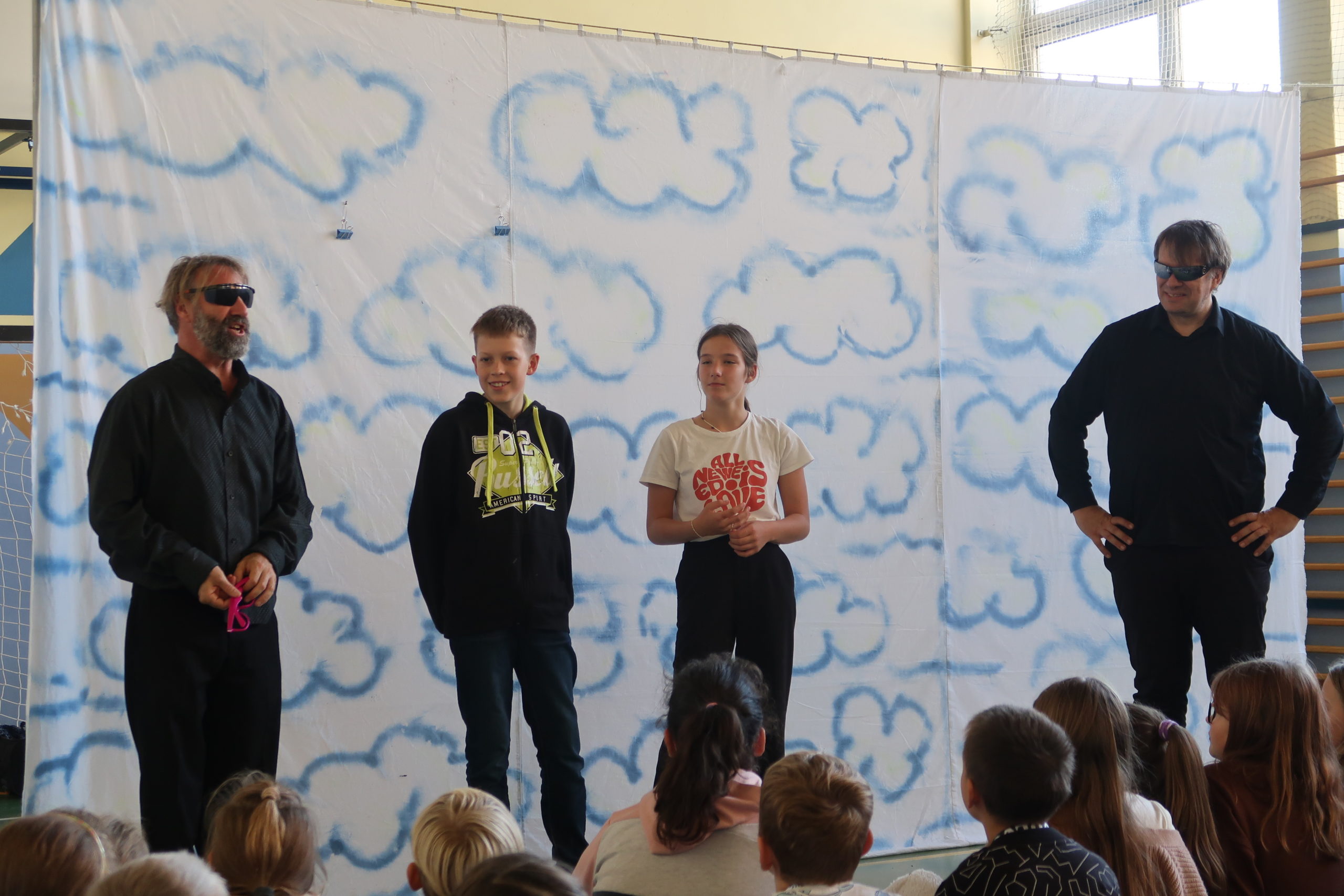 18 października wyszło na jaw, że wśród uczniów naszej szkoły ukrywała się dwójka zagubionych dzieci rodziny kosmitów – Blip i Blop. Za zdemaskowaniem nieletnich kosmitów stali agenci, którzy przez blisko godzinę poszukiwali przybysza z obcej planety w celu zlikwidowania go.Ku zaskoczeniu zgromadzonych na sali gimnastycznej osób, jeden z agentów okazał się ich ojcem, a poszukiwany „obcy” matką. Historia ma dobre zakończenie – sympatyczna rodzina „nie z tej ziemi” bezpiecznie odleciała do siebie, a agent wrócił do bazy bez więźniów.Wydarzenia na sali gimnastycznej wiążą się z występem grupy teatralnej „The Bear Educational Theatre”. Jej dyrektor – David Fisher – wraz z dwójką aktorów odwiedził naszą szkołę z przedstawieniem, które pozwoliło utrwalić budowę pytań w języku angielskim. Niezależnie od wartości edukacyjnej, „the Alien Grammar Show” dostarczyło nam sporo rozrywki. Aktorzy zaprosili do gry kilkoro uczniów naszej szkoły oraz często angażowali widownię do wypowiadania się w języku angielskim. Widownia dobrze się bawiła, o czym świadczą między innymi kolejki po autograf na koniec spotkania.