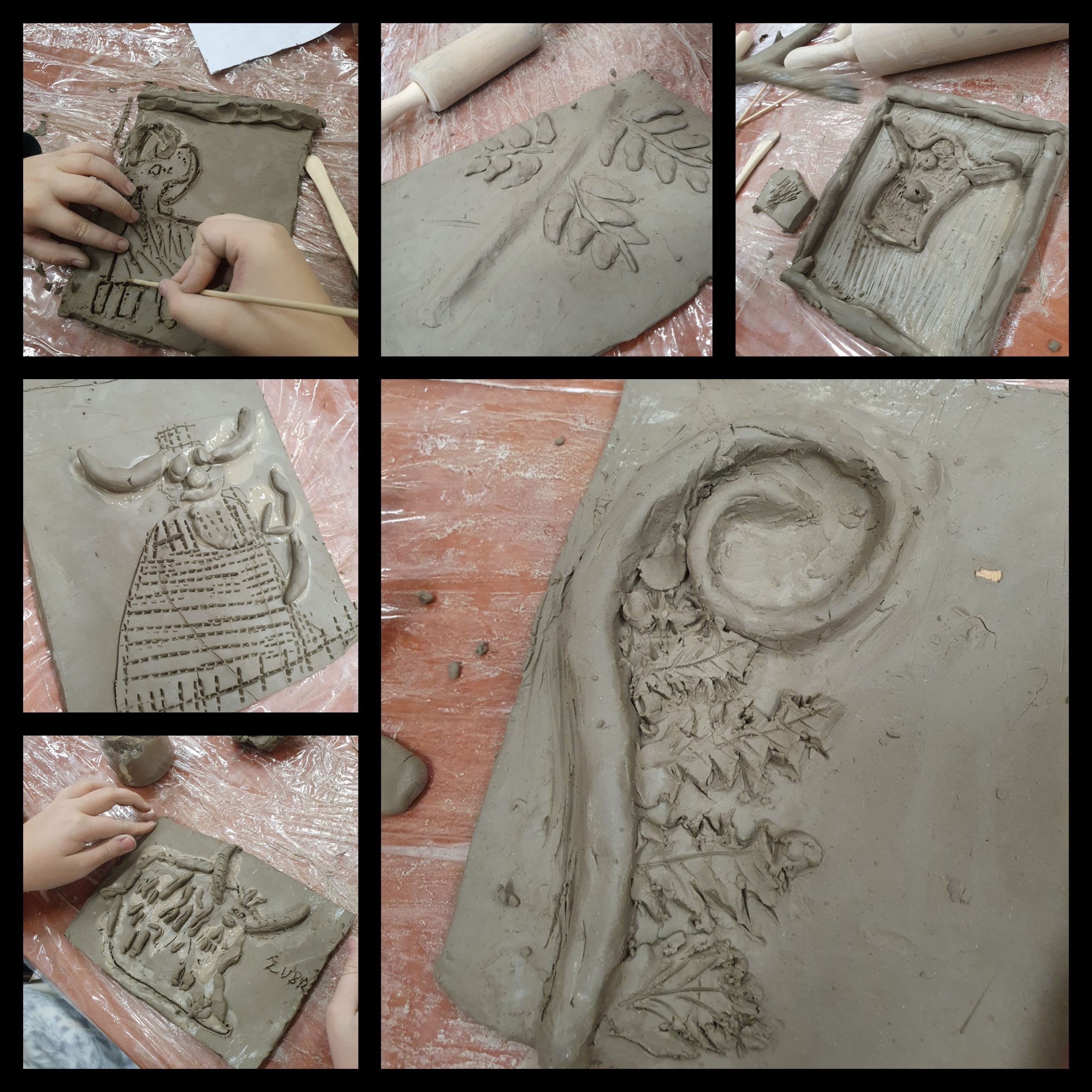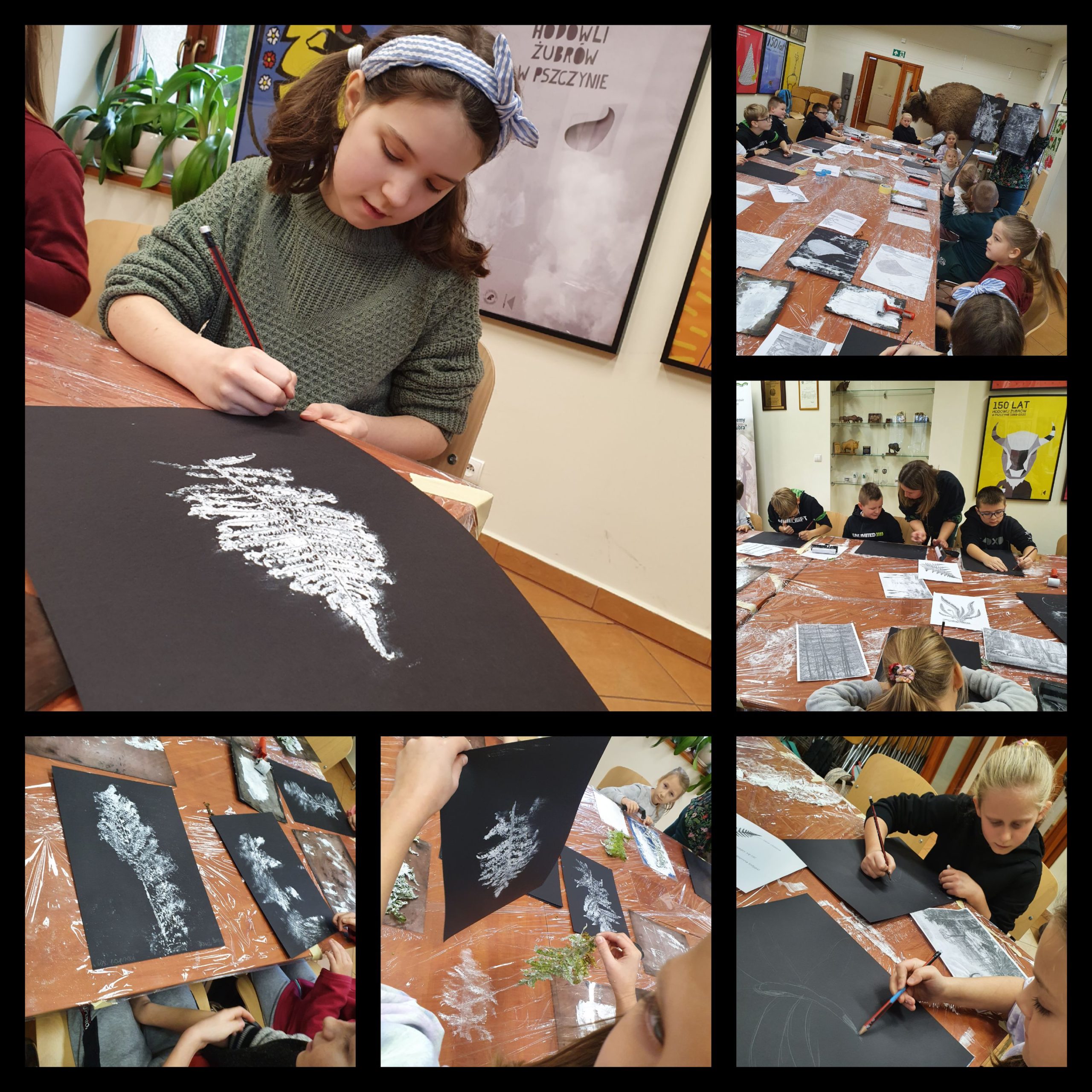 Pod okiem p. A. Haki- Otręby trzecioklasiści mieli przyjemność uczestniczyć w warsztatach plastycznych, tworząc niezwykłe grafiki z motywem roślinnym oraz warsztatach ceramicznych, na których wykonali kafelki z motywem prażubra i prarośliny .
