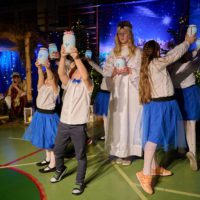 Boże Narodzenie to czas, kiedy wszyscy stają się dla siebie bardziej życzliwi, milsi i zapominają o wszelkich sporach i waśniach. Aby podkreślić wyjątkowy charakter tych świąt, uczniowie naszej szkoły wystawili Jasełka Misyjne.O dobrą zabawę i miłe doznania słuchowe zadbali zdolni aktorzy i wokaliści. Publiczność po raz kolejny mogła przeżyć historię Marii i Józefa. Jednak to do nich i małego Jezuska przybyli goście z wszystkich zakątków świata i złożyli dzieciątku pokłon. Całość przedstawienia przeplatana była tańcami, kolędami i pastorałkami.Jasełka w wykonaniu dzieci wprowadziły wszystkich w świąteczny nastrój, a uczniowie swym pięknym występem podbili serca publiczności.