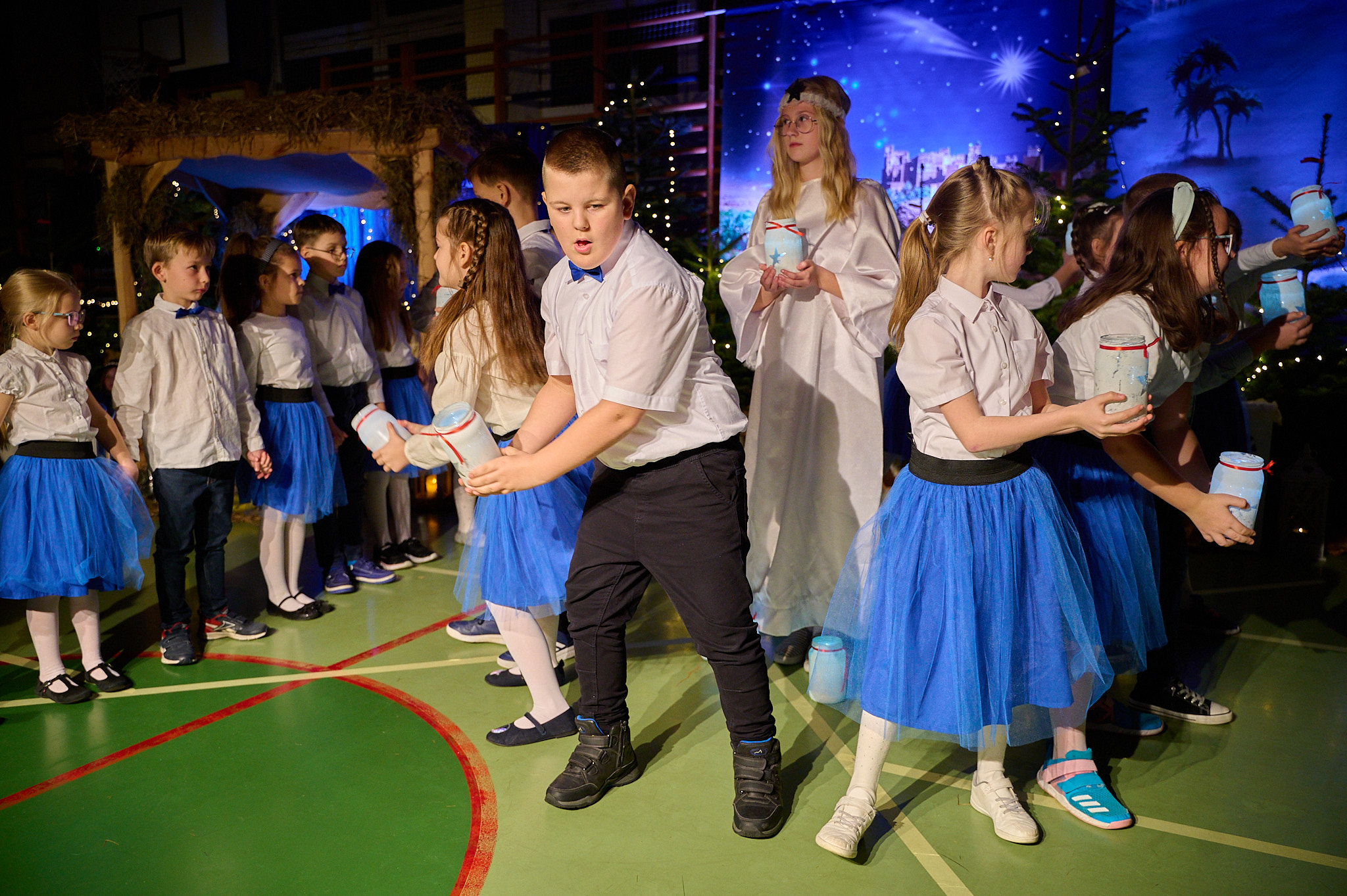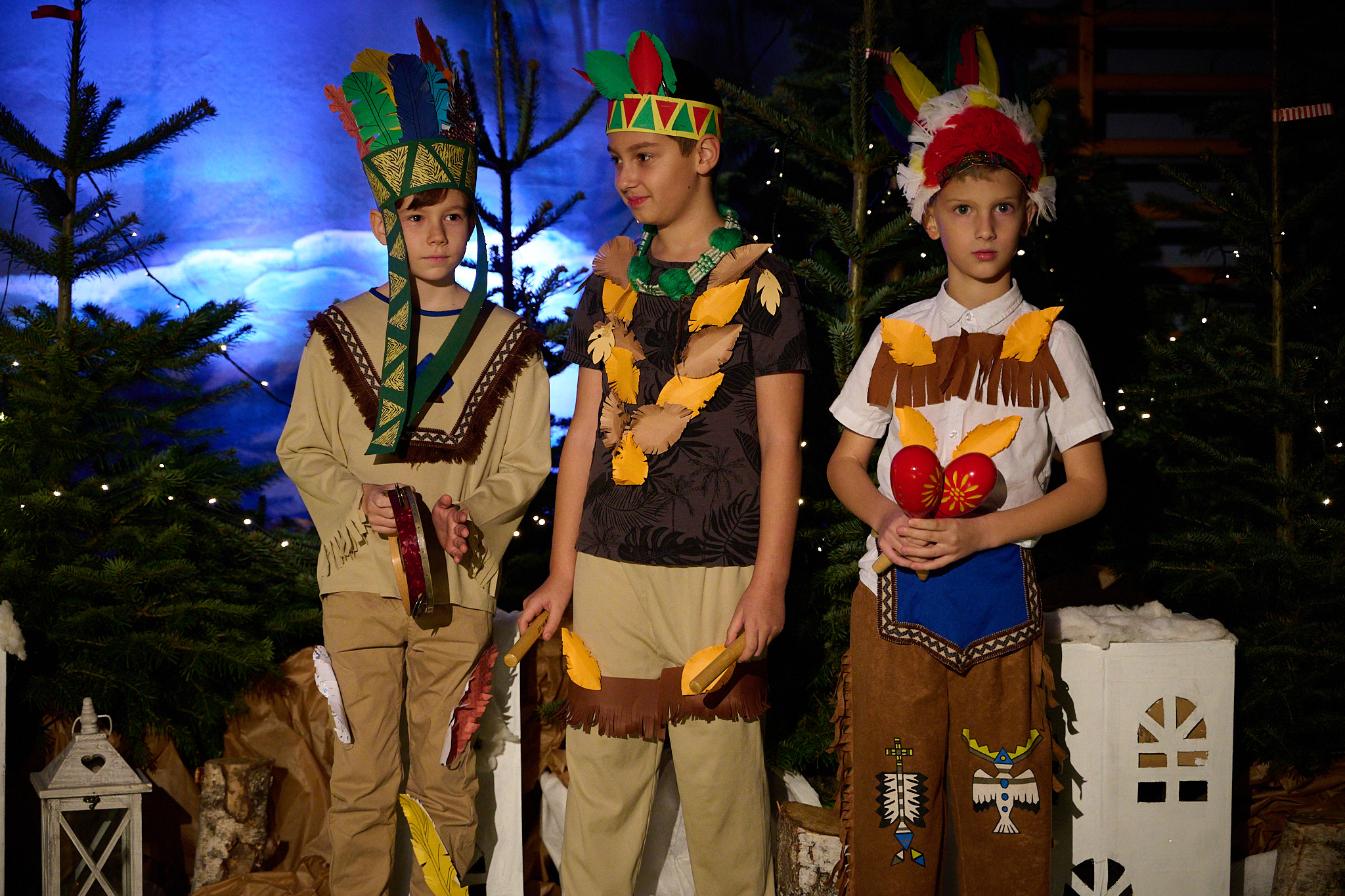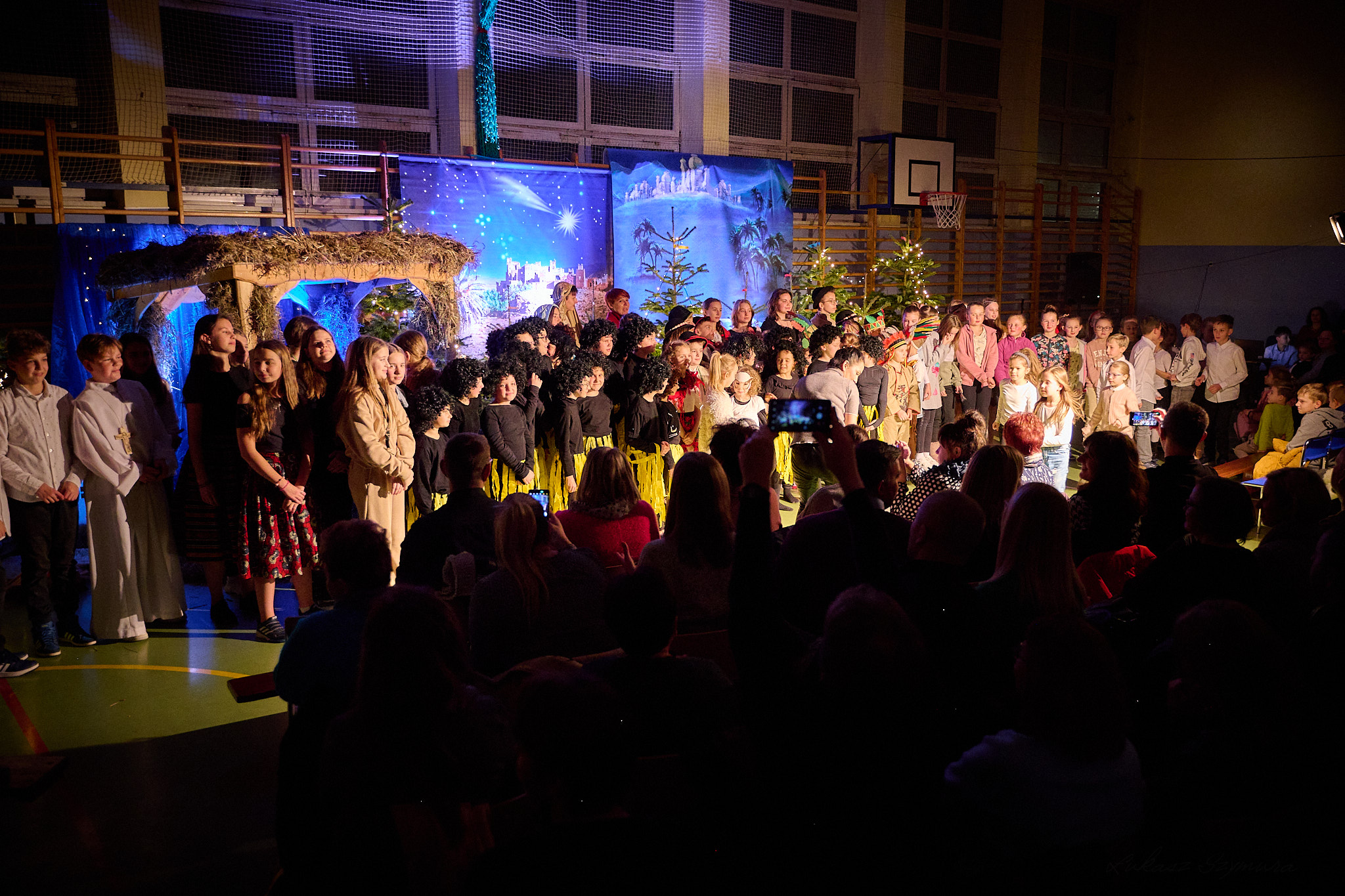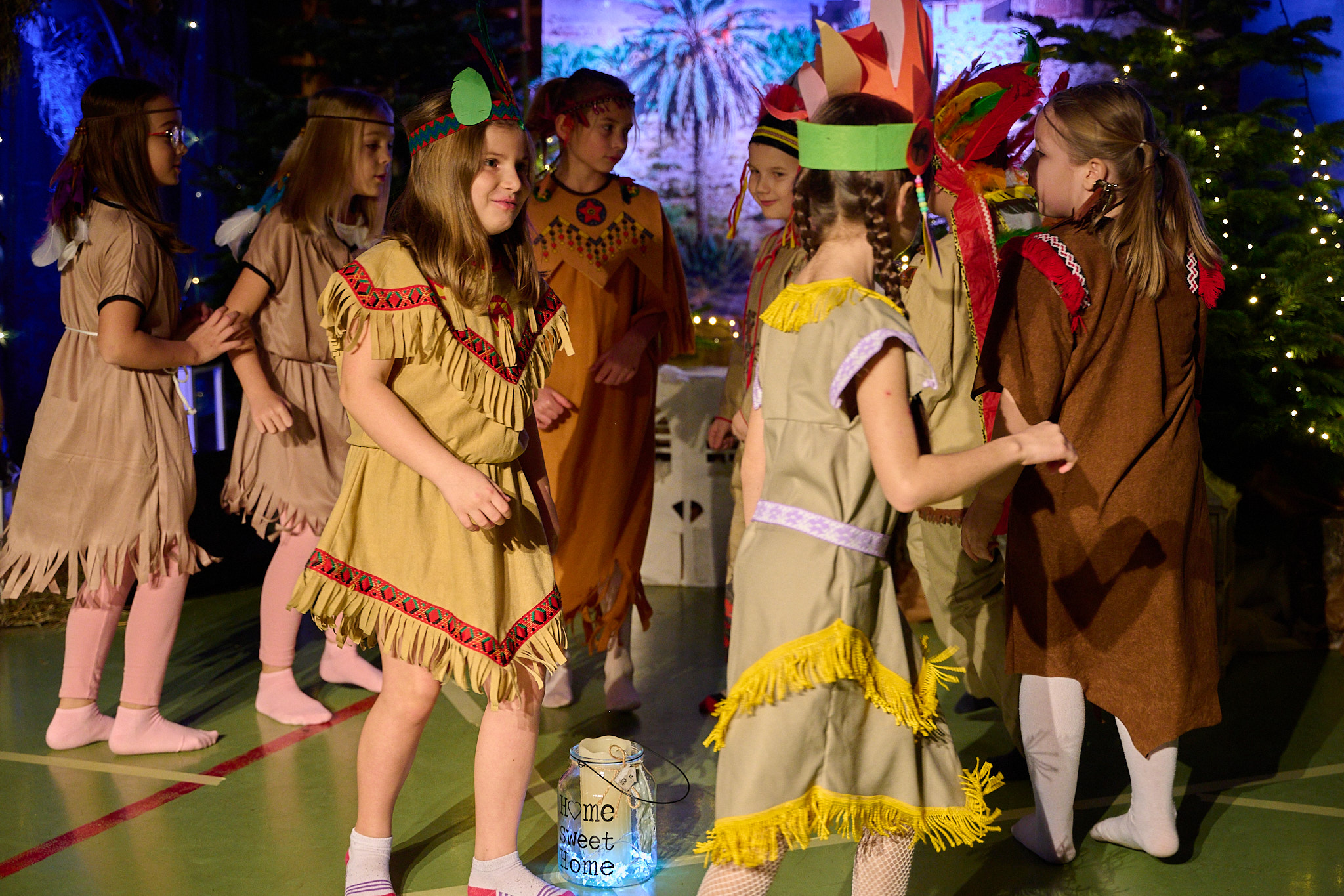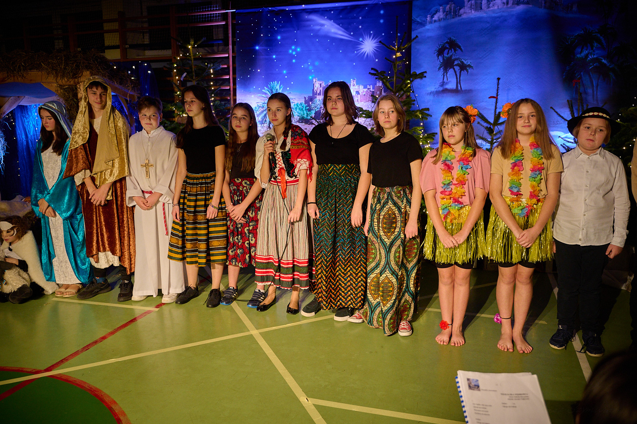 Boże Narodzenie to czas, kiedy wszyscy stają się dla siebie bardziej życzliwi, milsi i zapominają o wszelkich sporach i waśniach. Aby podkreślić wyjątkowy charakter tych świąt, uczniowie naszej szkoły wystawili Jasełka Misyjne.O dobrą zabawę i miłe doznania słuchowe zadbali zdolni aktorzy i wokaliści. Publiczność po raz kolejny mogła przeżyć historię Marii i Józefa. Jednak to do nich i małego Jezuska przybyli goście z wszystkich zakątków świata i złożyli dzieciątku pokłon. Całość przedstawienia przeplatana była tańcami, kolędami i pastorałkami.Jasełka w wykonaniu dzieci wprowadziły wszystkich w świąteczny nastrój, a uczniowie swym pięknym występem podbili serca publiczności.