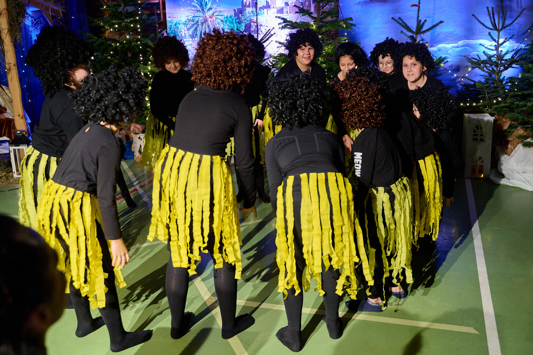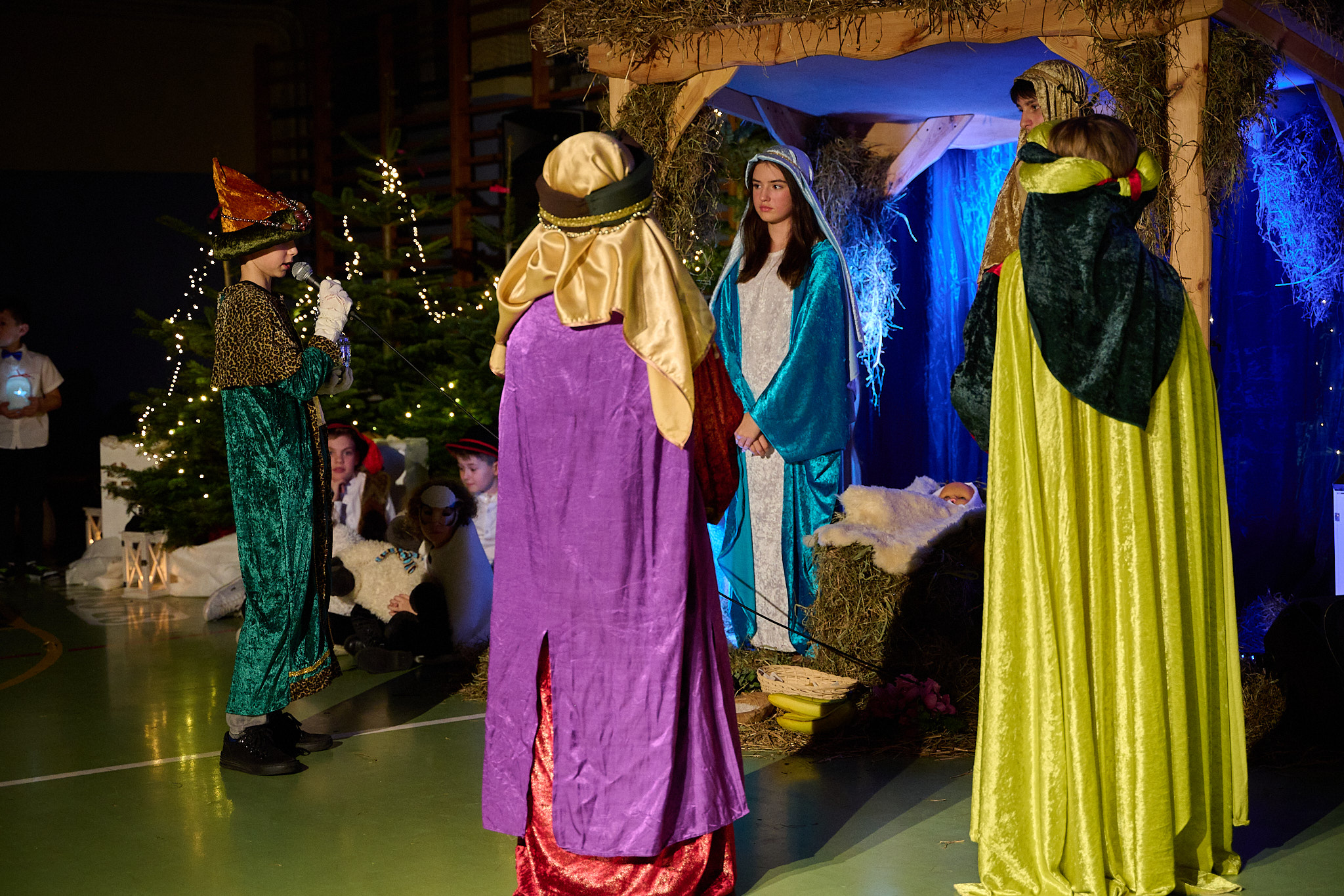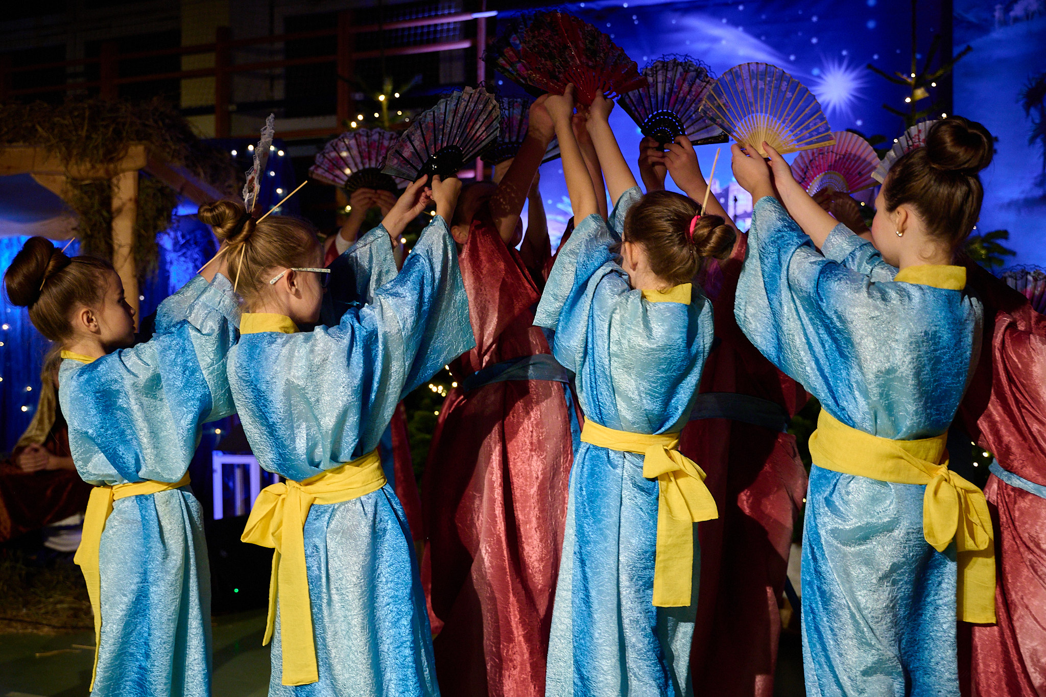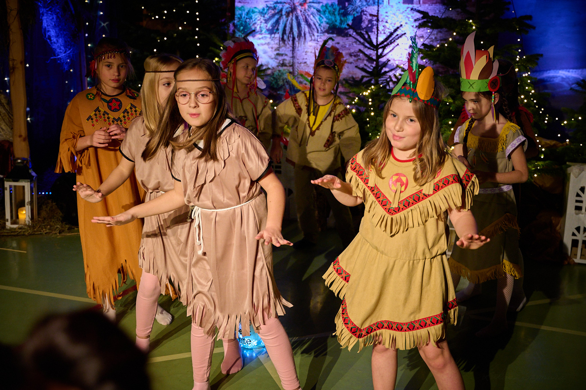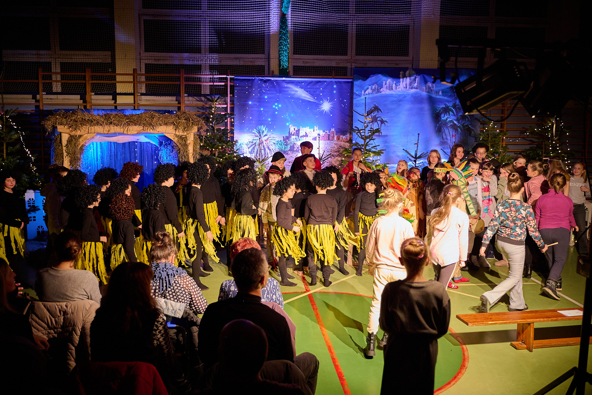 Boże Narodzenie to czas, kiedy wszyscy stają się dla siebie bardziej życzliwi, milsi i zapominają o wszelkich sporach i waśniach. Aby podkreślić wyjątkowy charakter tych świąt, uczniowie naszej szkoły wystawili Jasełka Misyjne.O dobrą zabawę i miłe doznania słuchowe zadbali zdolni aktorzy i wokaliści. Publiczność po raz kolejny mogła przeżyć historię Marii i Józefa. Jednak to do nich i małego Jezuska przybyli goście z wszystkich zakątków świata i złożyli dzieciątku pokłon. Całość przedstawienia przeplatana była tańcami, kolędami i pastorałkami.Jasełka w wykonaniu dzieci wprowadziły wszystkich w świąteczny nastrój, a uczniowie swym pięknym występem podbili serca publiczności.