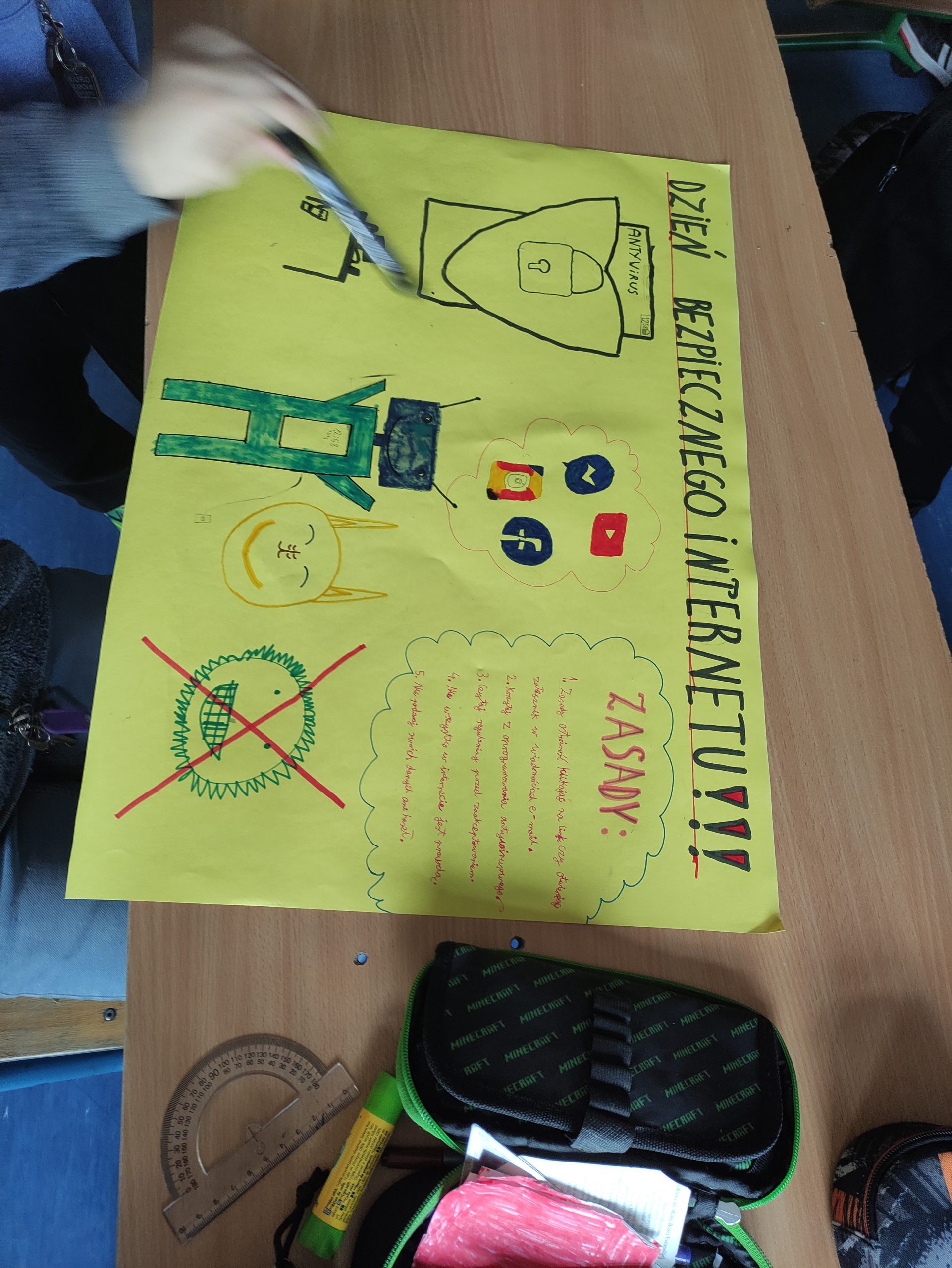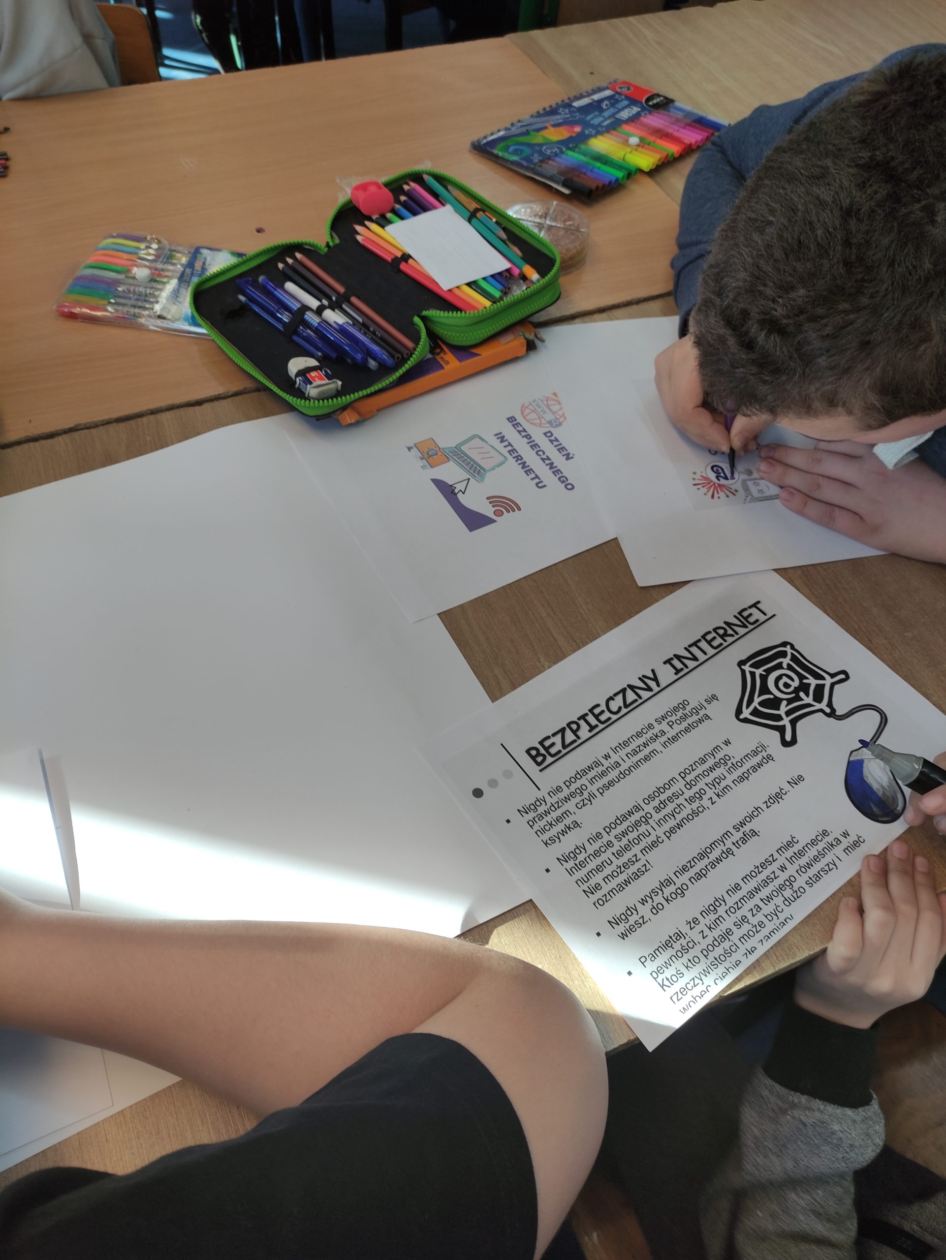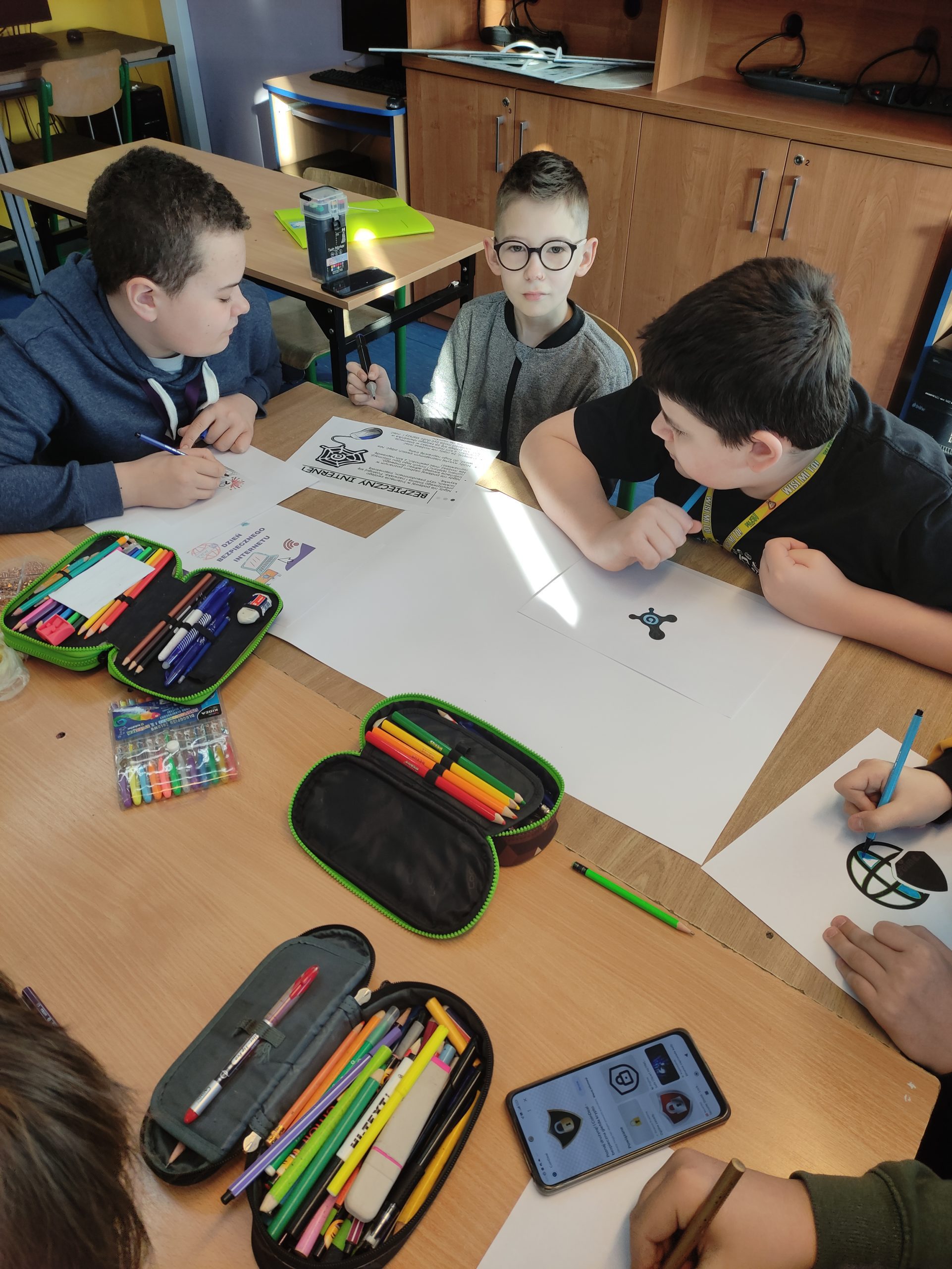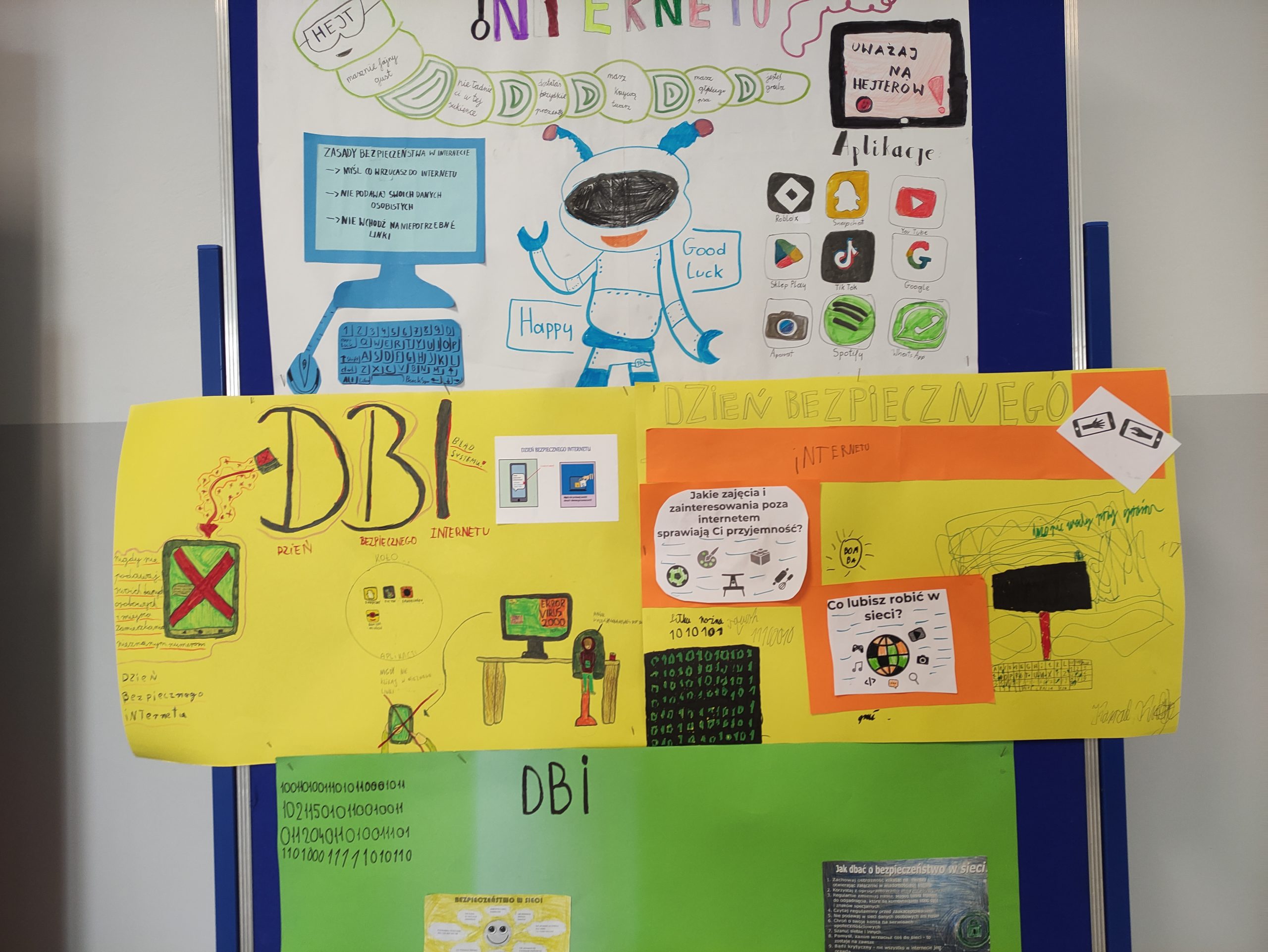 Podczas zajęć informatyki uczniowie klas 4-8 oglądali animacje oraz filmy dotyczące bezpieczeństwa w sieci, wykonywali plakaty informacyjne, które można podziwiać na korytarzach szkolnych oraz w sali informatycznej. Świetnie sobie poradzili pracując w grupach.