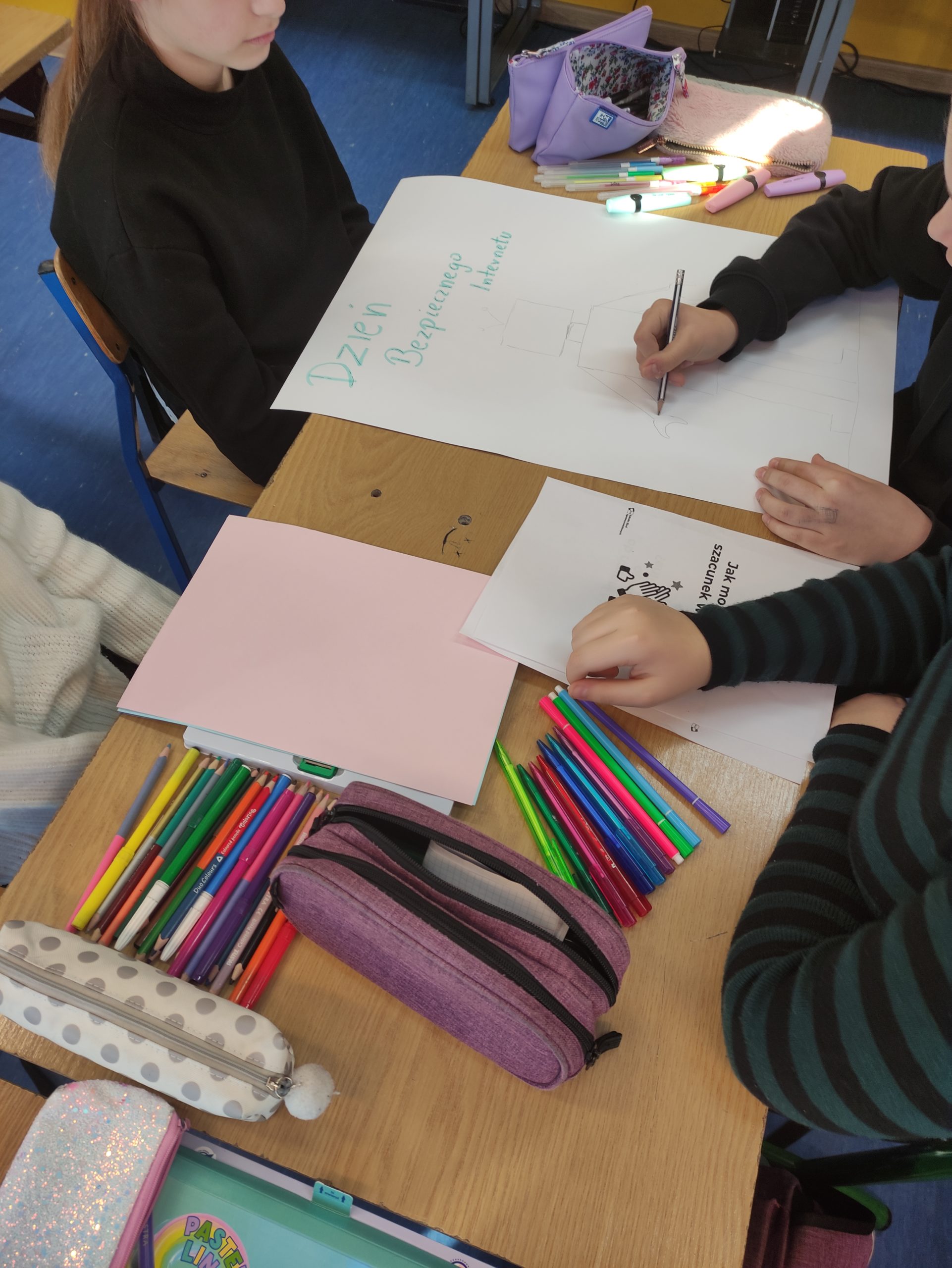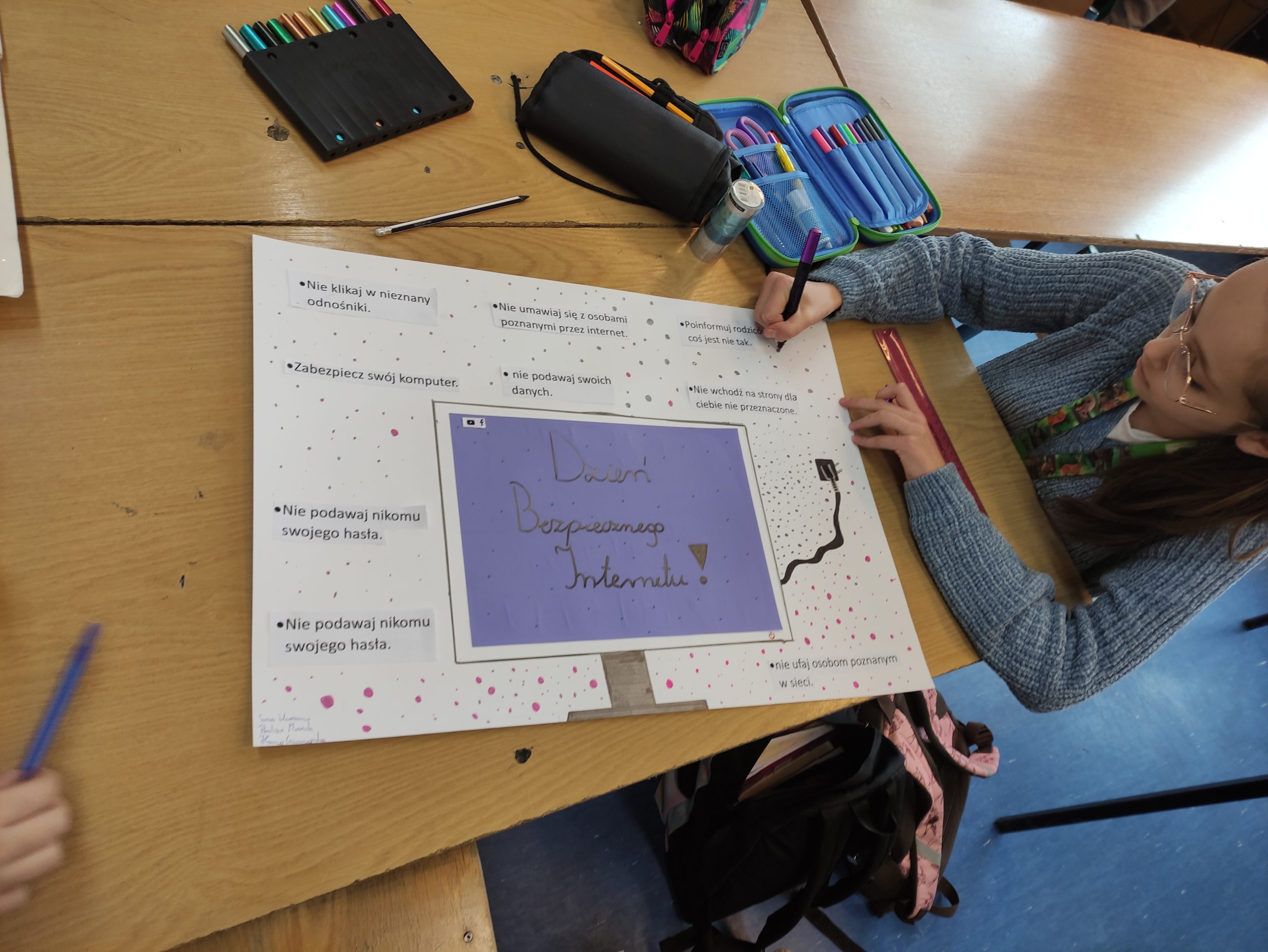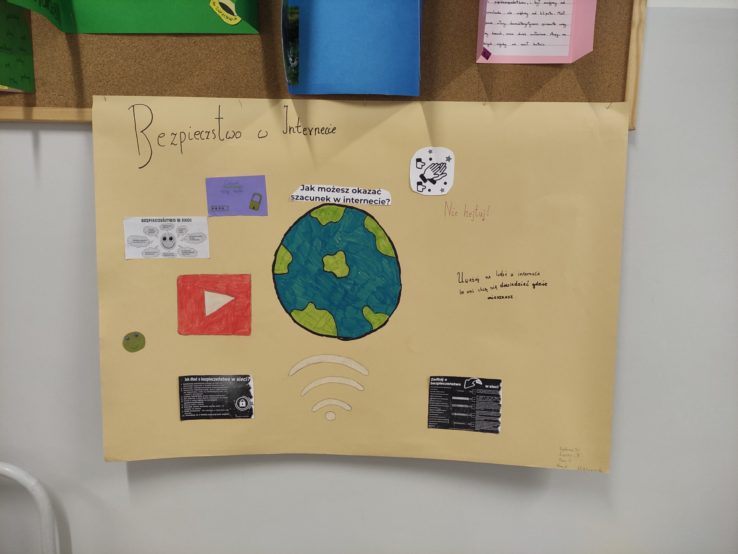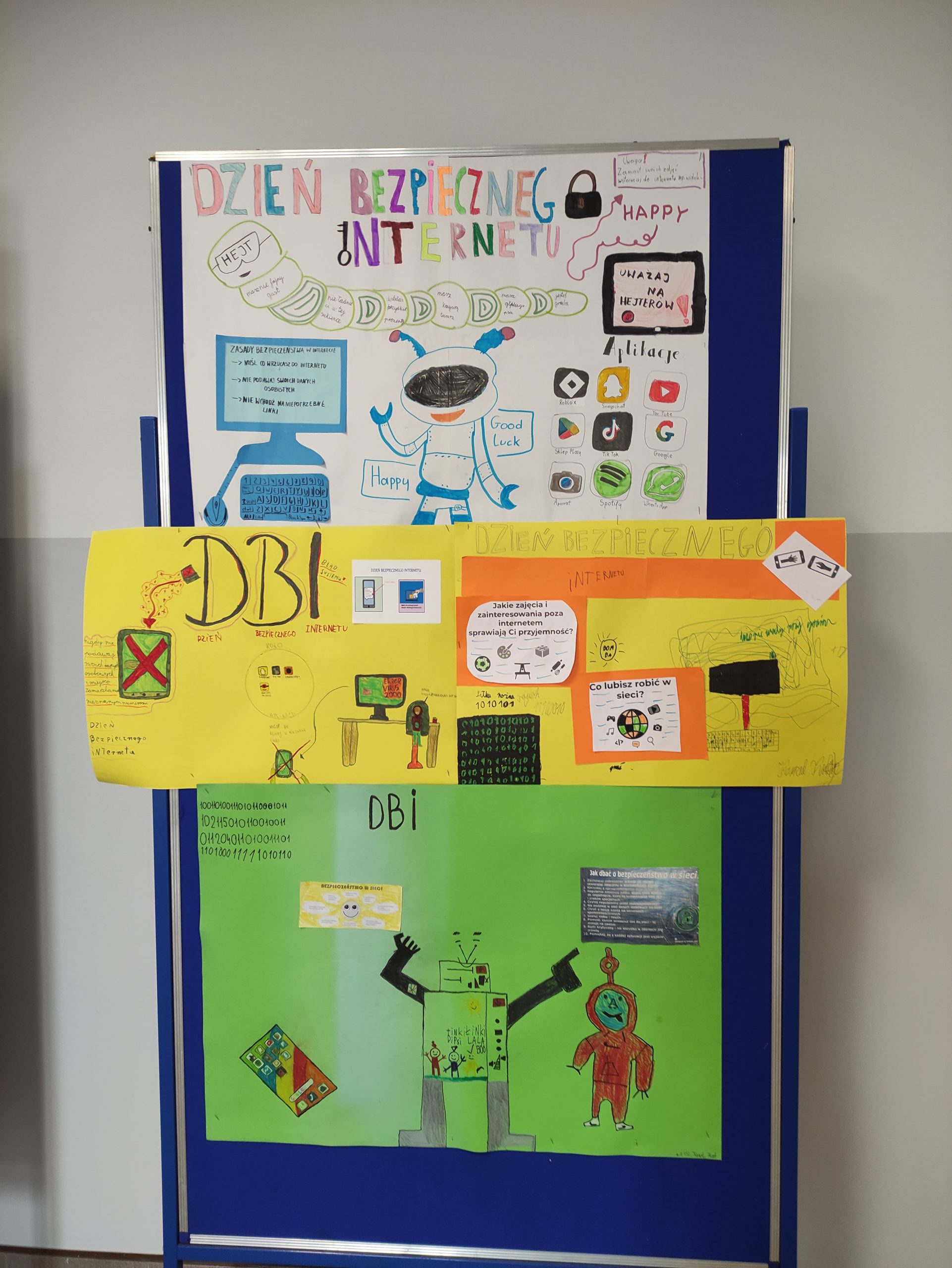 Podczas zajęć informatyki uczniowie klas 4-8 oglądali animacje oraz filmy dotyczące bezpieczeństwa w sieci, wykonywali plakaty informacyjne, które można podziwiać na korytarzach szkolnych oraz w sali informatycznej. Świetnie sobie poradzili pracując w grupach.