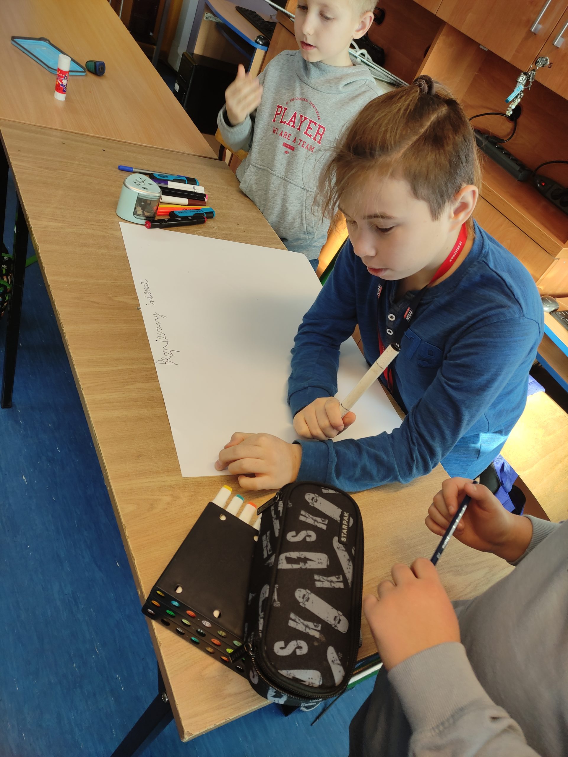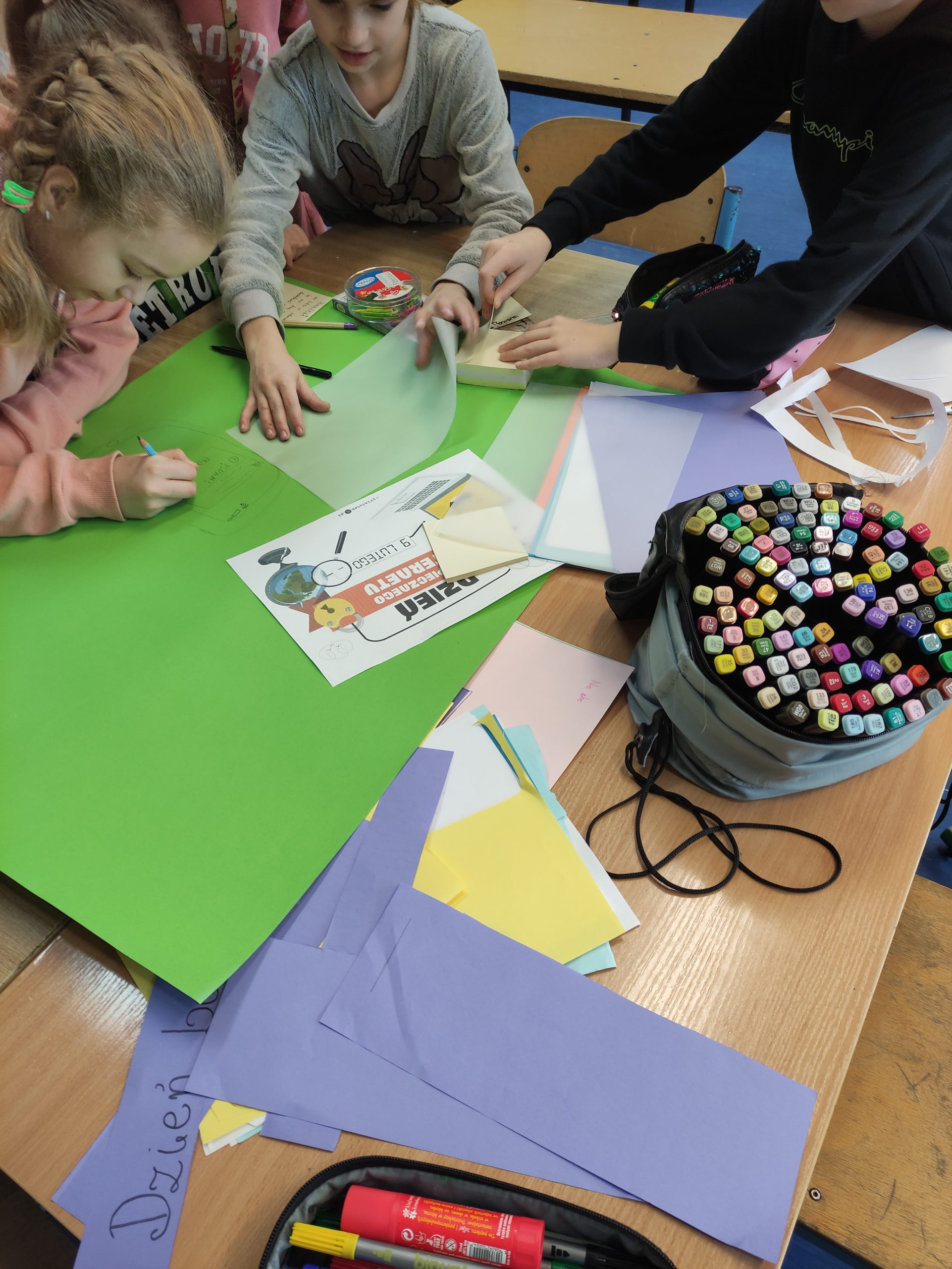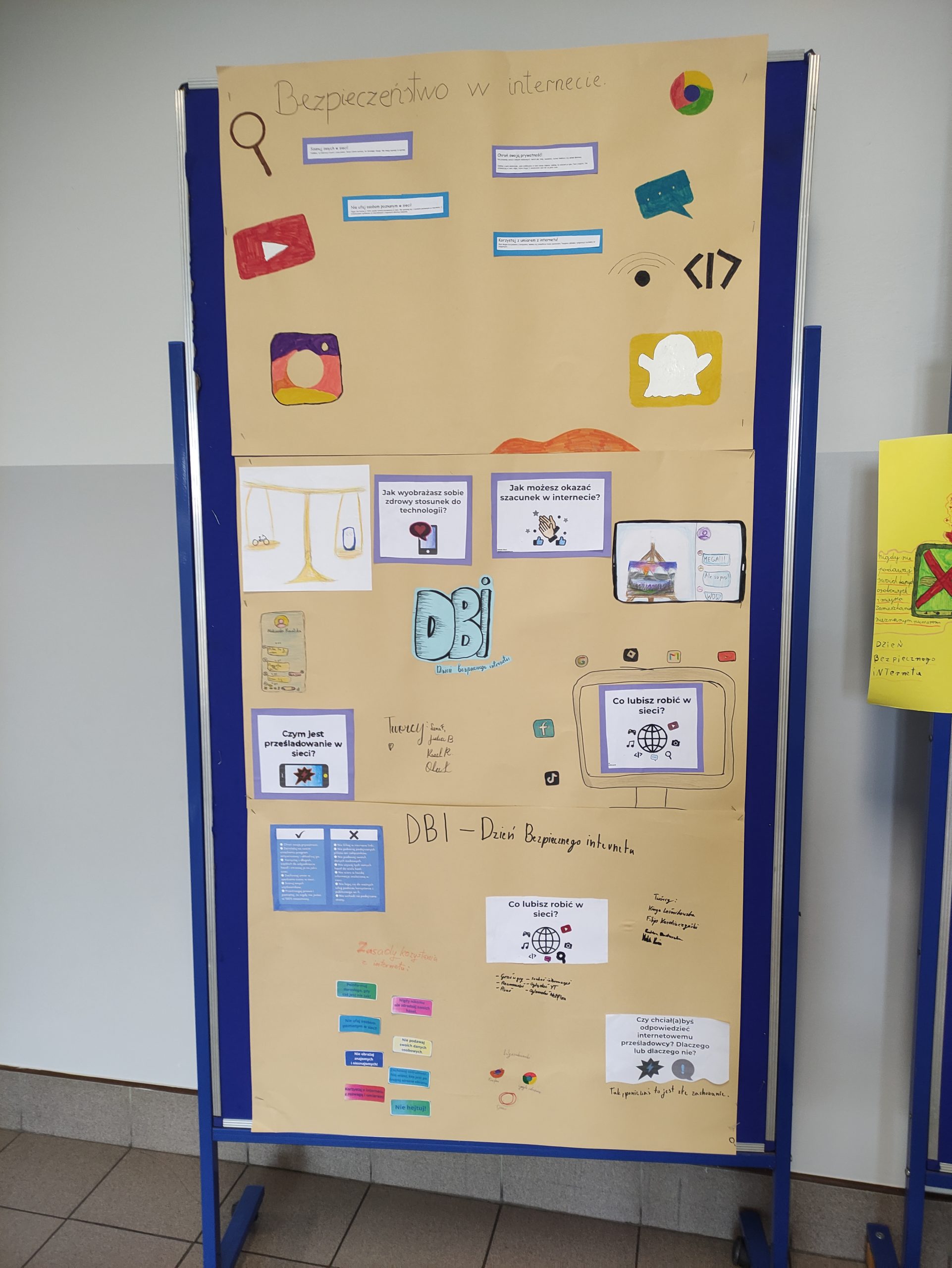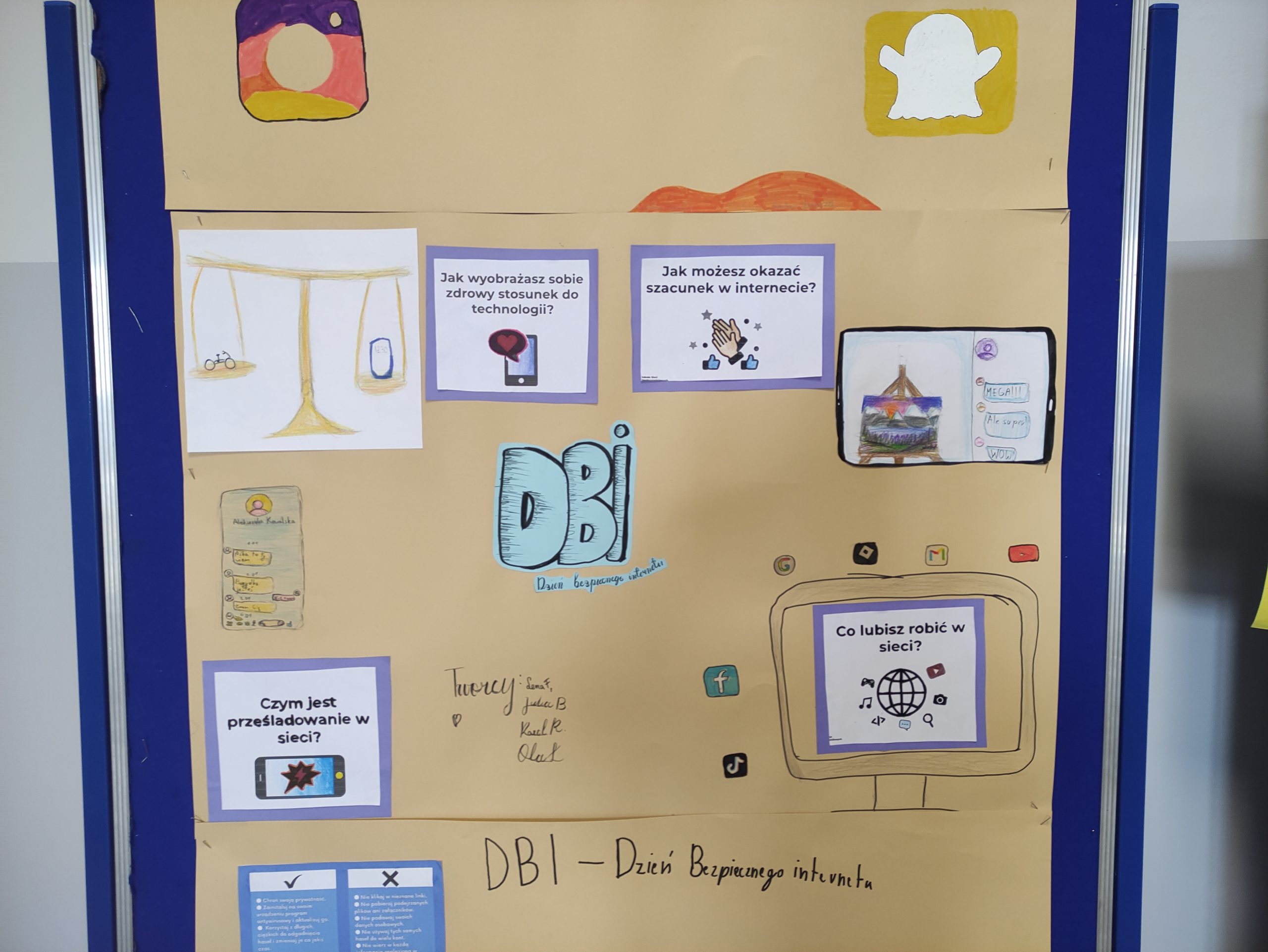 Podczas zajęć informatyki uczniowie klas 4-8 oglądali animacje oraz filmy dotyczące bezpieczeństwa w sieci, wykonywali plakaty informacyjne, które można podziwiać na korytarzach szkolnych oraz w sali informatycznej. Świetnie sobie poradzili pracując w grupach.