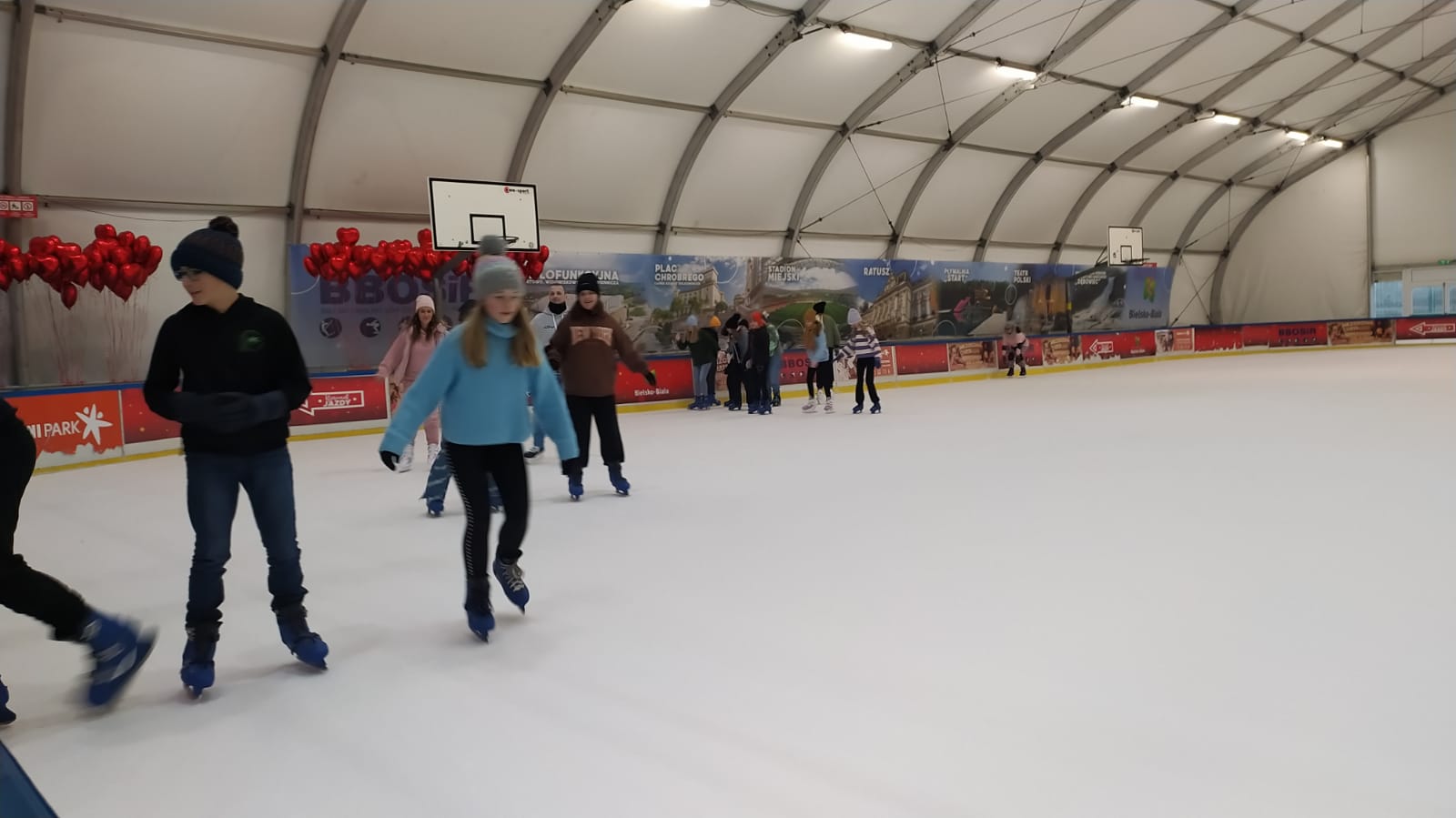 Na przełomie stycznia i lutego uczniowie klas VIII, VII, VI, V b oraz IV mieli okazję spróbować swoich sił na miejskim lodowisku w Bielsku Białej. Impreza cieszyła się ogromnym zainteresowaniem zarówno młodszych jak i starszych uczniów. Niektórzy rozpoczynali swoją przygodę z łyżwiarstwem, stawiając swoje pierwsze kroki na tafli. Wyjazd był połączony z wyjściem do kina na filmy: „Awatar”, „Kot w butach” oraz „Asteriks i Obeliks: Imperium Smoka”.