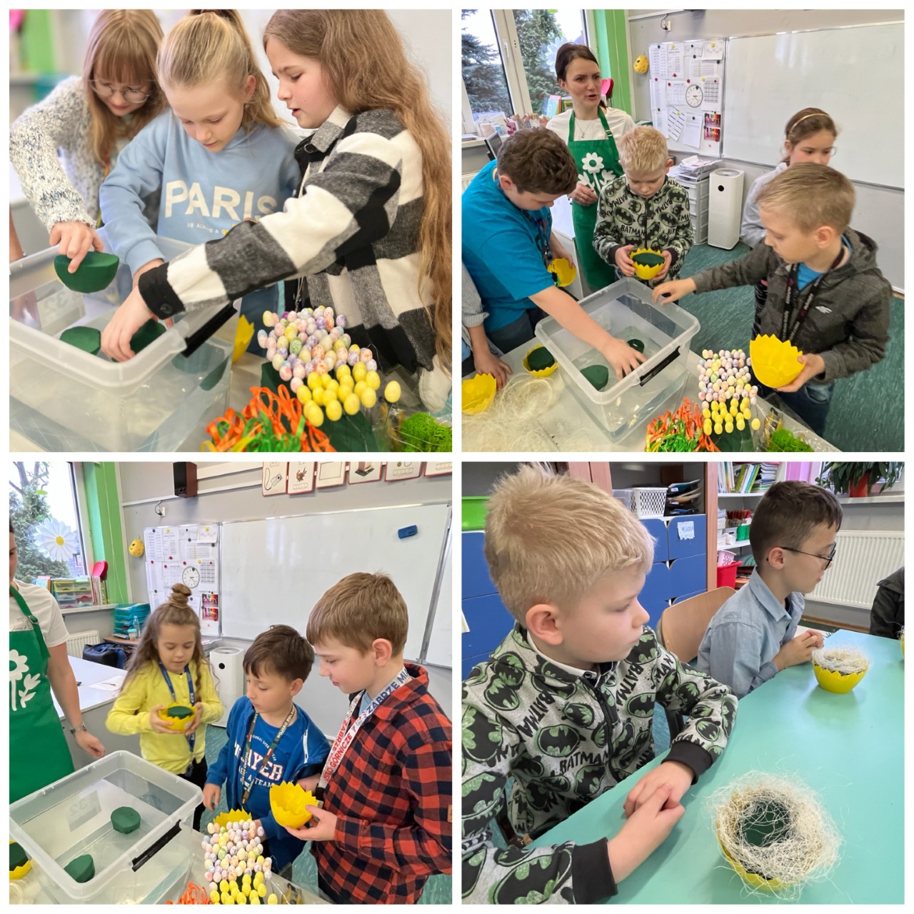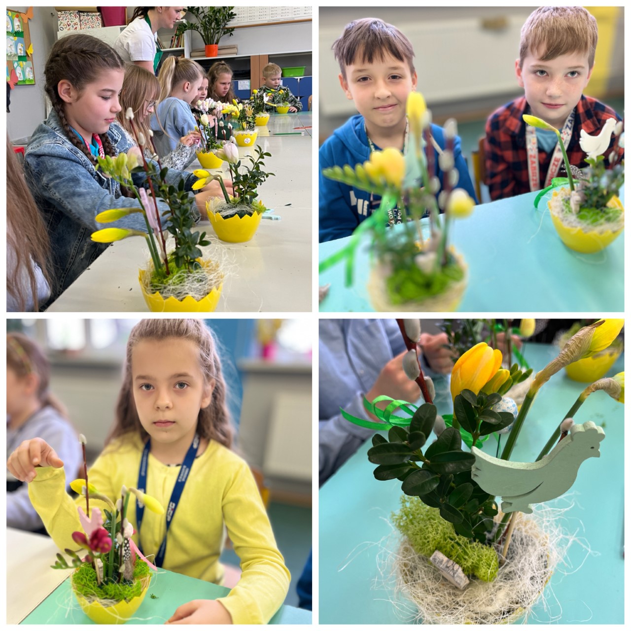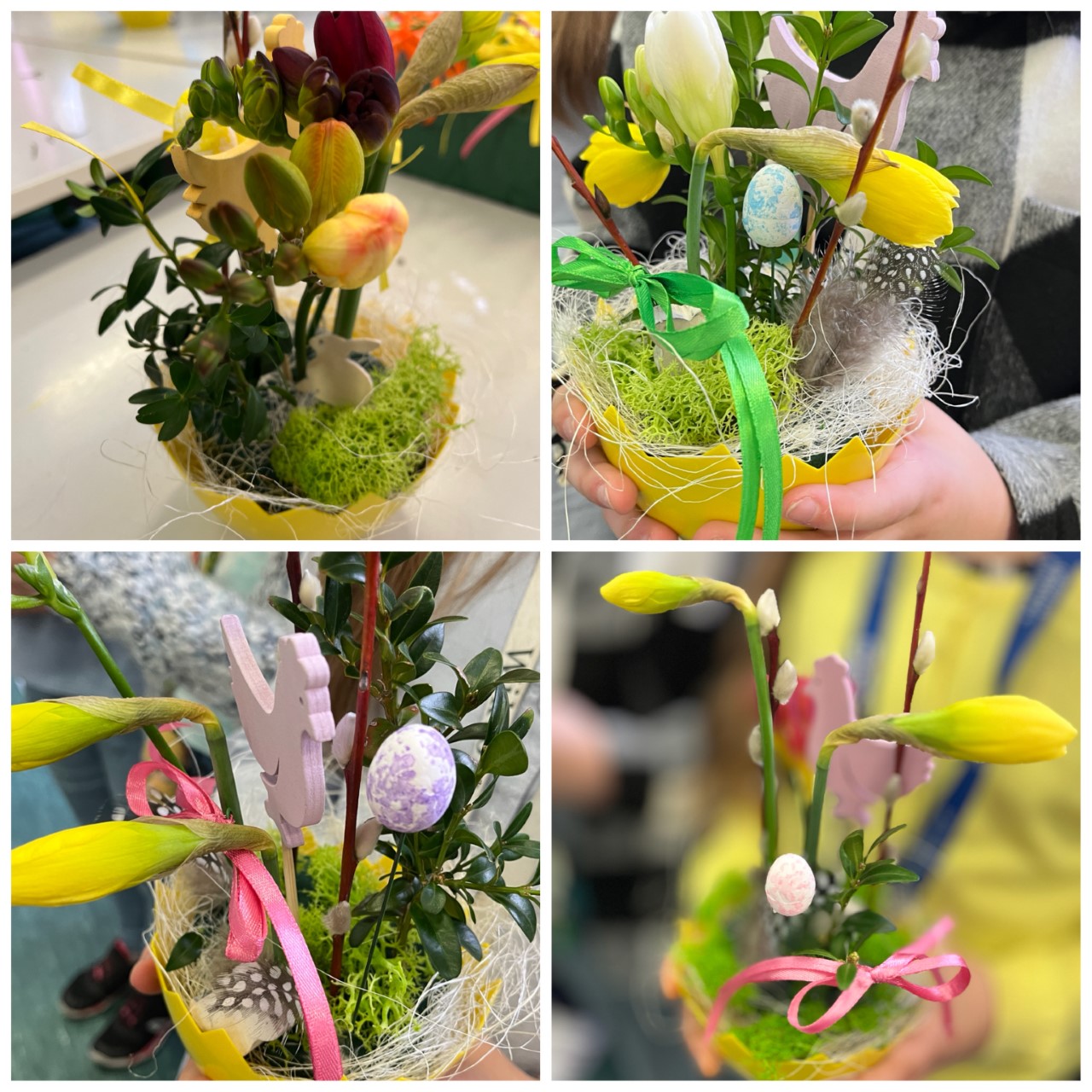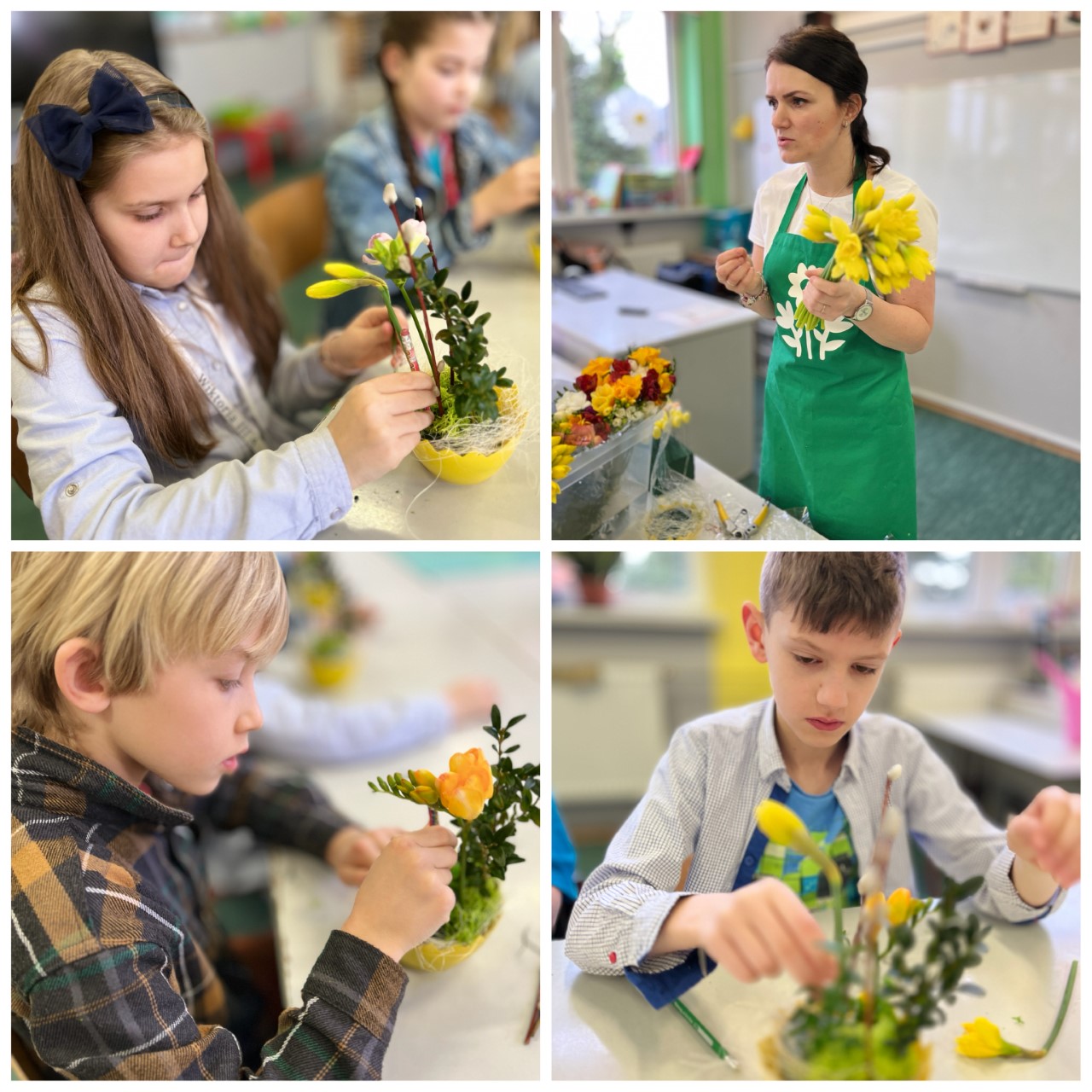 W okresie przedświątecznym uczniowie klasy 3a brali udział w warsztatach florystycznych organizowanych przez p.Marię Hasik, która reprezentuje markę własną @Kwiatowa Mania. Uczniowie wykonali piękne kompozycje, które mimo pochmurnej pogody za oknem zbliżyły nas do wiosny i Wielkanocy.