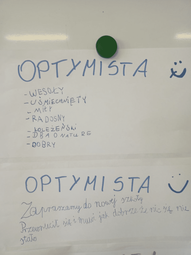 W kwietniu klasa 3a zakończyła cykl 30 spotkań koncentrujących się na kształtowaniu pozytywnych postaw i zachowań poprzez rozwijanie odporności psychicznej oraz optymistycznego podejścia do życia. Podczas zajęć omawiane były takie tematy jak: optymizm, przyjaźń, kreatywność, wytrwałość, zdrowie fizyczne, szczerość, życzliwość, wdzięczność, marzenia. Zajęcia to ćwiczenia uważności, tworzenie własnych apteczek i plakatów, praca w grupach a także najważniejszy i ulubiony punkt – rozmowy z dziećmi, które bardzo chętnie podejmowały dyskusje na różne tematy, te przyjemne i mniej przyjemne, często dzieląc się z nauczycielem swoimi troskami i zmartwieniami. Uczniowie uczyli się w skupieniu wysłuchiwać innych. Najważniejsze przesłania, z jakimi zakończyliśmy projekt to: