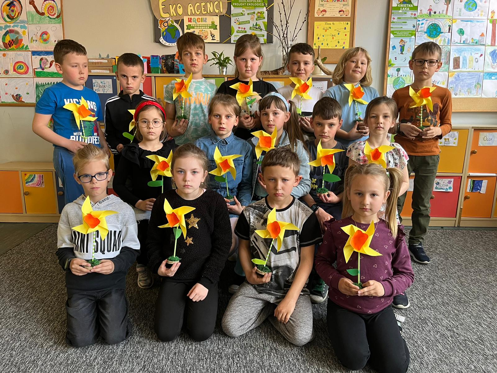 Nasza szkoła włączyła się w interesujący projekt związany z obchodami 80.rocznicy wybuchu powstania w getcie warszawskim we współpracy z Muzeum Żydów Polskich POLIN. Zarówno klasy młodsze, jak i starsze brały udział w ciekawych zajęciach na języku polskim, historii, lekcjach z wychowawcą i zajęciach bibliotecznych. Oglądaliśmy filmy edukacyjne, czytaliśmy opowiadania o bohaterach tamtych wydarzeń, dyskutowaliśmy na tematy związane z wojną, strachem i odwagą, ale i przyjaźnią, solidarnością i empatią. Symbolem powstania w getcie warszawskim jest żółty żonkil, dlatego i my tworzyliśmy papierowe kwiaty.