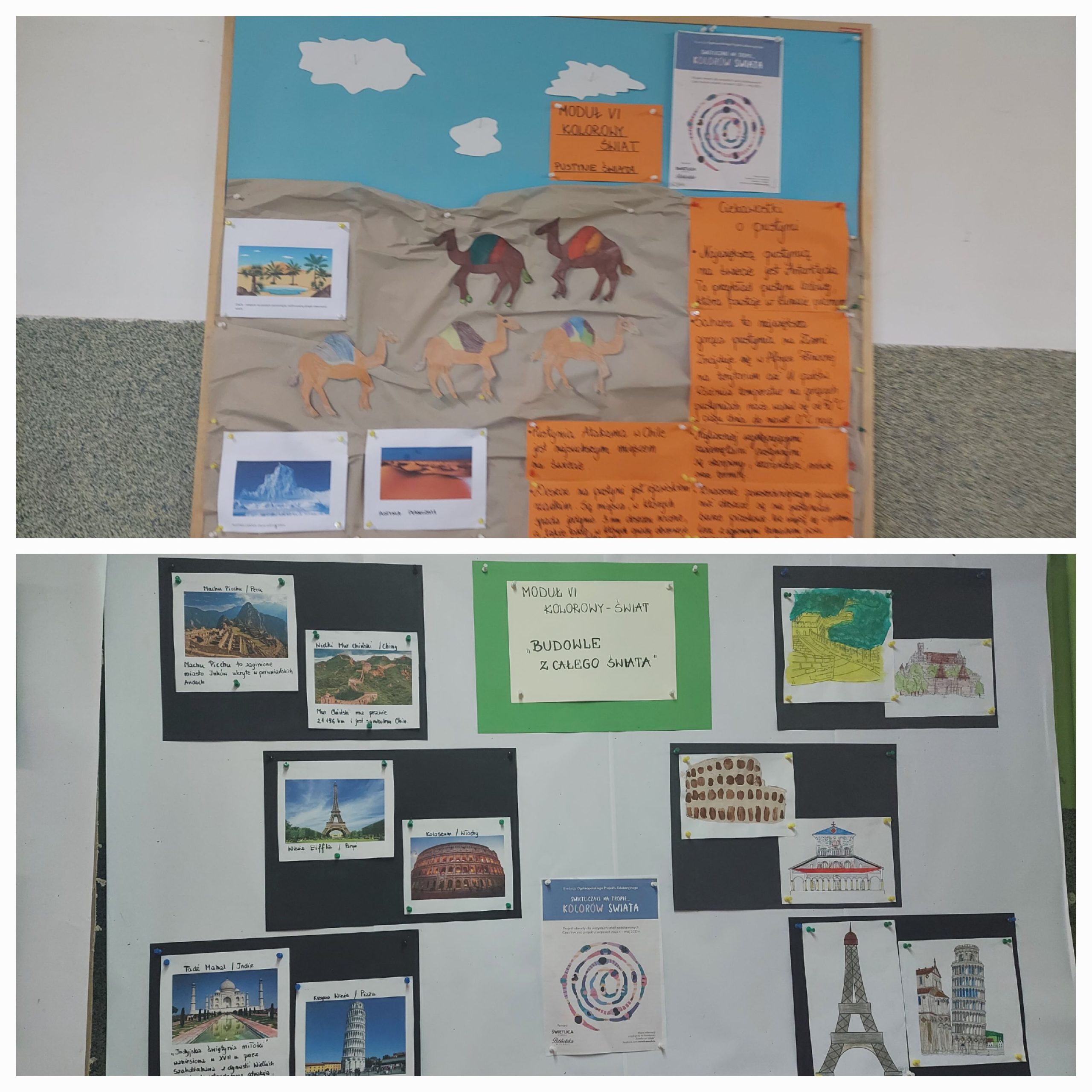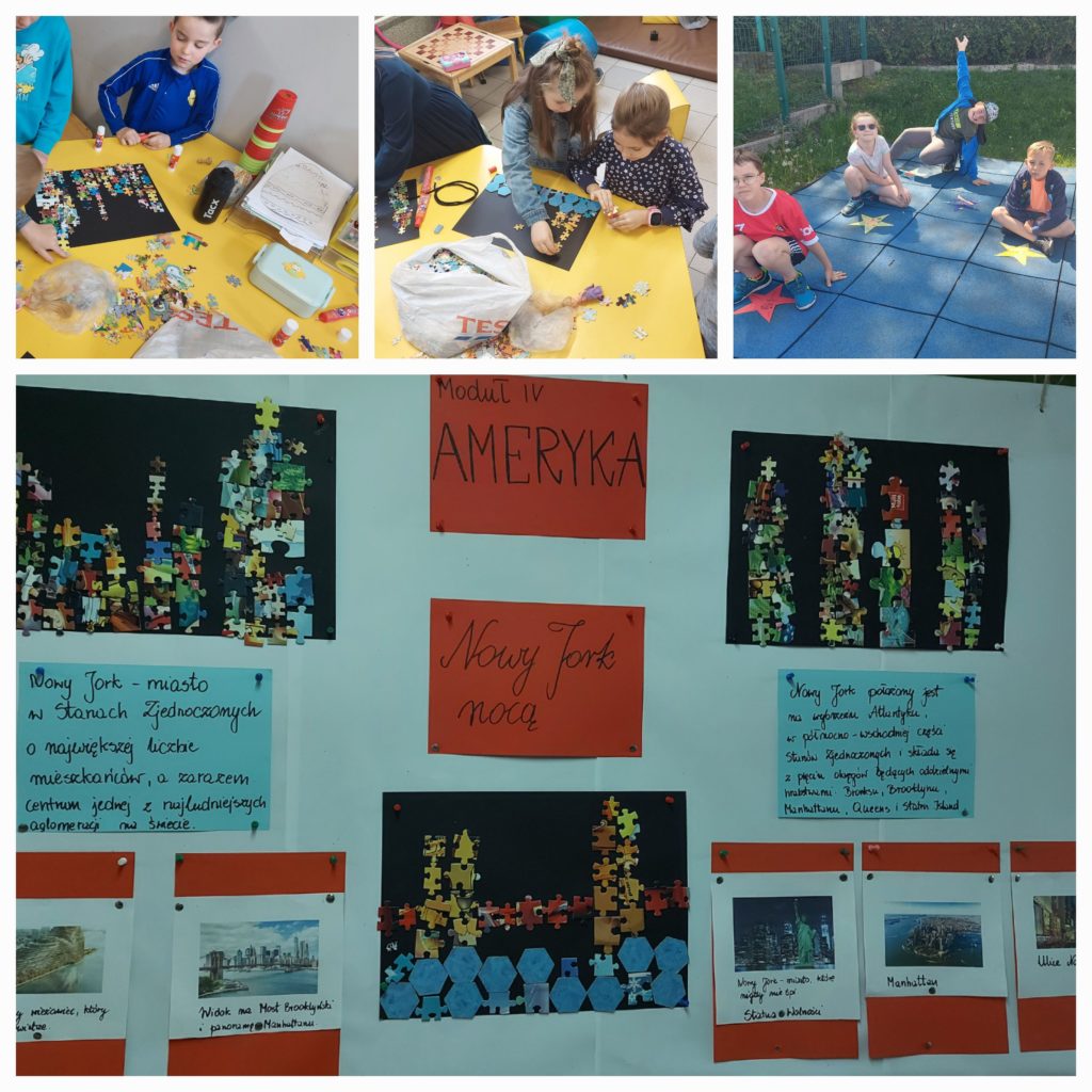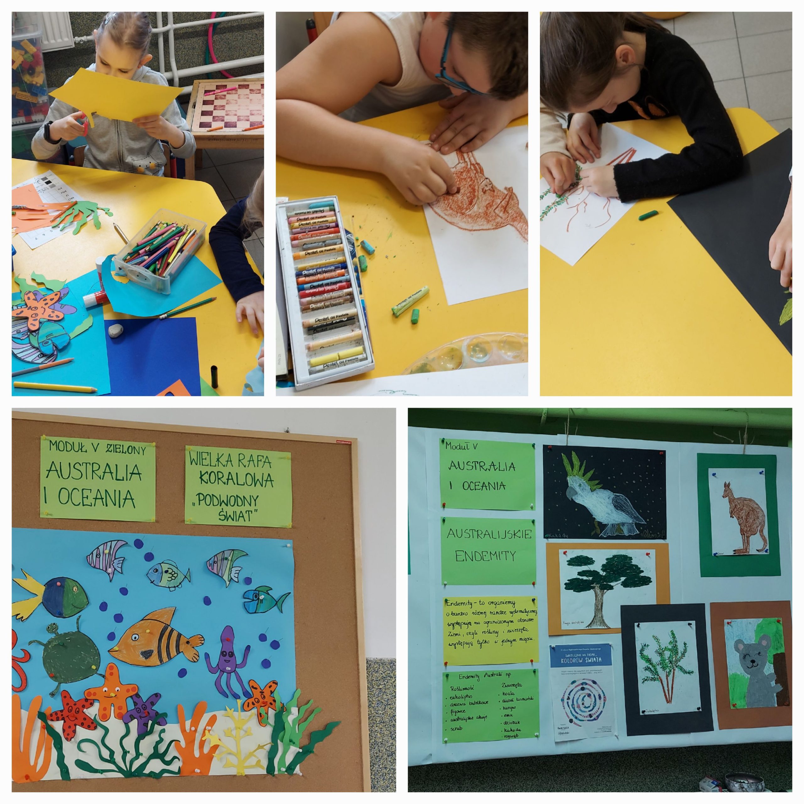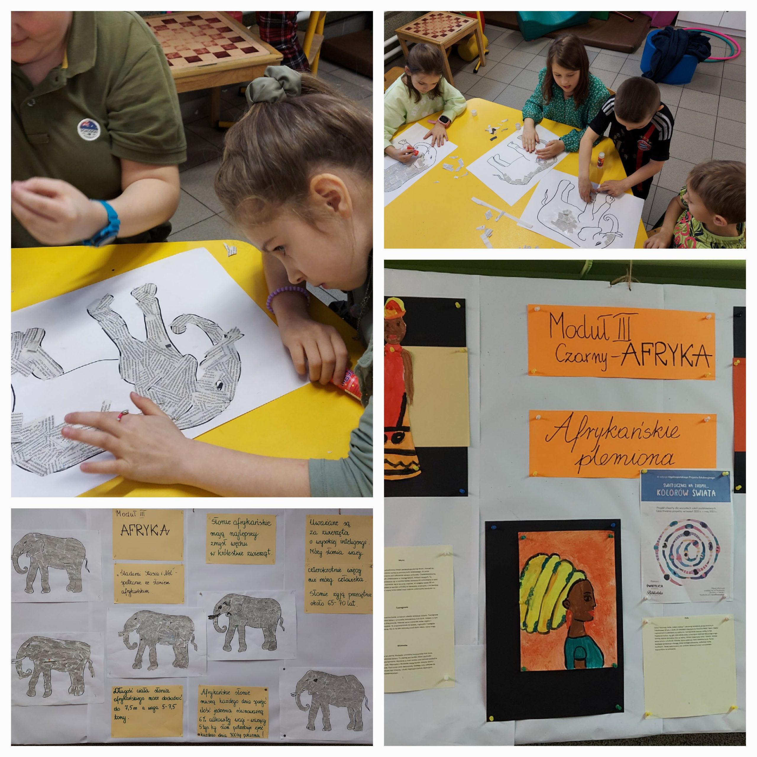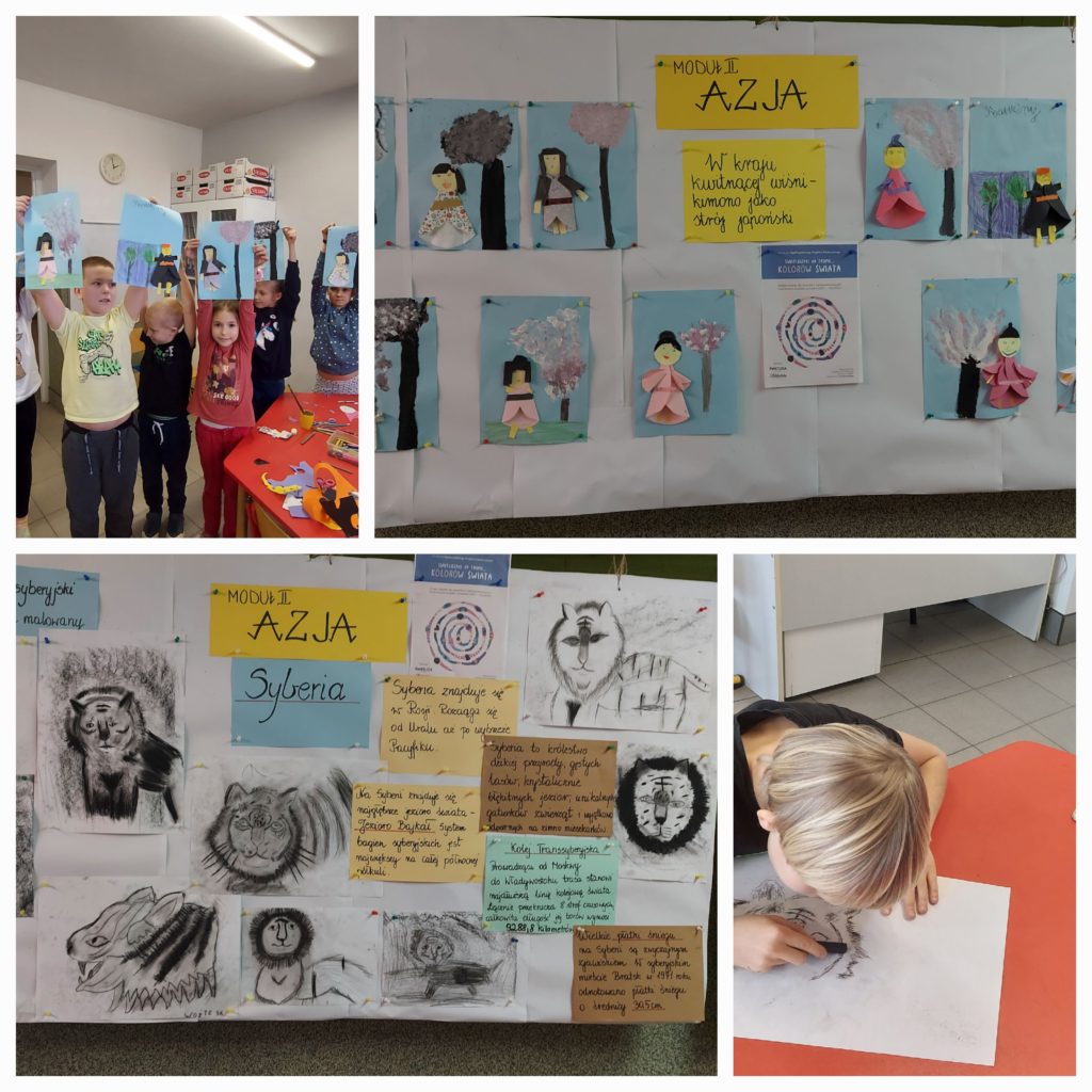 W tym roku szkolnym nasza świetlica brała udział w Ogólnopolskim Projekcie Edukacyjnym w ramach Akademii Świetlicowej pt. „Świetliczaki na tropie …kolorów Świata”. Projekt składał się z 6 modułów – Europy, Azji, Afryki, Ameryki i Australii z Oceanią, oraz jednego wspólnego „Kolorowego” odnoszącego się do wszystkich kontynentów. Był realizowany cyklicznie w ciągu całego roku. Uczniowie „zwiedzali” poszczególne kontynenty, poznawali ich przyrodę, kulturę, sztukę, tradycje, zwyczaje w celu wykonania różnych prac plastycznych. Głównym celem działań było uwrażliwienie dzieci na piękno otaczającego świata oraz potrzebę ochrony przyrody.