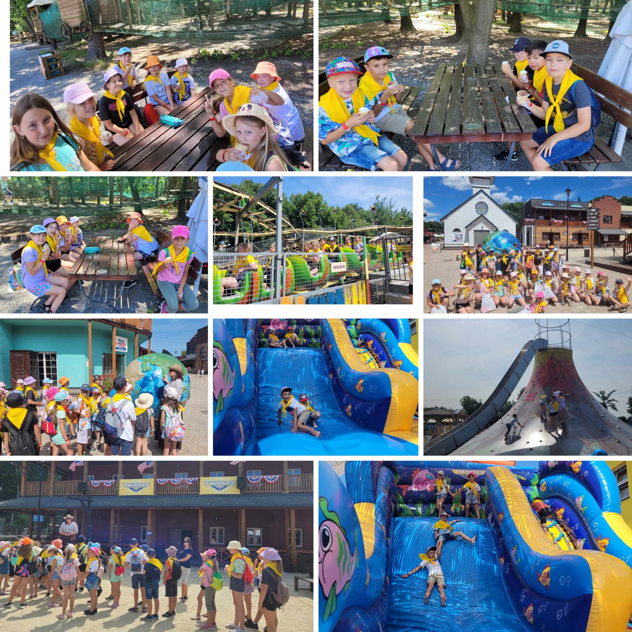 W okresie wakacyjnym tj. w dniach od 3.07. do 7.07.2023r w naszej szkole zorganizowano półkolonie letnie. Uczestniczyło w nich 30. dzieci pod opieką wychowawców: pani Olgi Witki oraz Darii Maroszek i czuwającej nad całością półkolonii, kierownikiem Agnieszką Porębską.Uczestnicy brali udział w szczegółowo przygotowanym programie, który składał się z zajęć rekreacyjnych oraz zajęć o charakterze profilaktycznym. Odpowiednie metody i formy pracy pozwoliły na stworzenie pozytywnego klimatu zachęcającego do aktywnego wypoczynku i rozrywki.W pierwszym dniu tj. 3.07.2023r nasi uczniowie zostali zapoznani z wychowawcami poszczególnych grup, regulaminem, zasadami postępowania podczas zabaw, podróżowania autokarem oraz zachowania w miejscach publicznych, zasadami BHP oraz postępowania w sytuacjach kryzysowych.Uczestnicy poznali plan zajęć na każdy dzień. Następnie odbyły się wspólne zajęcia profilaktyczne. W tym dniu odbyła się również wycieczka do Ogrodów Kapias w Goczałkowicach-Zdroju oraz spacer nad Zaporę Jeziora Goczałkowickiego. Nie zabrało również pysznych lodów!Wtorek 4.07.2023r – półkoloniści odwiedzili Westernowy Park Rozrywki TWINPIGS. Jest to miasteczko podzielone na osiem stref tematycznych, nawiązujących do historii i kultury zza oceanu. Pełno tam niesamowitych atrakcji, m.in. strzelnice, małe zoo oraz park linowy. Najbardziej niezapomnianychwrażeń dostarczyła strefa „Meksyk” oraz „Powrót do przyszłości” tam zwiedzali Nawiedzoną Sztolnię, Tajemnicze Podziemie. Znakomitą zabawę mieli na Wahadle Montezumy i różnych innych karuzelach. Chwilę relaksu zapewniło kino 5D oraz Zwierzyniec, gdzie czekały na uczniów oswojonezwierzęta: owce kameruńskie, kozy oraz daniele.Środa 5.07.2023r była dniem filmowym. Półkoloniści udali się na seans filmowy do Multikina w Czechowicach-Dziedzicach, by obejrzeć film pt. „Mała syrenka”. Niezwykłe sceny filmowe, które bardzo podobały się uczniom, urozmaicały przepiękne utwory muzyczne. Po filmie udaliśmy siędo pizzeri, a następnie w dobrych humorach wróciliśmy do domów.Czwartek 6.07.2023r – Pierwszym punktem programu była wizyta w Gliwicach w House of air, parku trampolin pełnego radości i niekończącej się zabawy. Atrakcji było sporo: 50 trampolin, mecze w zbijaka, poduszka do akrobacji, tor przeszkód, boisko koszykarskie oraz kids zone. Następniekrótka przerwa na pyszne gofry i przejście na Wystawę Klocków LEGO. Precyzja konstrukcji z tak małych klocków różnych budowli, pojazdów, postaci, makiet wzbudziła niemałe zainteresowanie. Po obejrzeniu ekspozycji nasi uczniowie spędzili wesoło i kreatywnie czas w strefie zabaw klockami LEGO, a na koniec mieli okazję wykonać zdjęcia z użyciem niecodziennych teł.Piątek 7.07.2023r – był ostatnim dniem półkolonii, ale pełnym wrażeń, emocji i radosnych uśmiechów. Dzień zaczęliśmy od plażowania, owocowego pikniku oraz zabawy na wodnym placu zabaw nad Jeziorem Paprocańskim. Następnie udaliśmy się do Centrum Rozrywki 4Kids, gdzie uczniowiekorzystali ze zjeżdżalni, wieży wspinaczkowej oraz toru przeszkód. Wszystkie aktywności sprawiły wiele radości!Dziękujemy wszystkim uczestnikom za każdy uśmiech i wspólną zabawę.Do zobaczenia za rok!