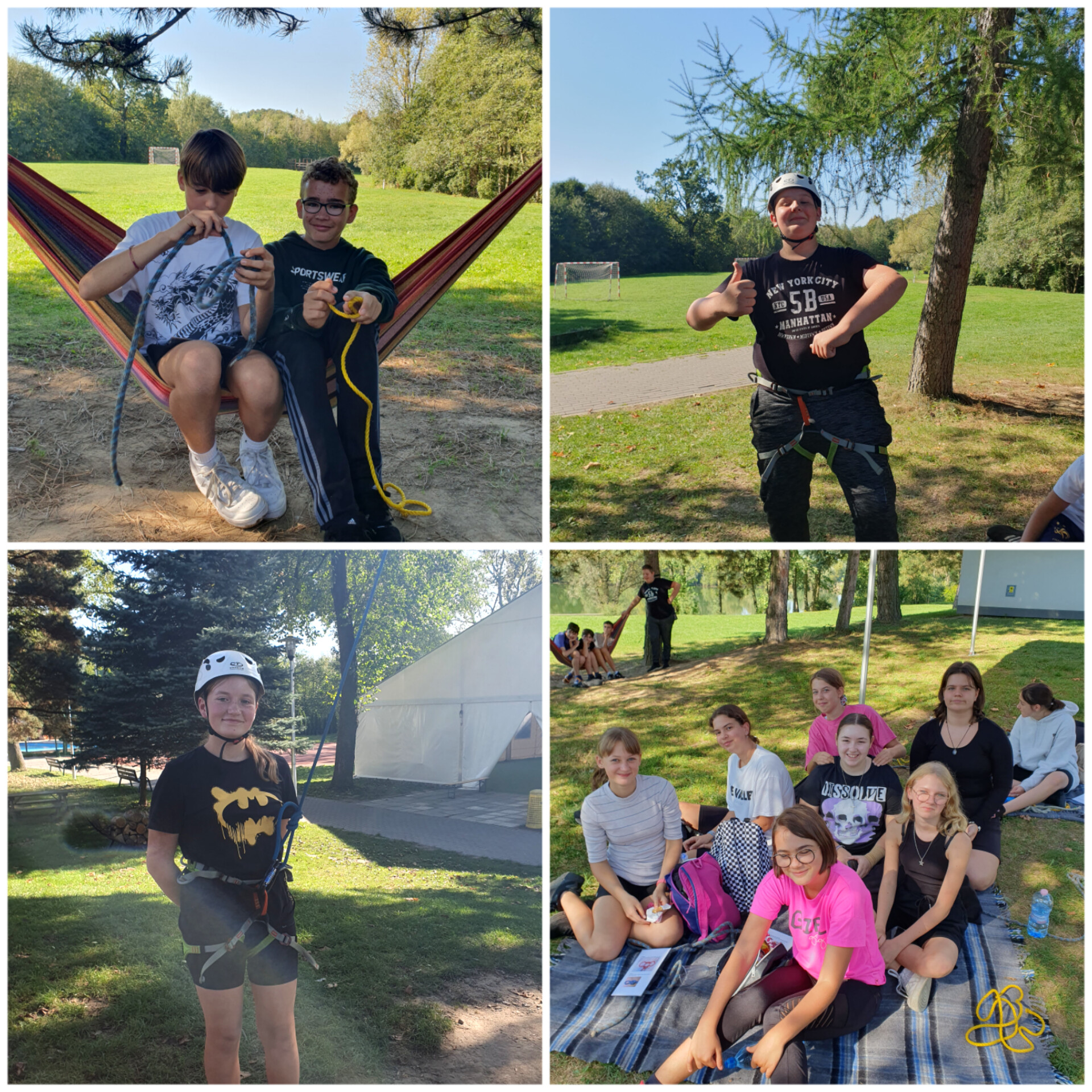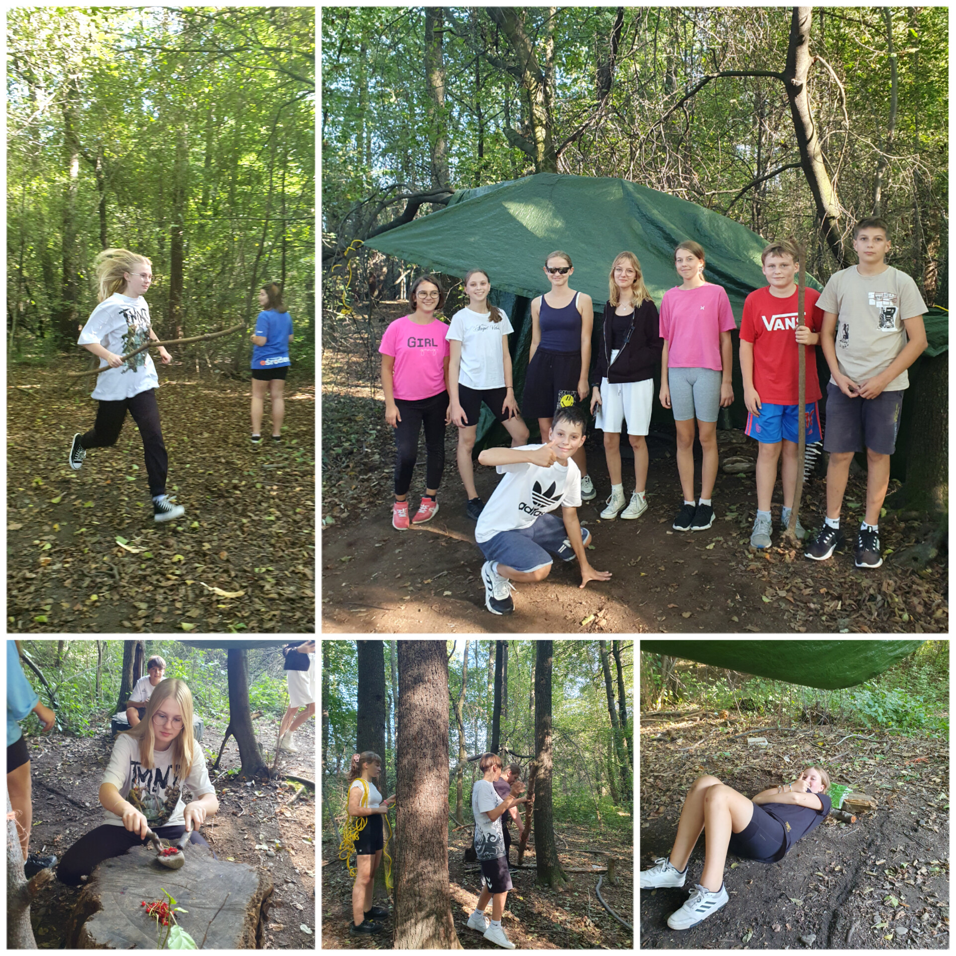 Uczniowie nabyli nowe umiejętności survivalowe (zaprojektowali schronienie, które później zbudowali w lesie, poznali różne rodzaje węzłów), zdobyli drzewo wspinaczkowe oraz uczestniczyli w wielu zabawach, które jeszcze bardziej zintegrowały grupę 😊