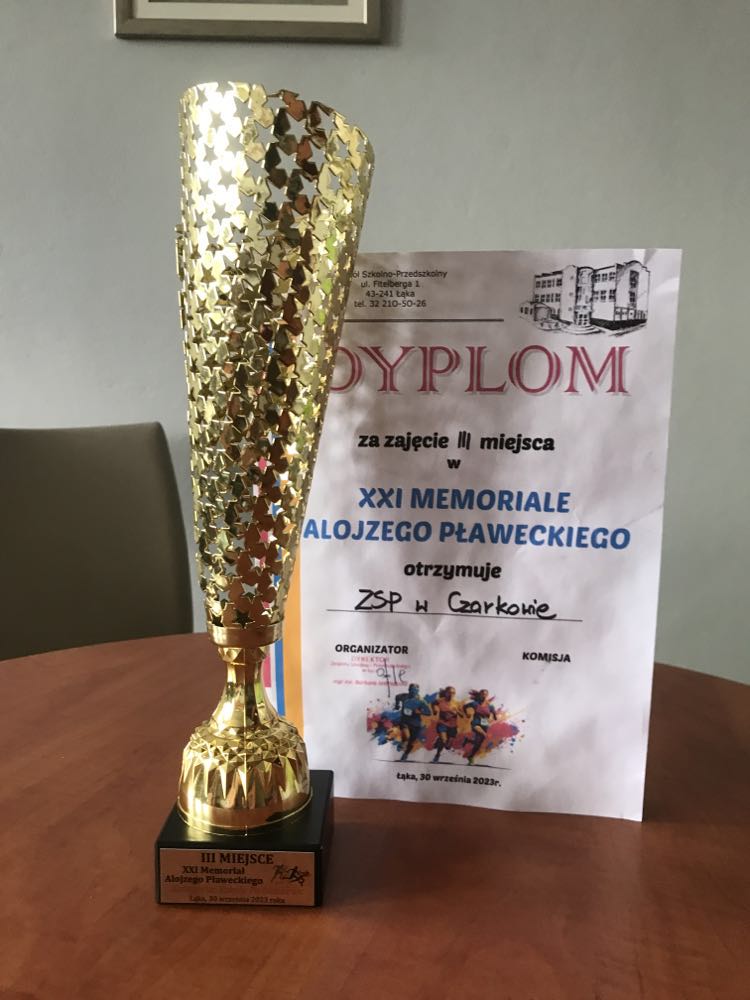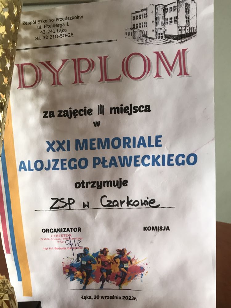W dniu 30.09.2023r. na stadionie LKS Łąka odbył się XXI Memoriał A. Pławeckiego w biegach przełajowych. Nasza szkoła zajęła III miejsce w klasyfikacji drużynowej, a Jan Stencel i Kamila Leśnikowska zajęli II miejsce indywidualnie w swoich kategoriach wiekowych. Skład reprezentacji z Czarkowa: Jan Stencel, Kacper Kolarczyk, Bartosz Szymura, Mieszko Jaworowski, Paulina Kania, Zofia Stencel, Konrad Szymura, Kamila Leśnikowska.