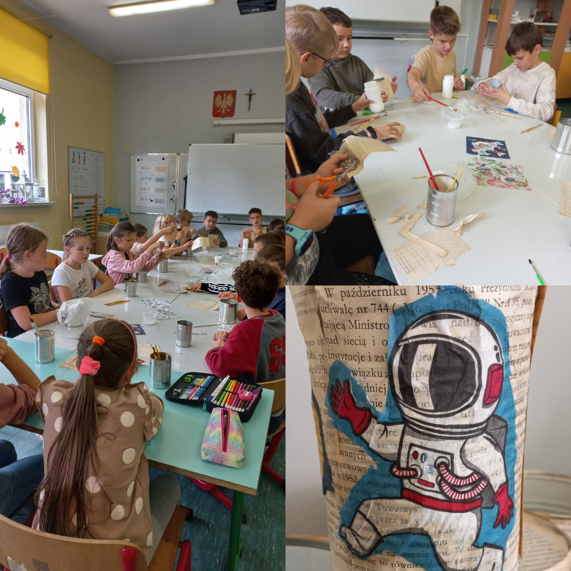 26 października uczniowie klas drugich wzięli udział w warsztatach zorganizowanych przez Bibliotekę Pedagogiczną w Pszczynie. Drugoklasiści z książek przeznaczonych na makulaturę i zużytych puszek, wykonali pojemniki na kredki i długopisy. Celem warsztatów było rozbudzenie wyobraźni artystycznej uczniów oraz pokazanie zalet recyklingu.
