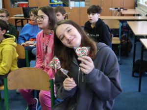 1 grudnia uczniowie klas 5-8 wzięli udział w warsztatach karmelarskich, które przeniosły ich w świat smakowitych słodkości 🍭 🍬W pierwszej części warsztatów Pani Karmelarz opowiedziała uczniom o tajnikach swojego zawodu. Dzieci dowiedziały się, że karmelarz to nie tylko osoba pracująca z cukrem, ale prawdziwy artysta, tworzący słodkie arcydzieła, które potrafią zachwycić każde podniebienie. Następnie uczniowie mieli okazję przyjrzeć się jak powstają cztery wzory lizaków. Dzieci z zapartym tchem śledziły każdy ruch i tajemnice tego słodkiego rzemiosła. Następnie każdy uczestnik wykonał wybrany przez siebie wzór lizaka. Był również czas na zdjęcia i autografy. Słodki świat karmelarza otworzył przed uczniami nowe perspektywy, zachęcając jednocześnie do odkrywania kulinarnych pasji ❤️ 😋#panikarmelarz #candyworld #warsztatykarmelarskie