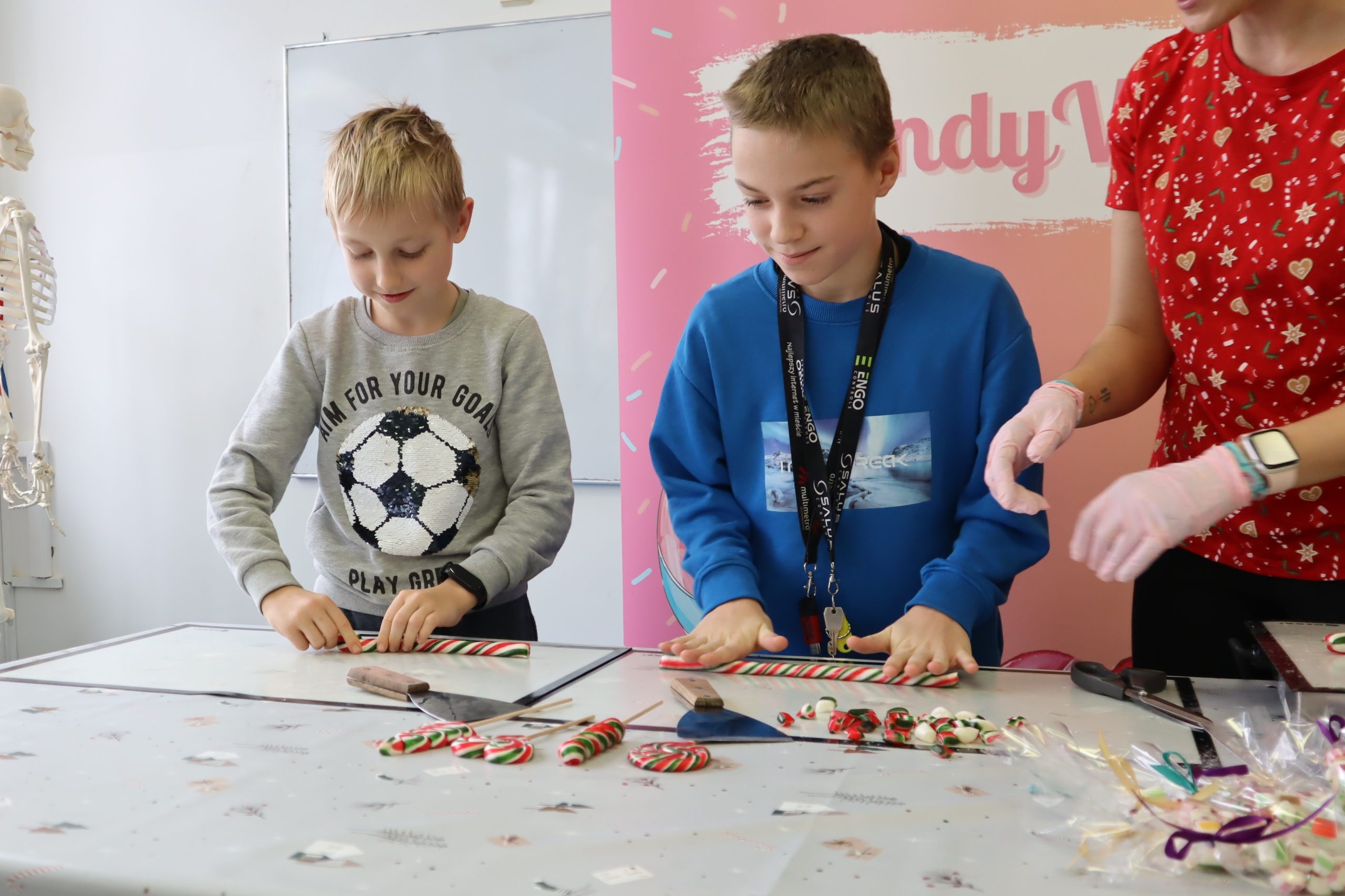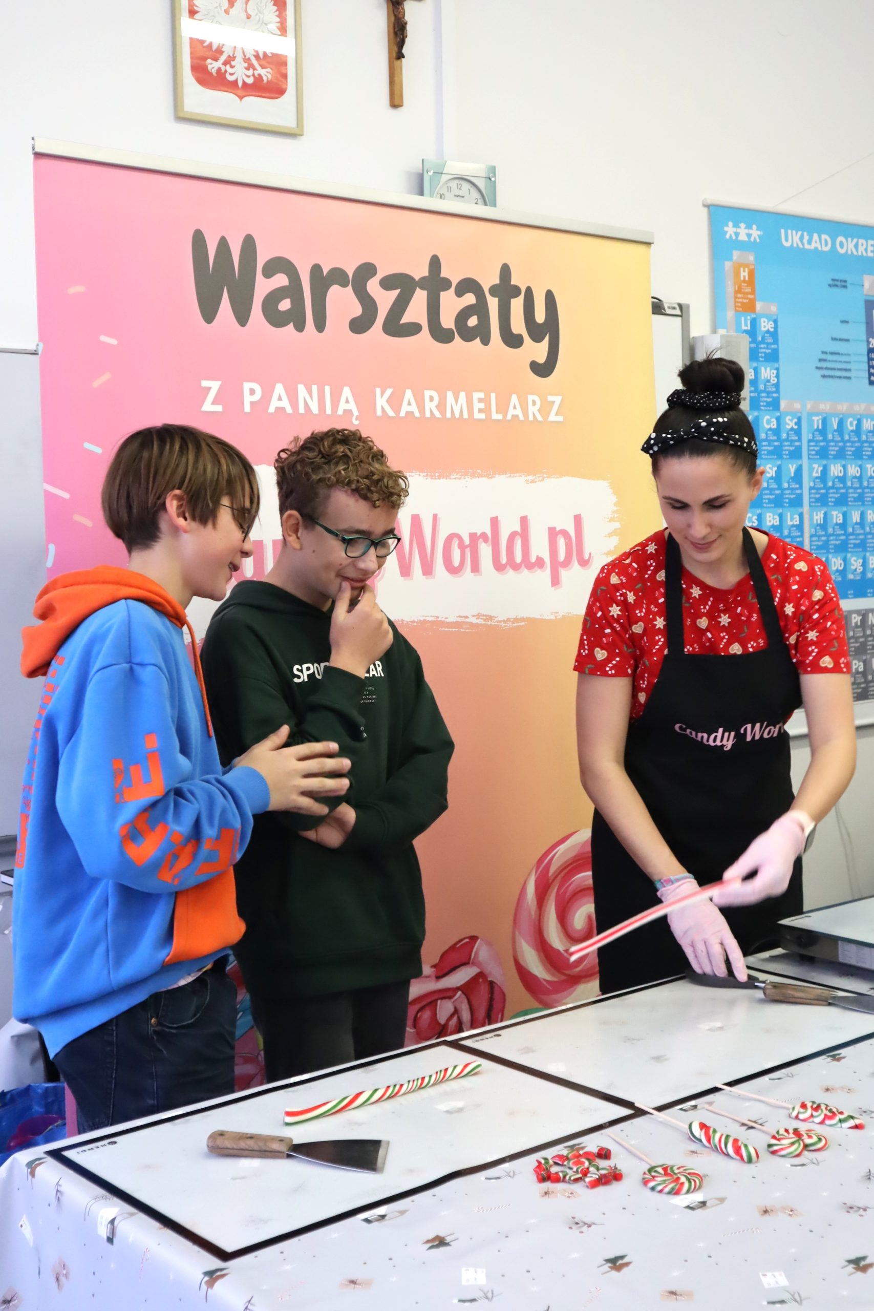 1 grudnia uczniowie klas 5-8 wzięli udział w warsztatach karmelarskich, które przeniosły ich w świat smakowitych słodkości 🍭 🍬W pierwszej części warsztatów Pani Karmelarz opowiedziała uczniom o tajnikach swojego zawodu. Dzieci dowiedziały się, że karmelarz to nie tylko osoba pracująca z cukrem, ale prawdziwy artysta, tworzący słodkie arcydzieła, które potrafią zachwycić każde podniebienie. Następnie uczniowie mieli okazję przyjrzeć się jak powstają cztery wzory lizaków. Dzieci z zapartym tchem śledziły każdy ruch i tajemnice tego słodkiego rzemiosła. Następnie każdy uczestnik wykonał wybrany przez siebie wzór lizaka. Był również czas na zdjęcia i autografy. Słodki świat karmelarza otworzył przed uczniami nowe perspektywy, zachęcając jednocześnie do odkrywania kulinarnych pasji ❤️ 😋#panikarmelarz #candyworld #warsztatykarmelarskie
