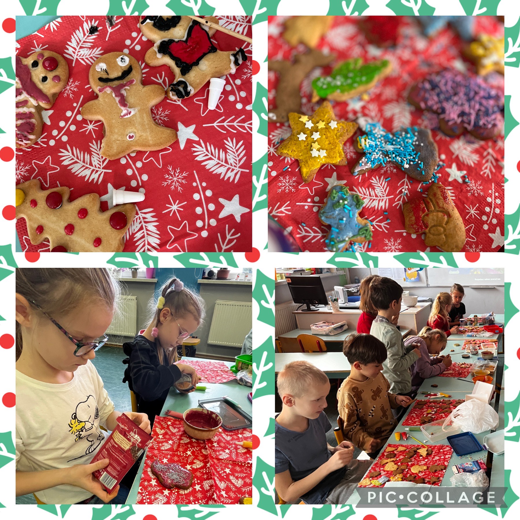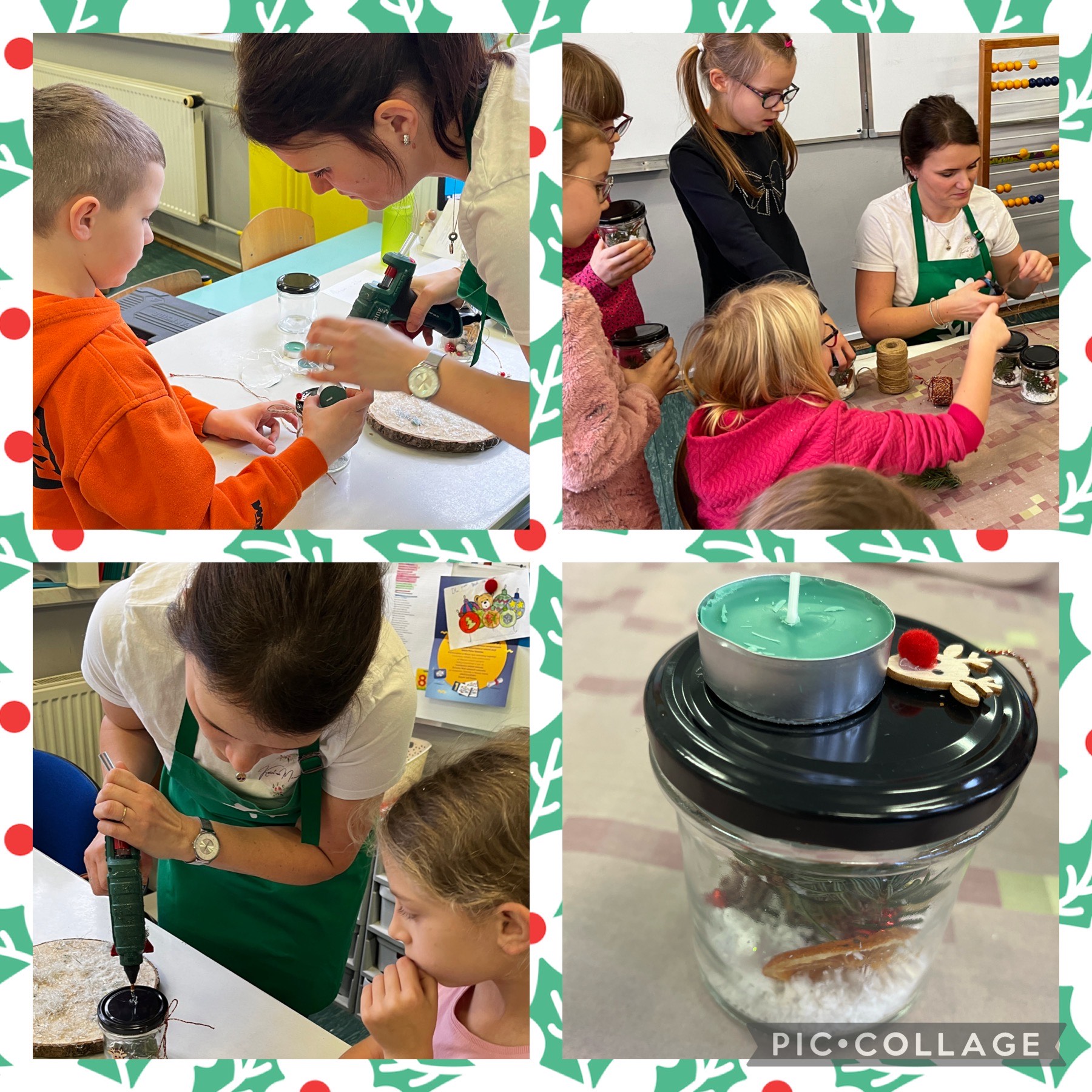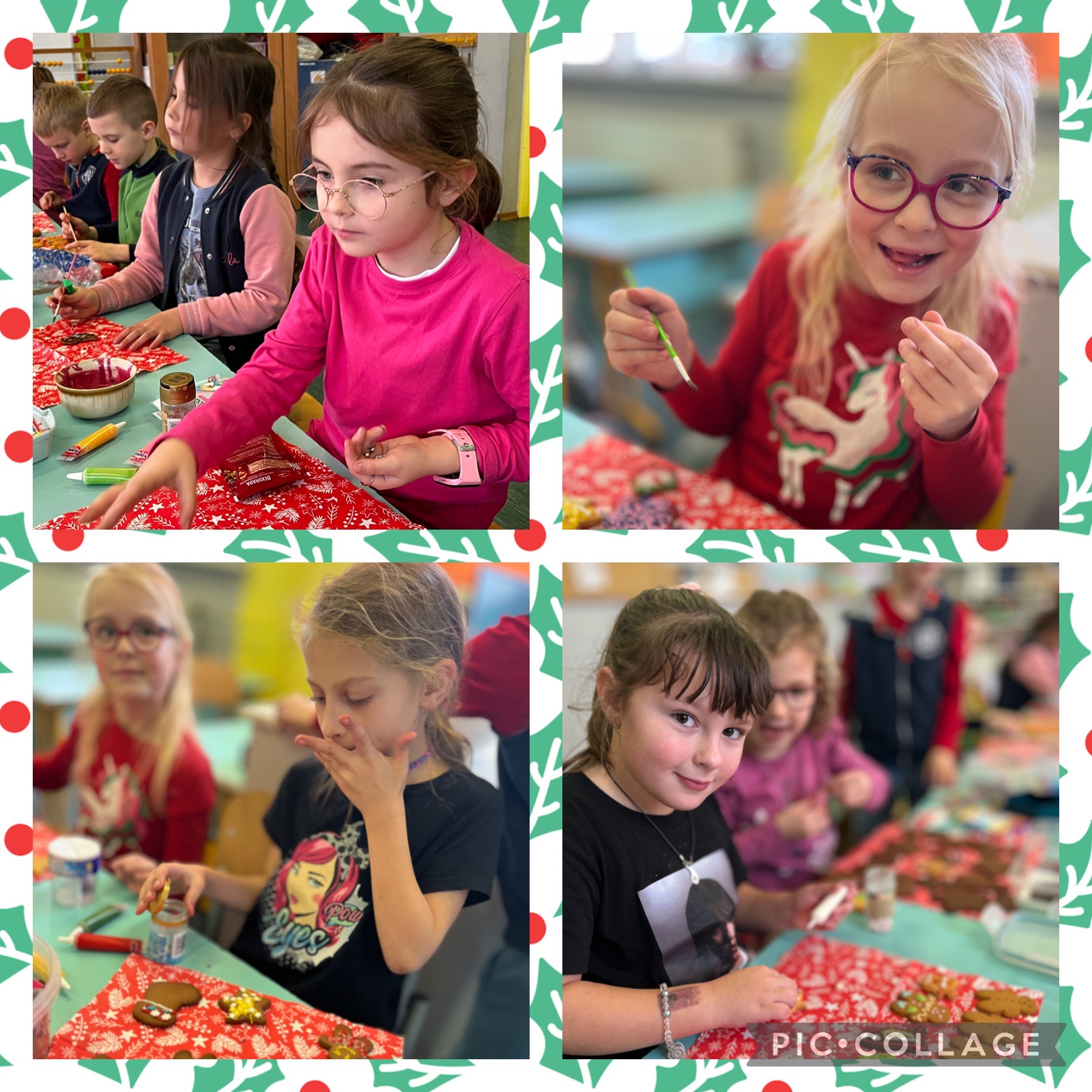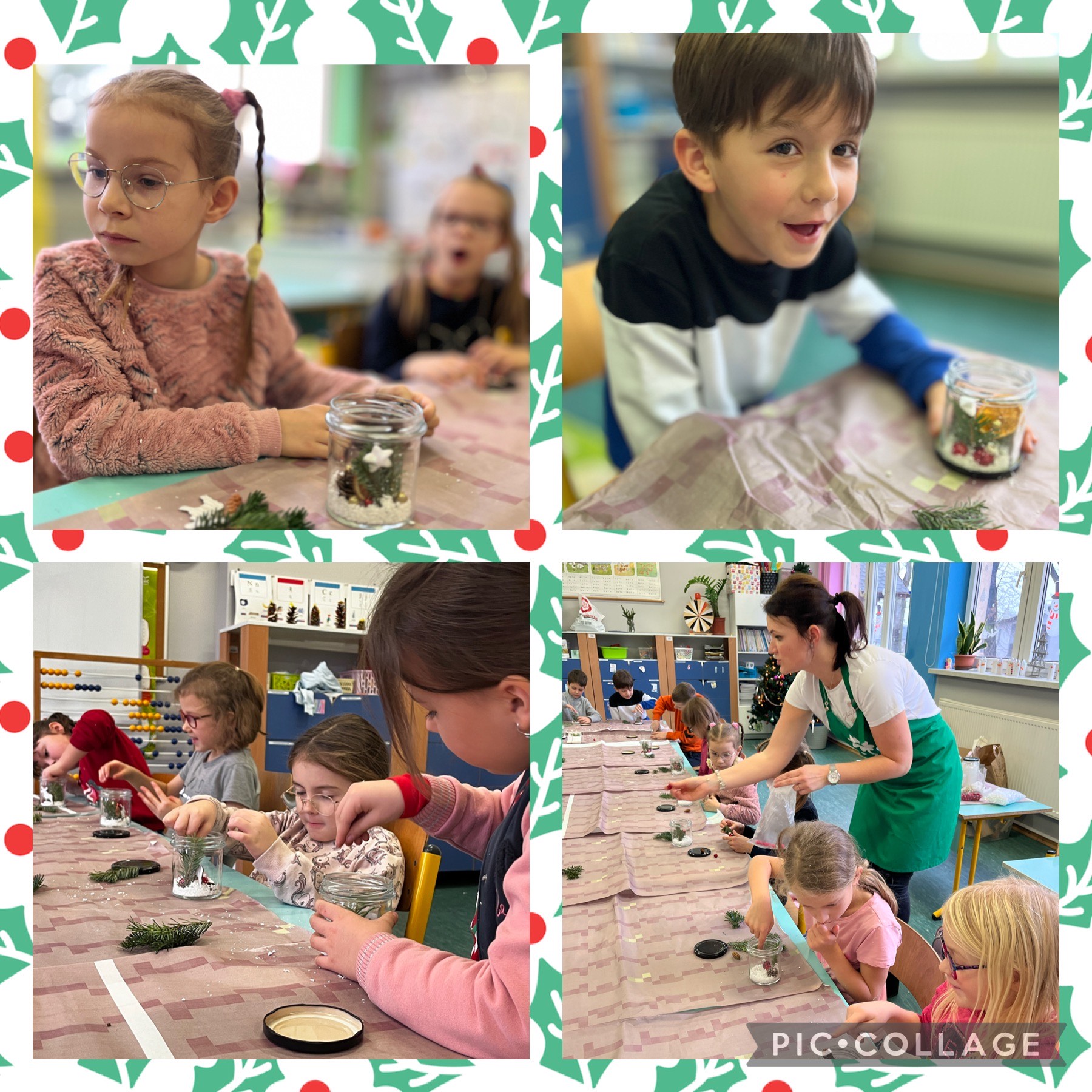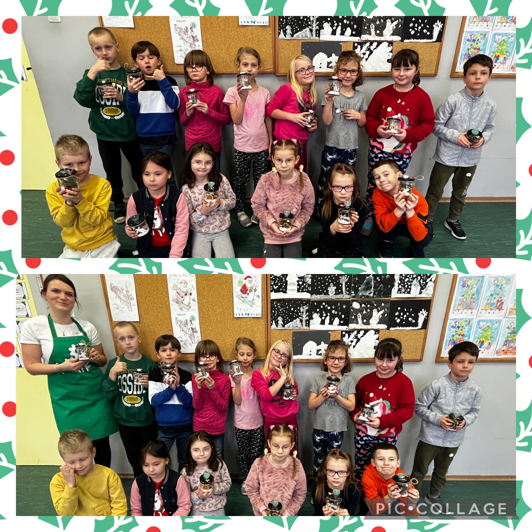Przygotowania do świąt w klasie 1b trwały już od połowy grudnia. Wspólnie ubieraliśmy choinkę, potem było malowanie pierniczków przyniesionych z domu. Dla rodziców przygotowaliśmy świąteczny upominek – stroik zamknięty w słoiczku, warsztaty przeprowadziła Kwiatowa Mania. Ostatnim świątecznym akcentem była pierwsza wspólna wigilijka klasowa, mogliśmy wspólnie zaśpiewać kolędy, podzielić się opłatkiem i wręczyć sobie prezenty🎄🎁😇