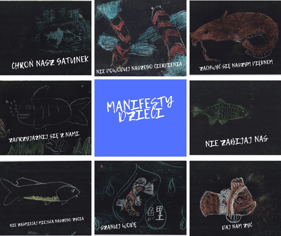 „Dzieci i ryby mają głos” – podczas warsztatów, które odbyły się w styczniu odwróciliśmy powiedzenie i oddaliśmy głos dzieciom. Uczniowie wyobrazili sobie co mogą powiedzieć ryby w swojej obronie i tak powstały manifesty przetłumaczone na język angielski.