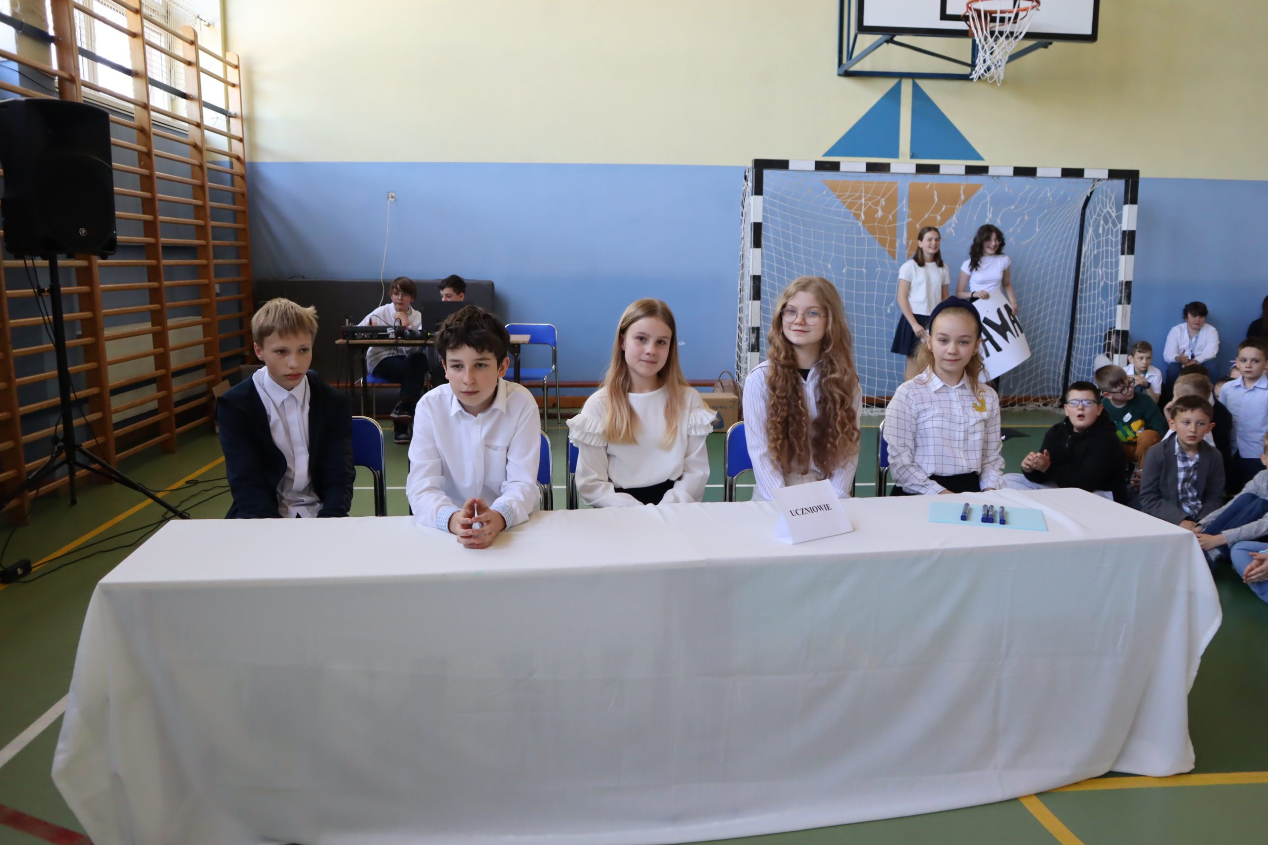 Emocje były tym większe,że do konkurencji stanęły dwie drużyny: uczniów i nauczycieli ☺️ Rywalizacja była bardzo zacięta, uczennice Kamila i Karolina świetnie prowadziły rozgrywki, a jury w składzie: Pani Dyrektor, pani Maroszek i pani Kantorowska uważnie przyglądały się każdej konkurencji.
