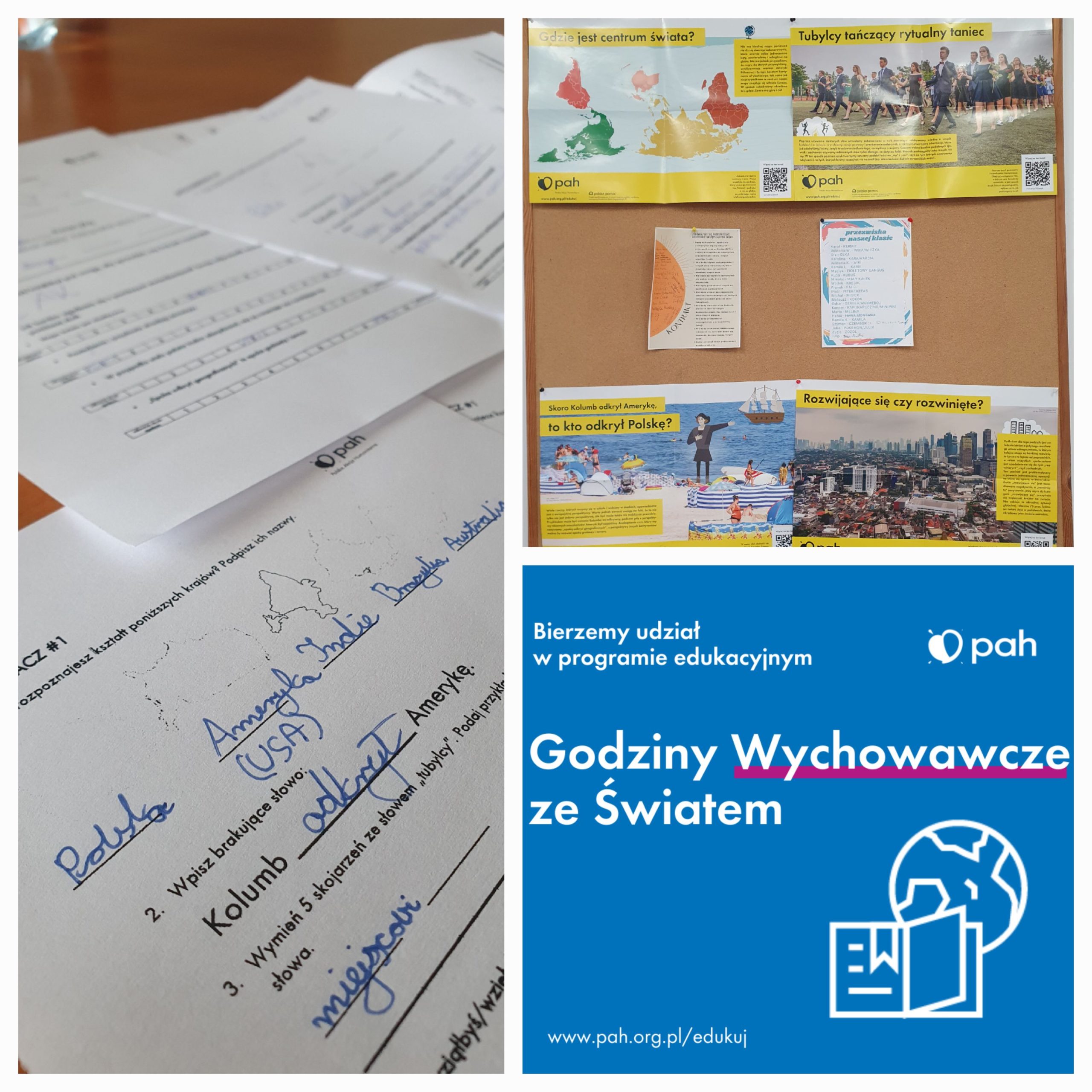 W roku szkolnym 2023/2024 uczniowie z klas 7b i 8 uczestniczyli w programie „Godziny Wychowawcze ze Światem”, organizowanym przez Polską Akcję Humanitarną.