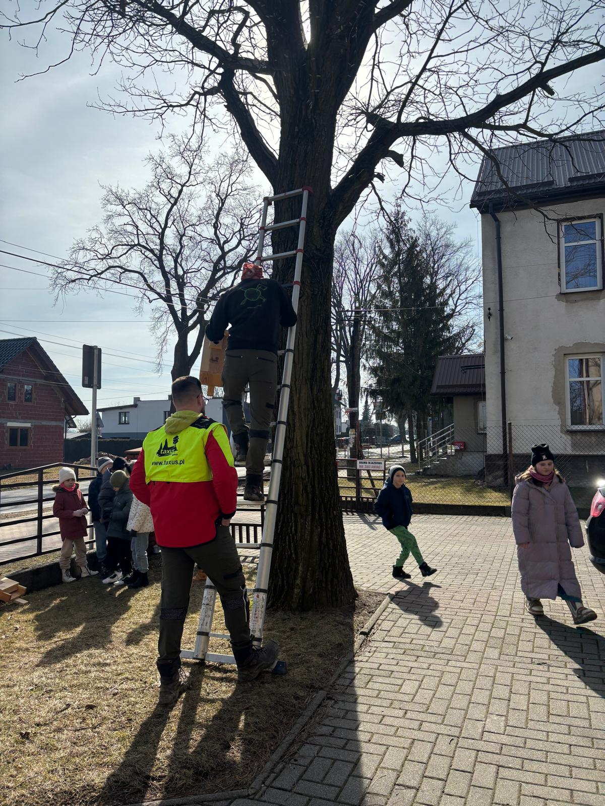 Podczas spotkania na terenie naszej szkoły zostały zamontowane dwie budki lęgowe: