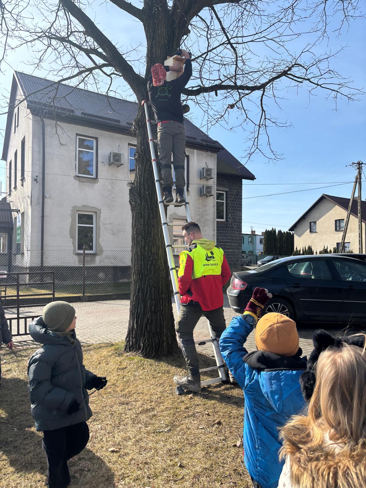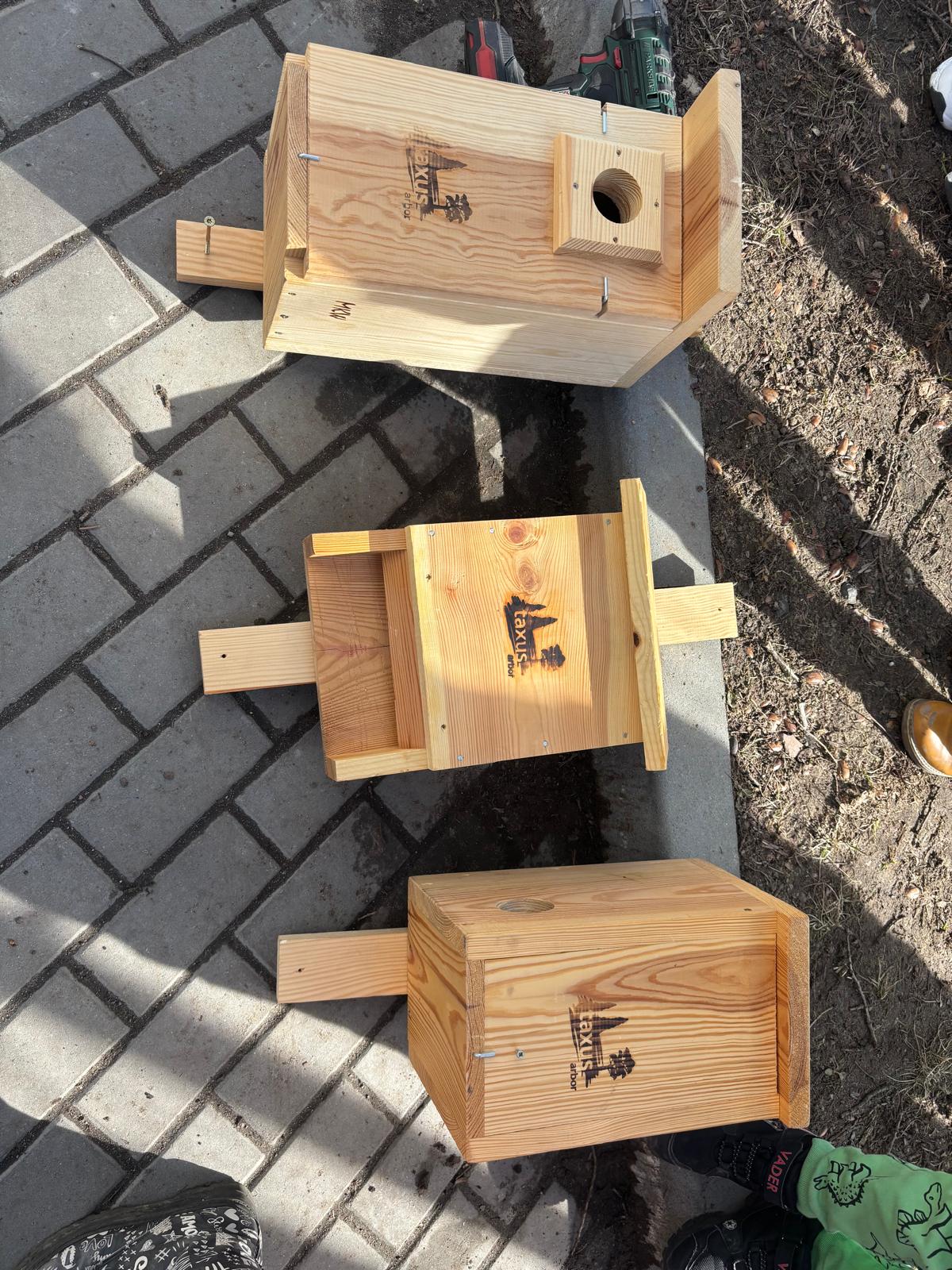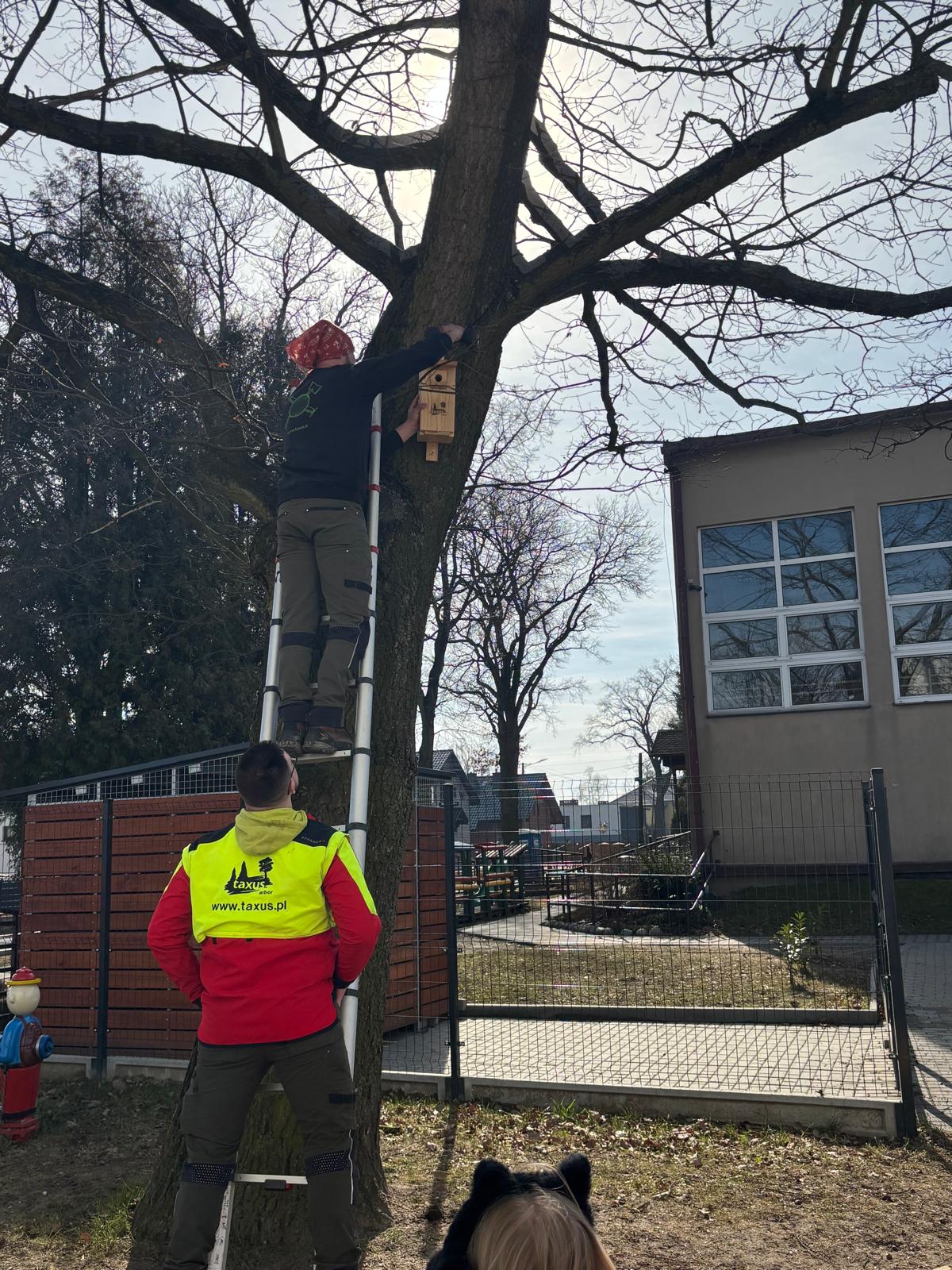 Podczas spotkania na terenie naszej szkoły zostały zamontowane dwie budki lęgowe: