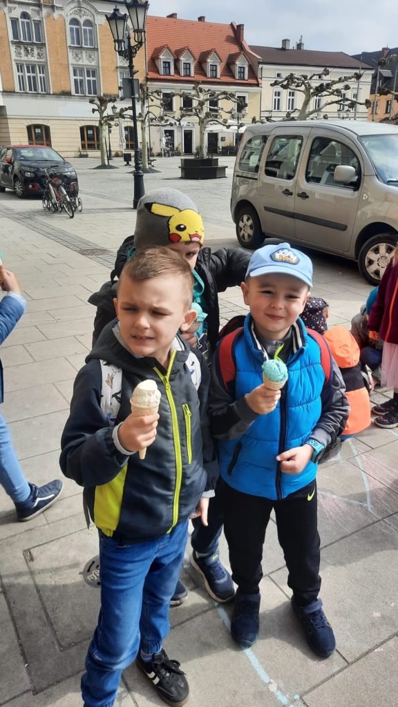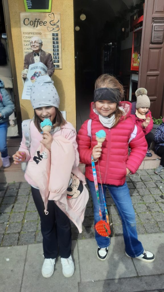 Kolejnym punktem wycieczki była wizyta w Młynie. Pan przewodnik podczas oprowadzania uczniów po wnętrzach budynku, opowiadał o historii młynarstwa oraz pokazywał, w jaki sposób maszyny produkują mąkę. Ostatnim a zarazem najsmaczniejszym punktem wycieczki była wizyta w lodziarni.
