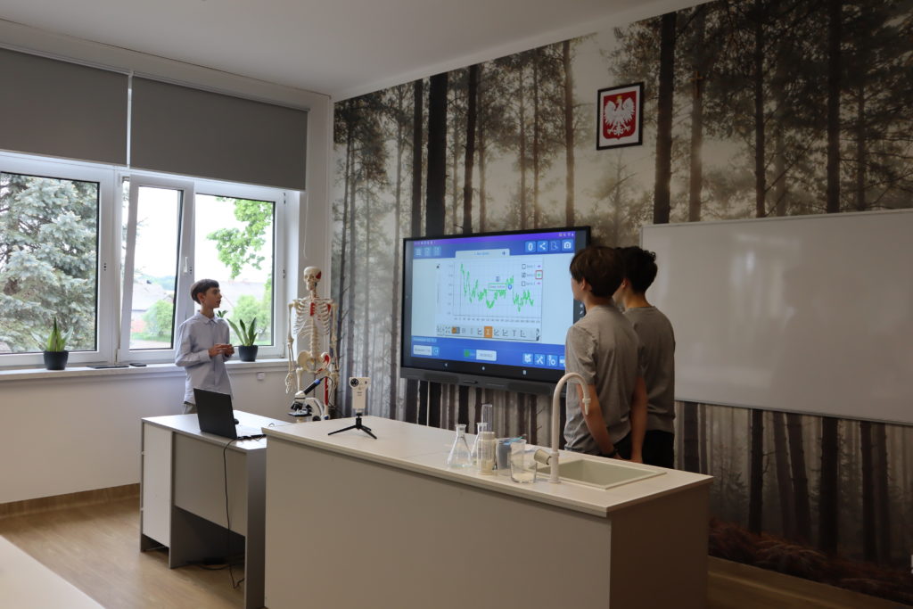 Nowa pracownia została zaprojektowana z myślą o aktywnej, zespołowej i doświadczalnej nauce. Uczniowie mogą pracować przy ergonomicznych „wyspach”, korzystać z nowoczesnych mikroskopów, kompasów, a także bezprzewodowych czujników do pomiaru temperatury, pH, poziomu CO₂ i innych parametrów środowiska. Dzięki aplikacjom mobilnym dane z doświadczeń będą analizowane na bieżąco – to prawdziwe laboratorium XXI wieku!