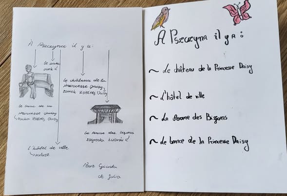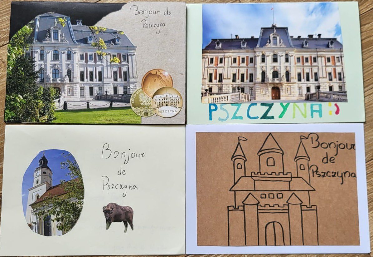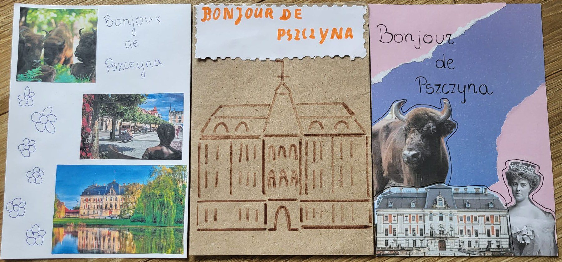 Przez cały ten rok szkolny uczniowie siódmych klas naszej szkoły korespondowali w języku francuskim z uczniami włoskiej szkoły Instituto Comprensivo Carmagnola I w Carmagnola. Napisaliśmy wiele listów, przygotowaliśmy i wysłaliśmy kartki z okazji Świąt Bożego Narodzenia i Wielkanocy. Teraz nadszedł czas, aby podsumować nasz projekt i z tej okazji napisaliśmy ostatni list, w którym opisywaliśmy nasze miasto i przygotowaliśmy piękne kartki „Bonjour de Pszczyna”, czyli pozdrowienia z Pszczyny.