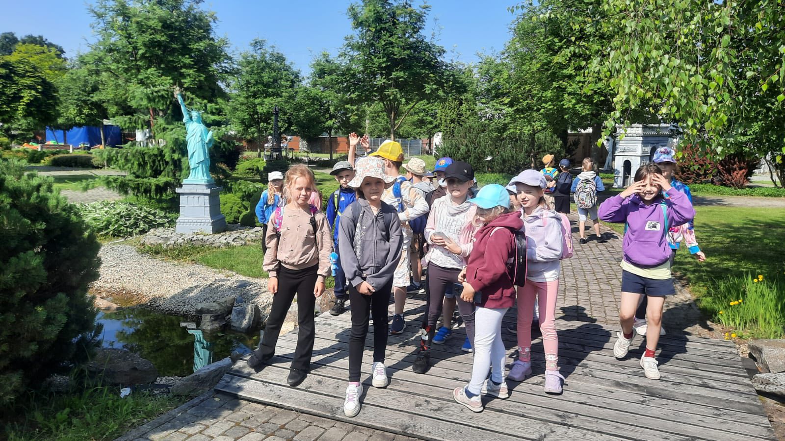 Już po przekroczeniu bramy parku poczuliśmy się jak prawdziwi podróżnicy. Mieliśmy okazję podziwiać doskonale odwzorowane budowle z różnych zakątków globu. Każda miniatura to prawdziwe dzieło sztuki. Uczniowie z zafascynowaniem wskazywali na znane im obiekty, a także dowiadywali się o nowych.