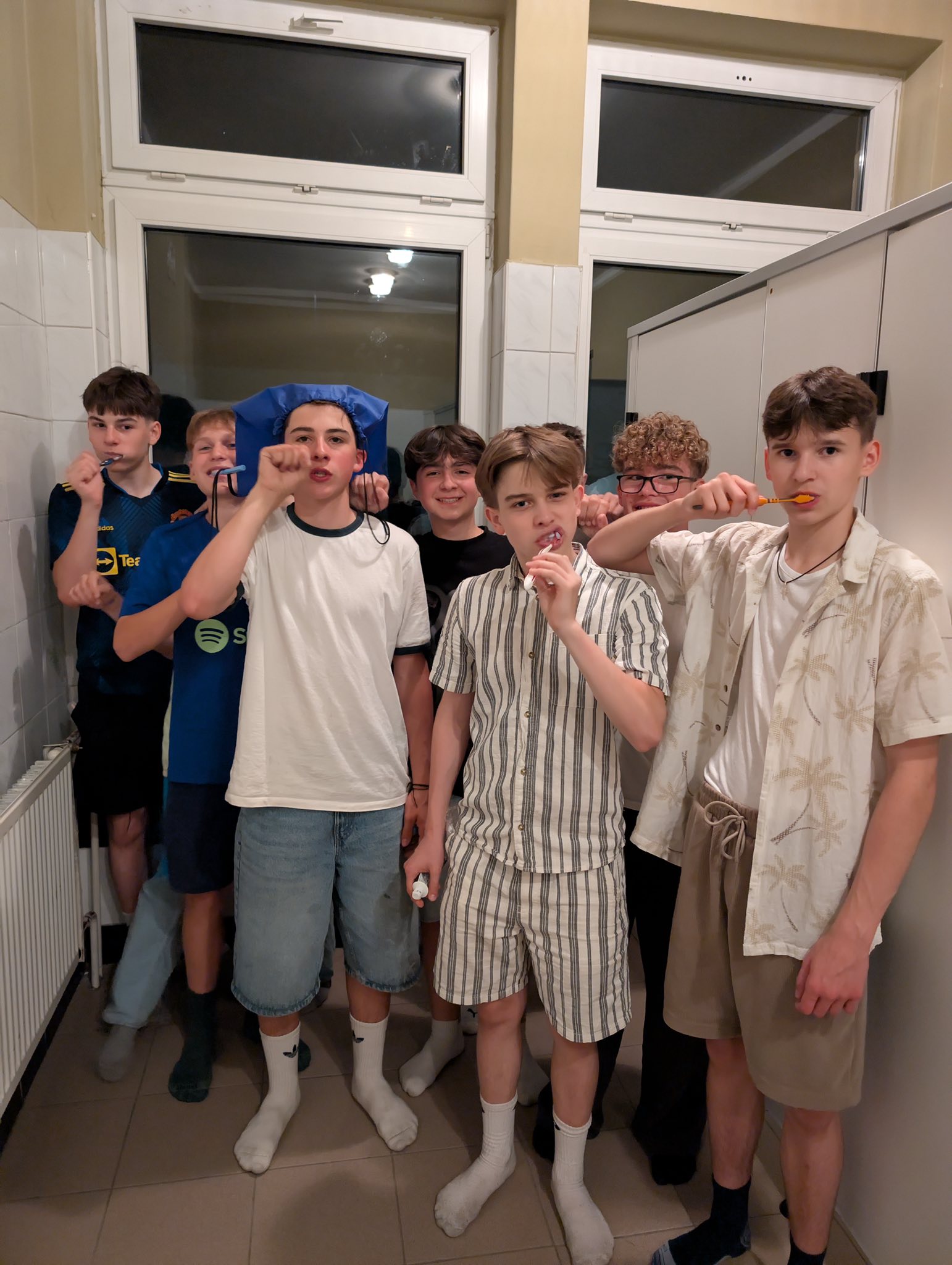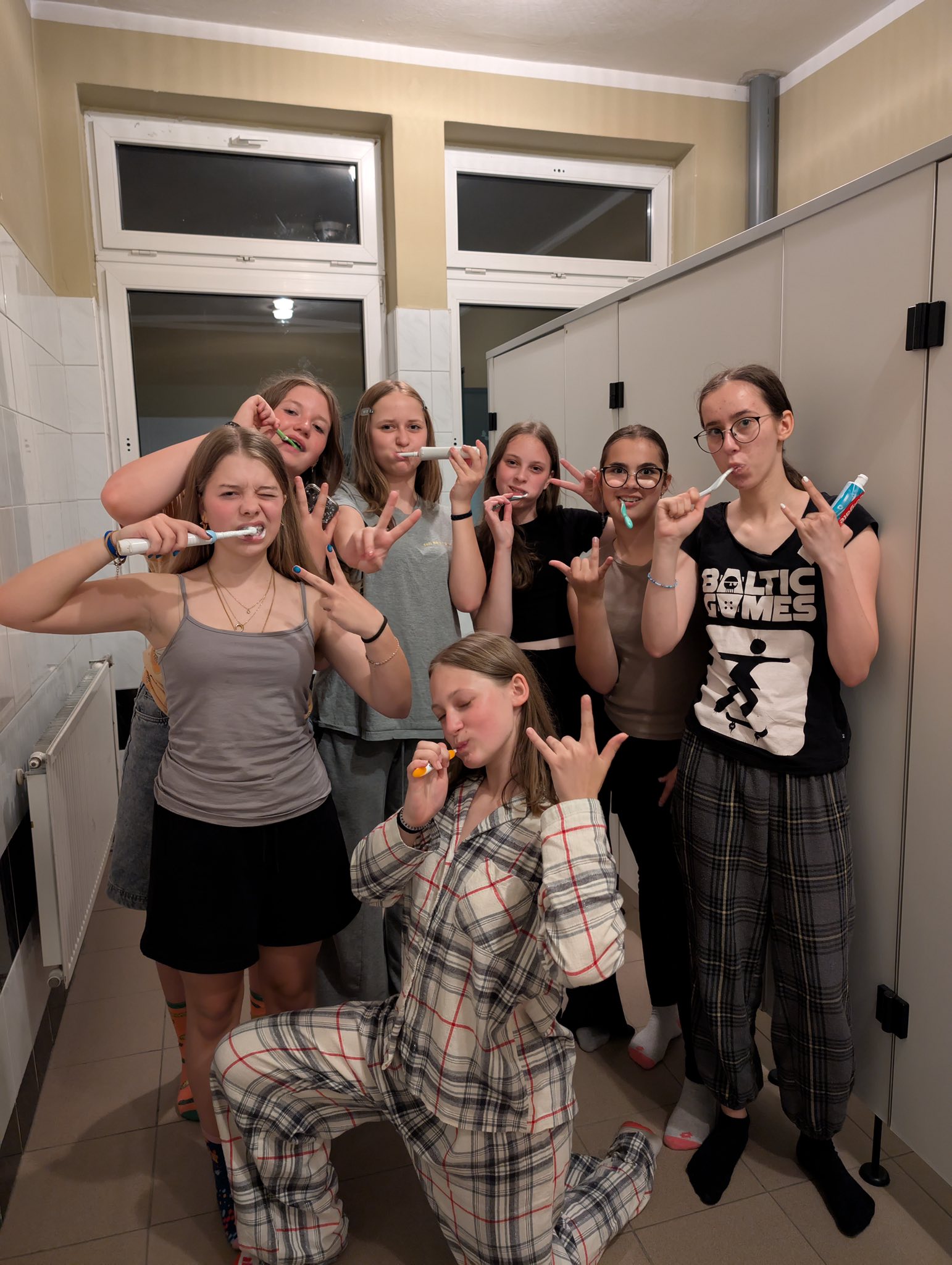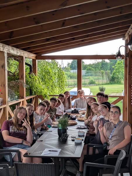 Wieczór rozpoczął się od wspólnej kolacji 🍕 Następnie uczniowie wzięli udział w klasowym meczu koszykówki, który dostarczył wielu sportowych emocji i pozytywnej rywalizacji. Po aktywnej części wieczoru przyszedł czas na rozrywkę w mniej sportowym stylu – wspólne tańce, karaoke oraz seans filmowy, które pozwoliły każdemu znaleźć coś dla siebie. Na zakończenie – totalny powrót do dzieciństwa: zabawa w chowanego po całej szkole! ❤️