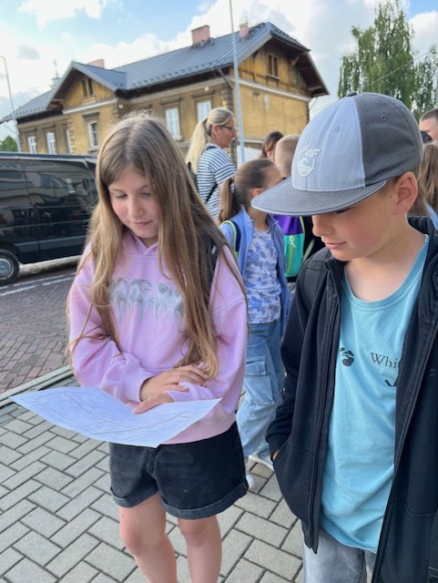 Środkiem lokomocji był pociąg. Po dotarciu do stacji Żywiec uczniowie otrzymali pierwsze zadanie. Należało zorientować mapę za pomocą obiektów terenowych, a następnie dojść na miejsce zbiórki pod amfiteatr. Tu na wszystkich czekał pracownik Zespołu Parków Krajobrazowych Województwa Śląskiego p. Piotr Dziki, który dalej poprowadził warsztaty. Uczniowie pod czujnym okiem specjalisty próbowała swoich sił w poszukiwaniu różnych roślin, których fragmenty widniały na zdjęciach losowo otrzymanych od p. Piotra. Była to doskonała zabawa edukacyjna. Czwartoklasiści nie tylko ćwiczyli spostrzegawczość, ale przyswajali wiedzę na temat wybranych okazów. Bardzo kształcące było również rozpoznawaniem roślin za pomocą kluczy brzeżnie perforowanych. Obiektem rozpoznanym w ten sposób był jaskier kosmaty. Modrzew europejski był kolejnym badanym okazem. Dokonując pomiaru obwodu pnia, uczniowie obliczali wiek drzewa. Dzieci miały również okazję przekonać się, że aplikacje służące do rozpoznawania roślin nie są w 100% wiarygodne. Po wyjściu na szczyt Grojca Średniego uczniowie orientowali mapy turystyczne za pomocą kompasów, a następnie podziwiali panoramę okolicy i rozpoznawali charakterystyczne szczyty należące do trzech parków krajobrazowych: Beskidu Śląskiego, Małego i Żywieckiego.