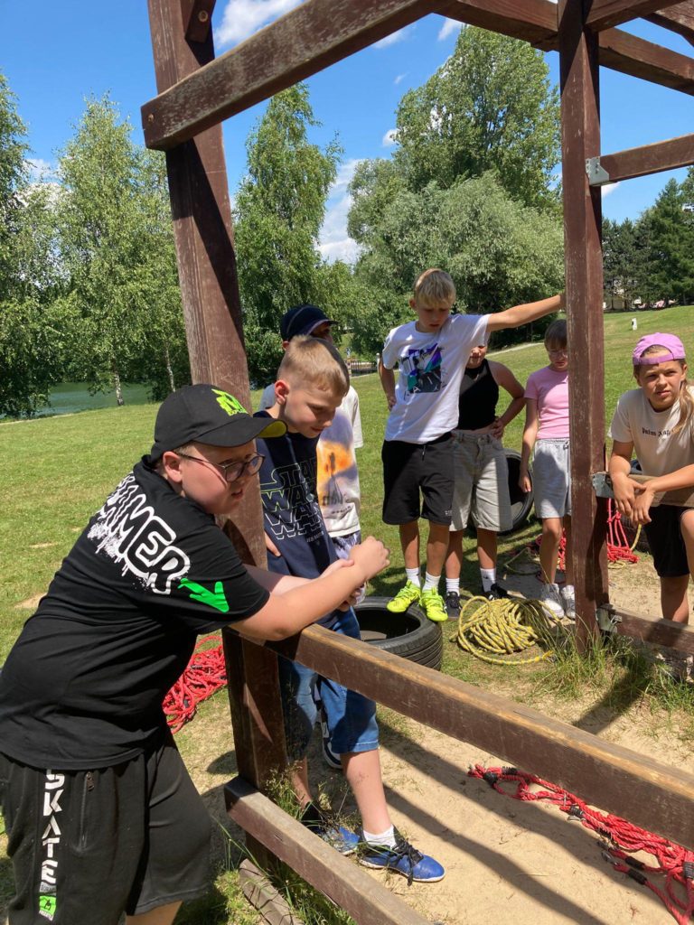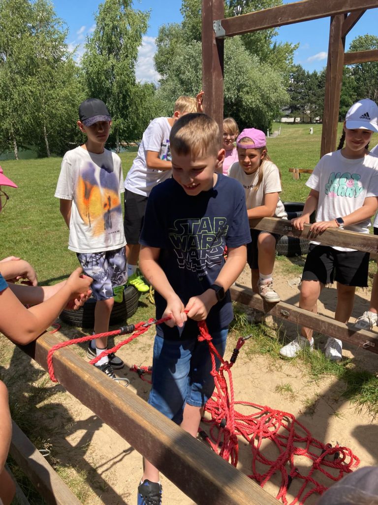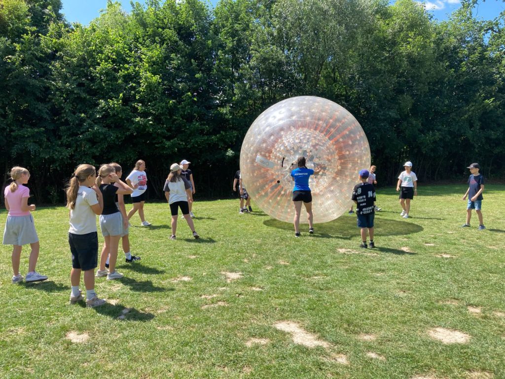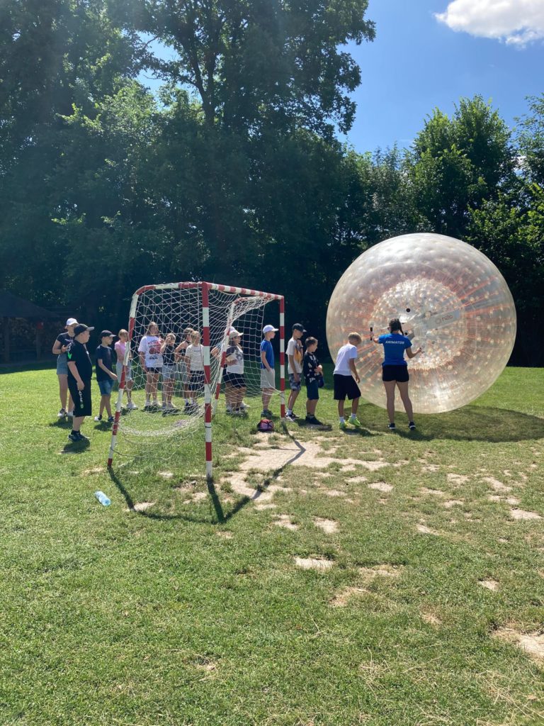W ostatnią środę roku szkolnego klasy 5a i 5b wzięły udział w wycieczce- naszym celem był ośrodek H20 w Kiczycach obok Ochab. Uczniowie wzięli udział w warsztatach „Indiana Jones”. Były ogromne kule do zorbingu, przeciąganie liny, wspólne budowanie toru przeszkód. Wyjazd był fantastyczną integracją oddziałów klasowych, uczniowie bawili się wspaniale i na pewno zapamiętają długo ten piękny dzień 🫶🌞