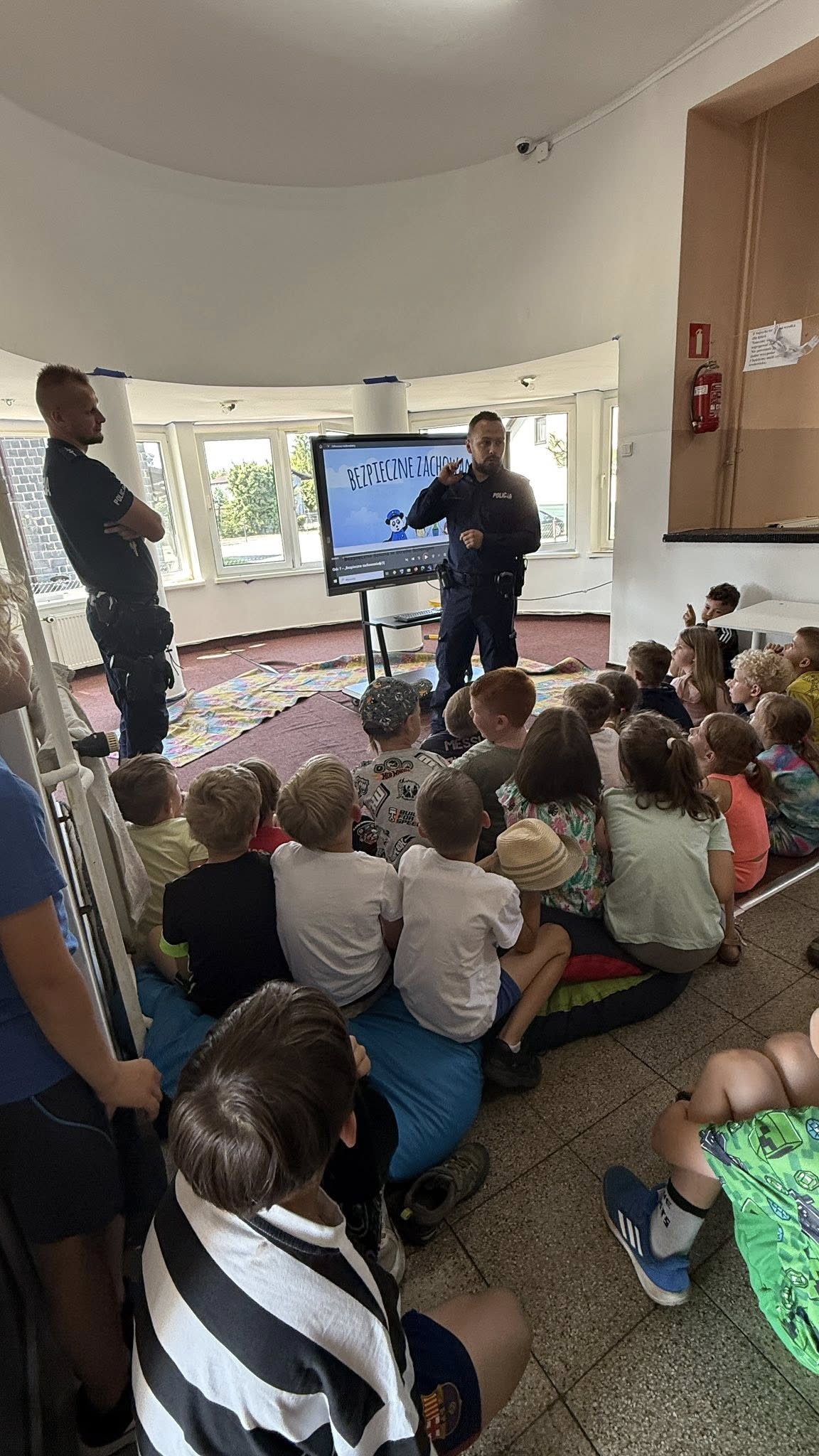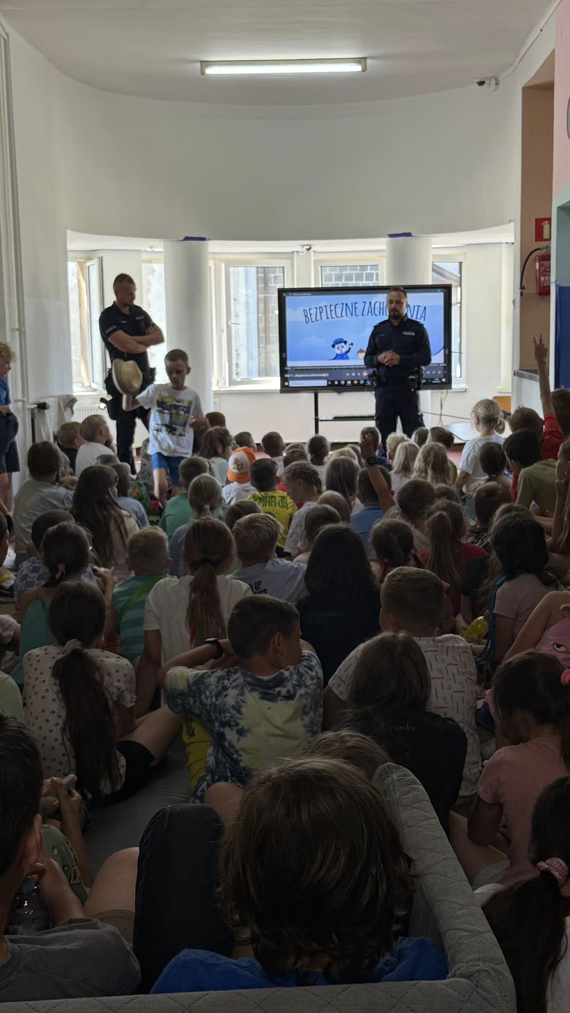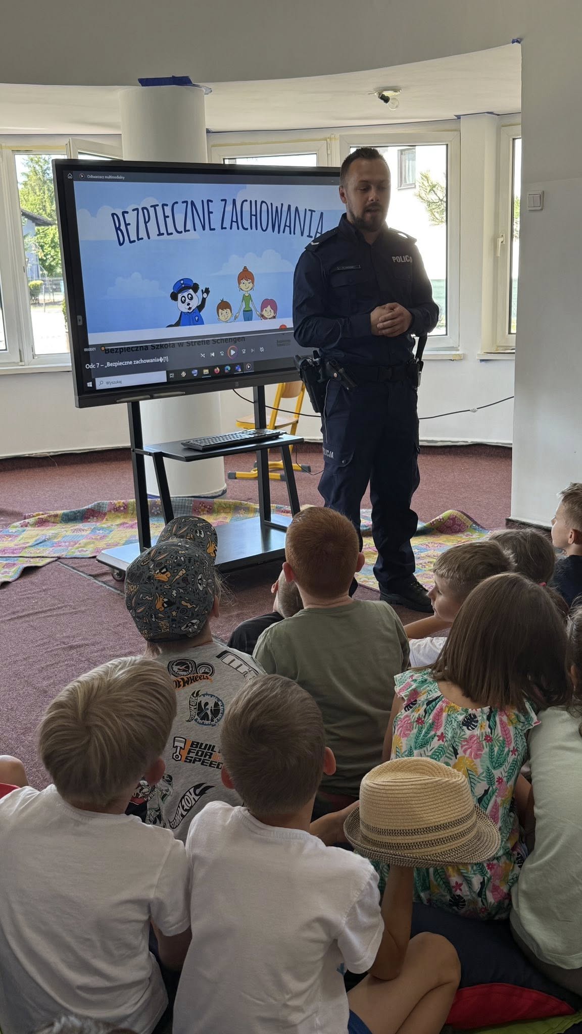 W czwartek odbyło się spotkanie uczniów klas 1–3 z dzielnicowym, którego tematem były zasady bezpiecznego spędzania wakacji. Podczas spotkania funkcjonariusz przypomniał dzieciom, jak ważne jest przestrzeganie zasad bezpieczeństwa nad wodą, w górach oraz podczas zabaw na świeżym powietrzu.